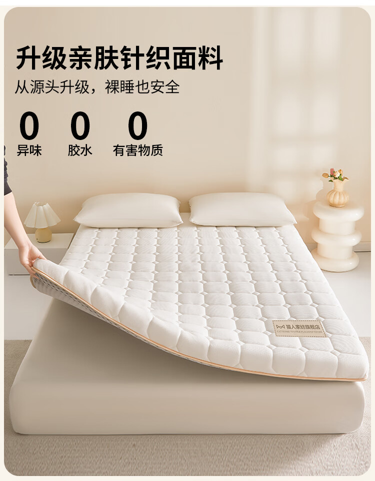 猫人(MiiOW)乳胶床垫遮盖物1.8x2米床褥子榻榻米加厚记忆棉垫子宿舍单人垫被 华夫格-白黄色【厚度约6cm】 80x190cm-宿舍床【乳胶记忆棉填充】