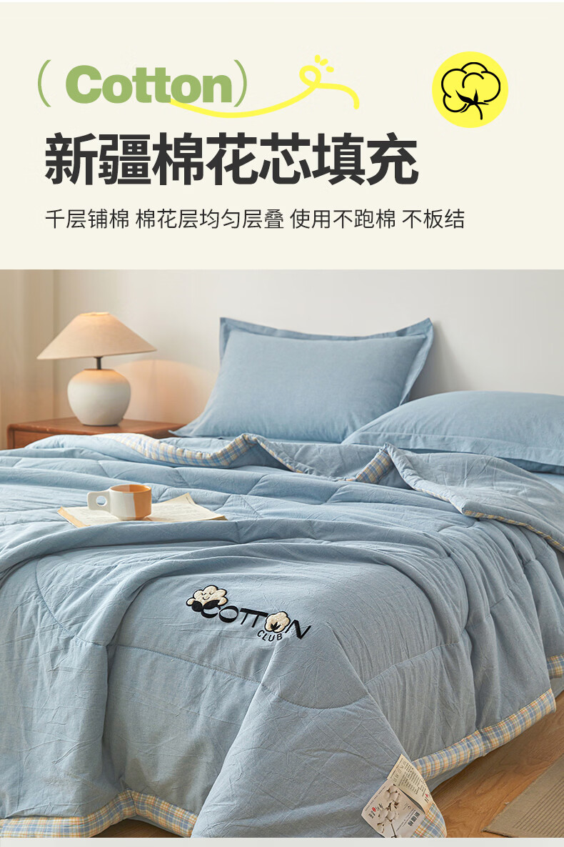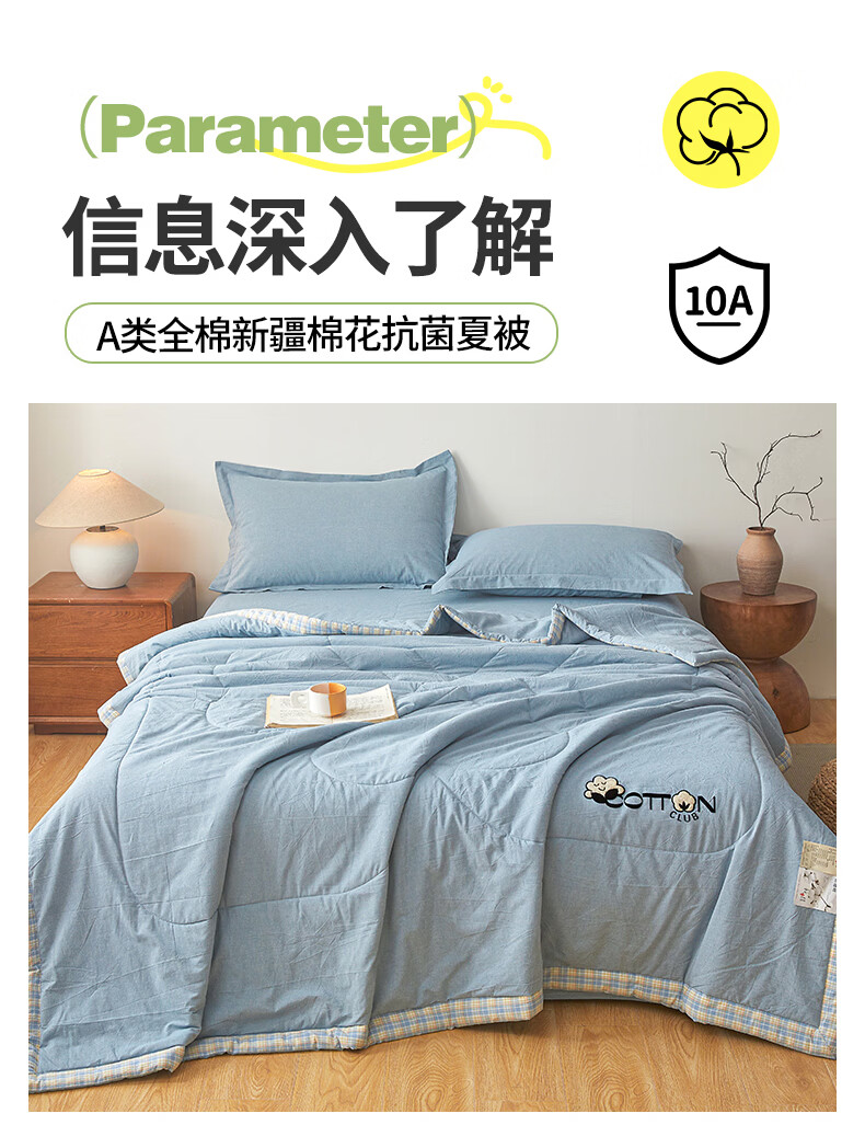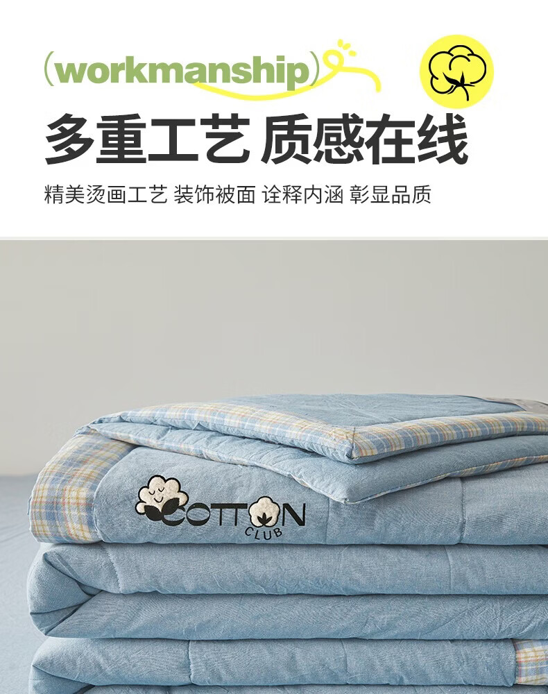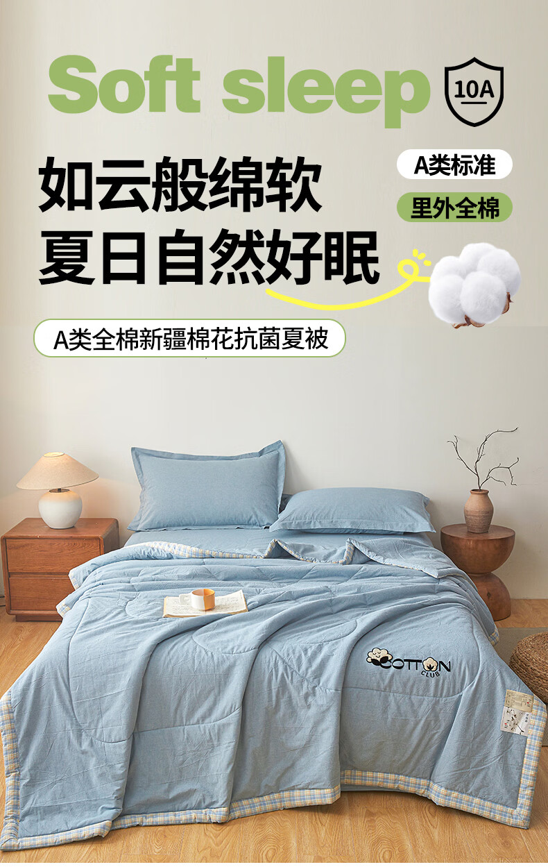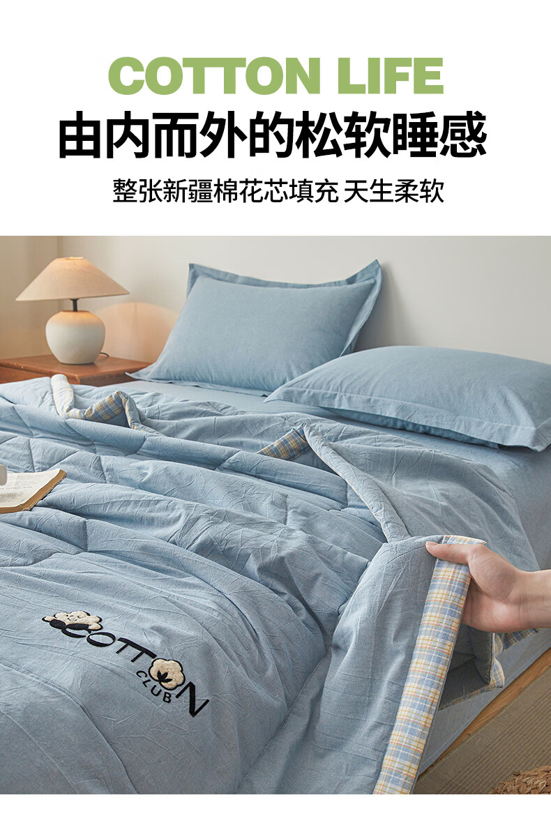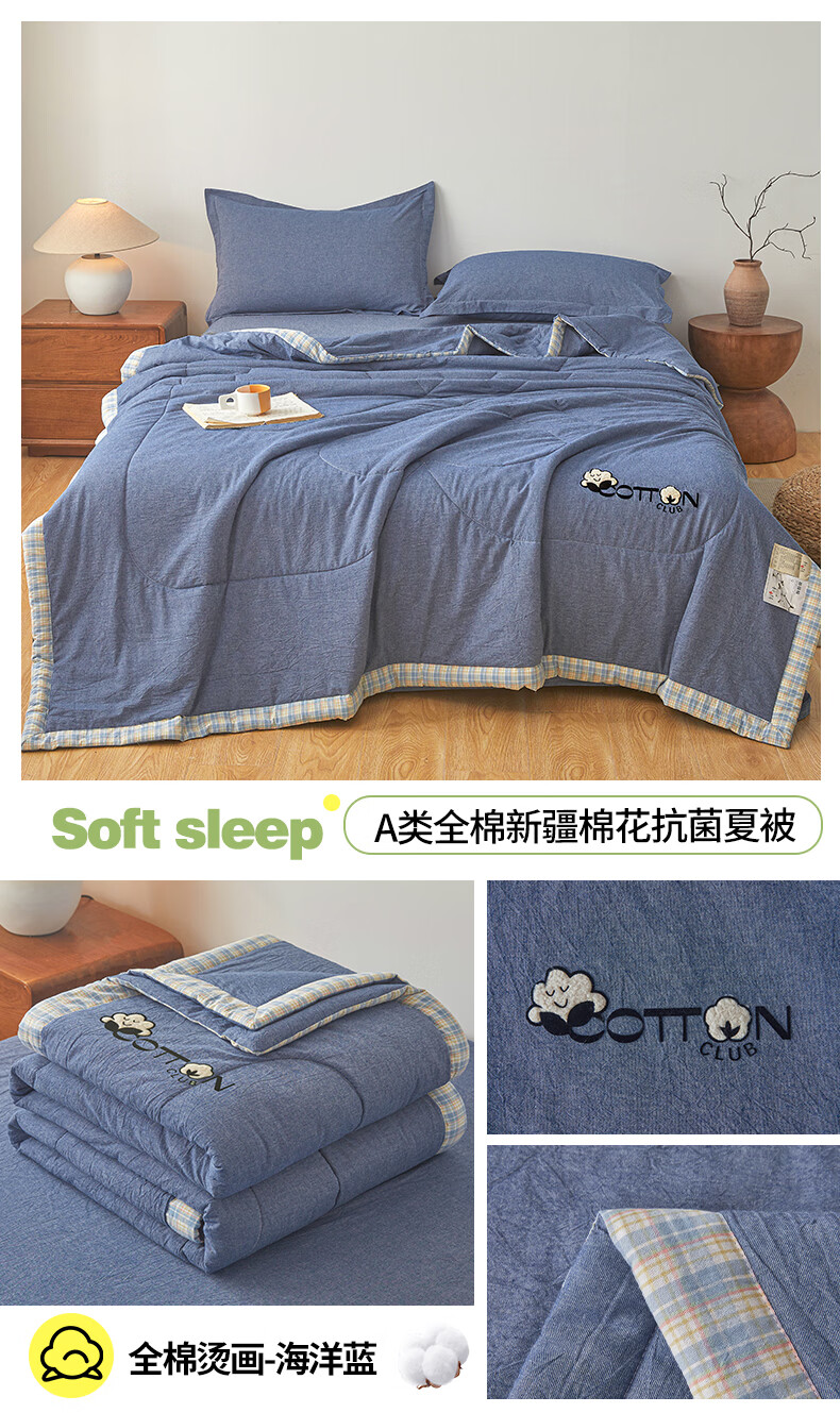 一默棉花被纯棉新疆棉花抗菌夏被2026春夏薄被子A类全棉空调被夏凉被 全棉烫画-海洋蓝 150cm*200cm