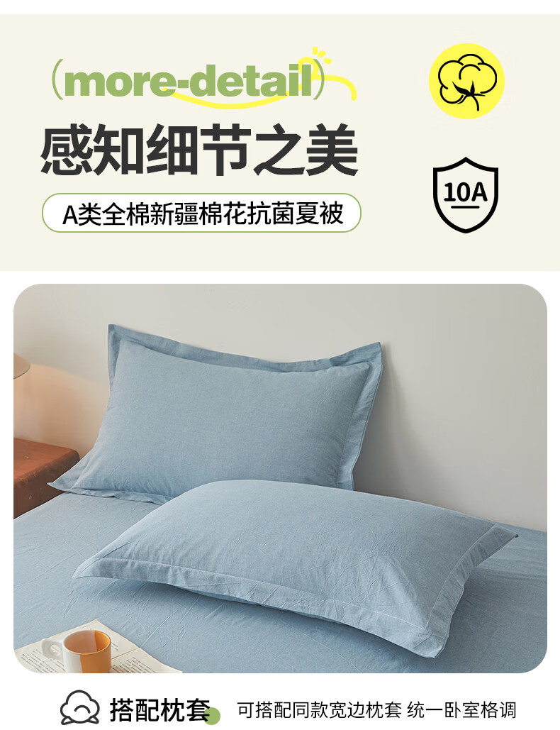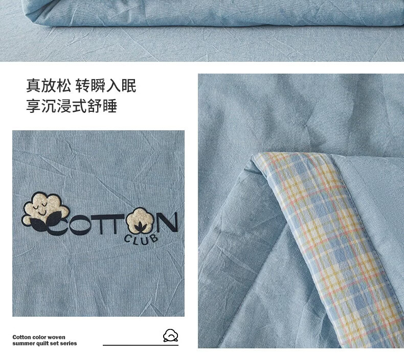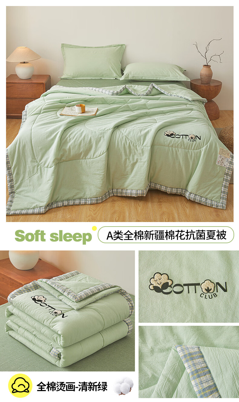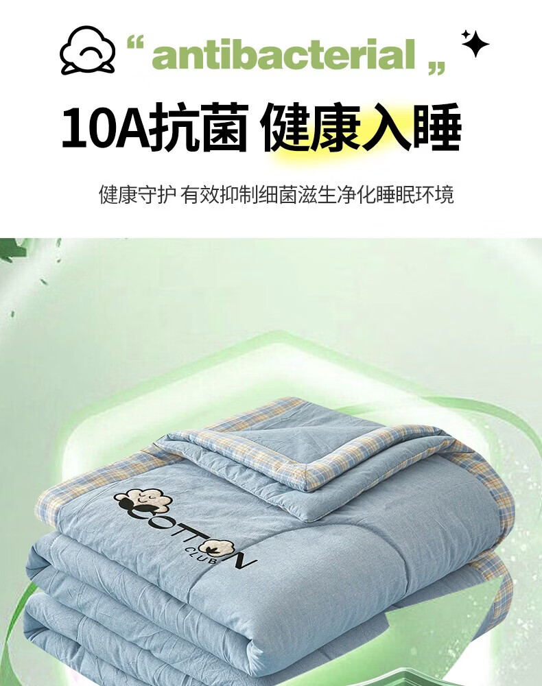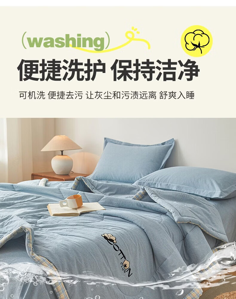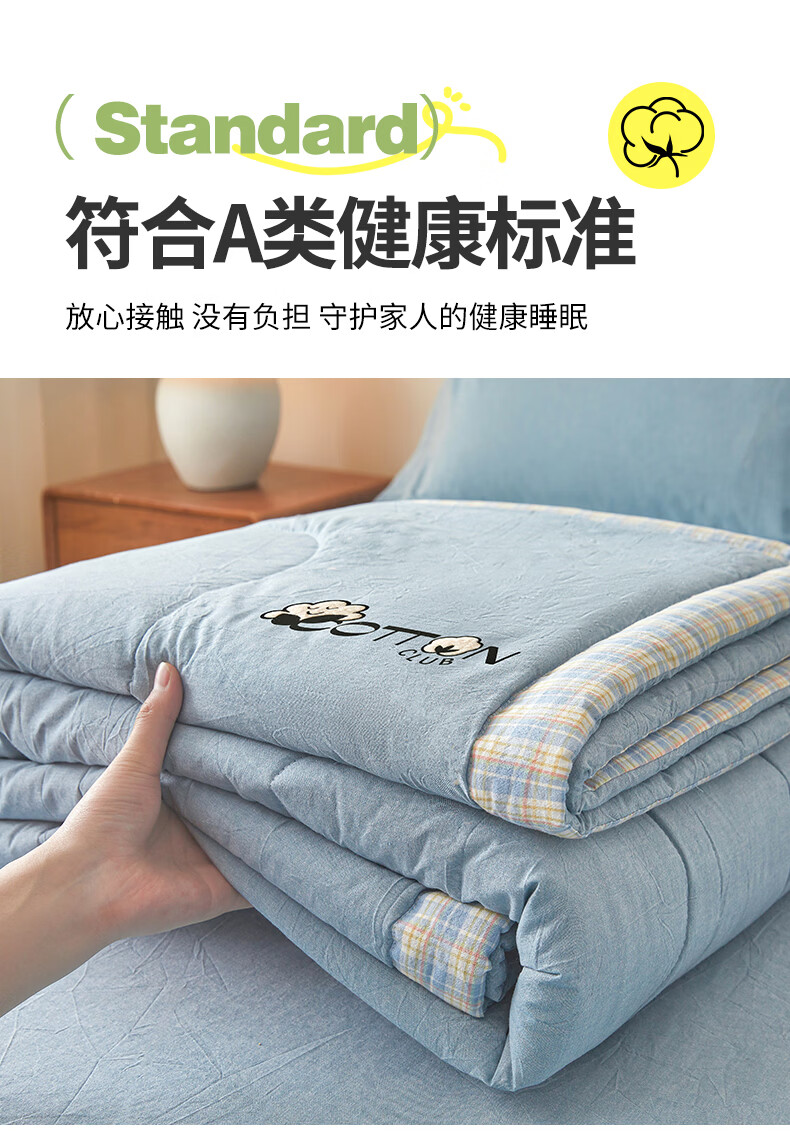一默棉花被纯棉新疆棉花抗菌夏被2026春夏薄被子A类全棉空调被夏凉被 全棉烫画-海洋蓝 150cm*200cm