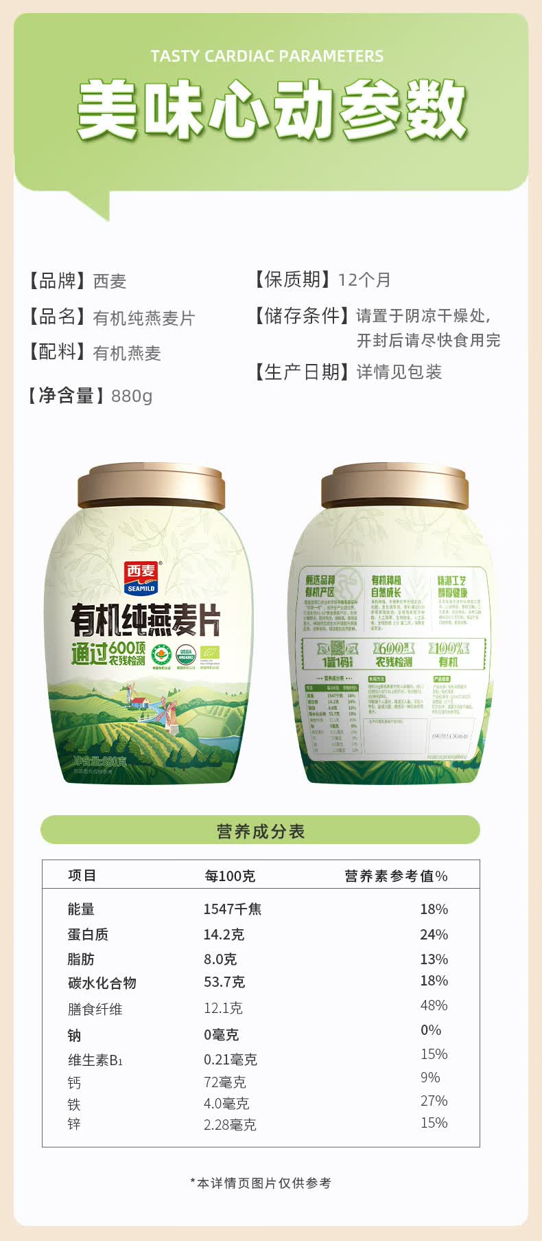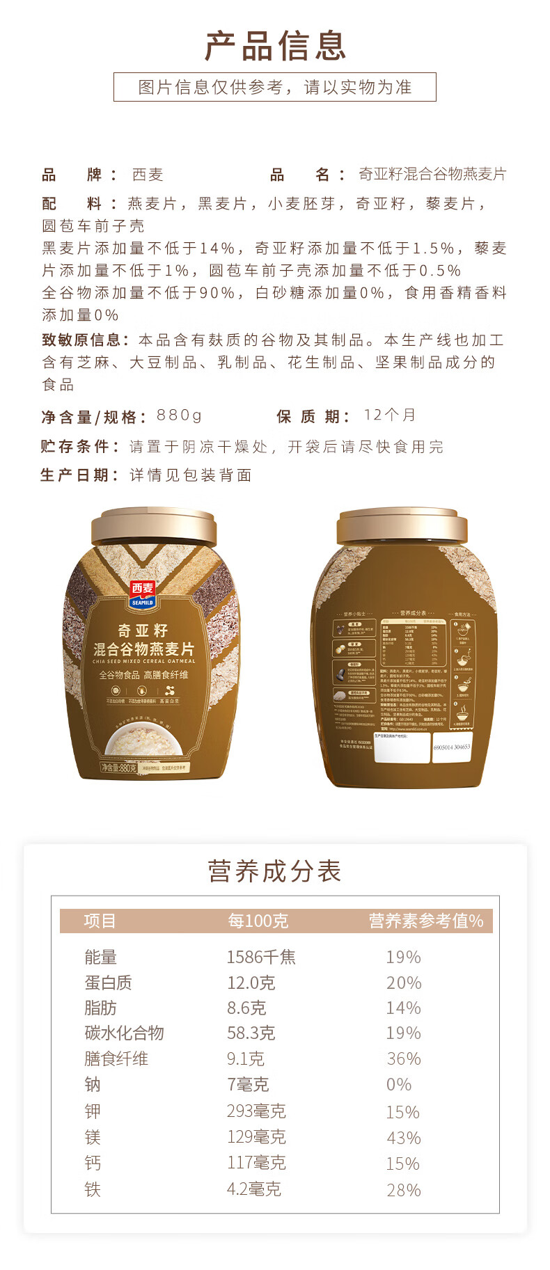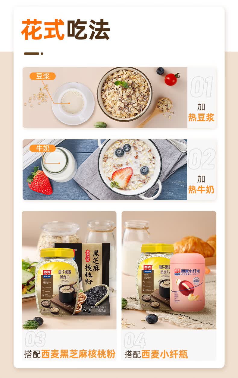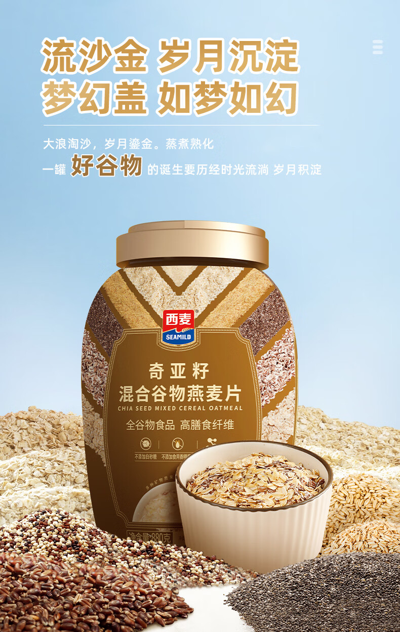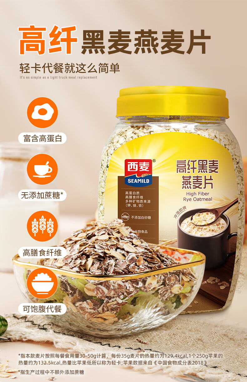 西麦 高纤黑麦谷物燕麦片桶装无添加蔗糖营养麦片 1000g/桶*2