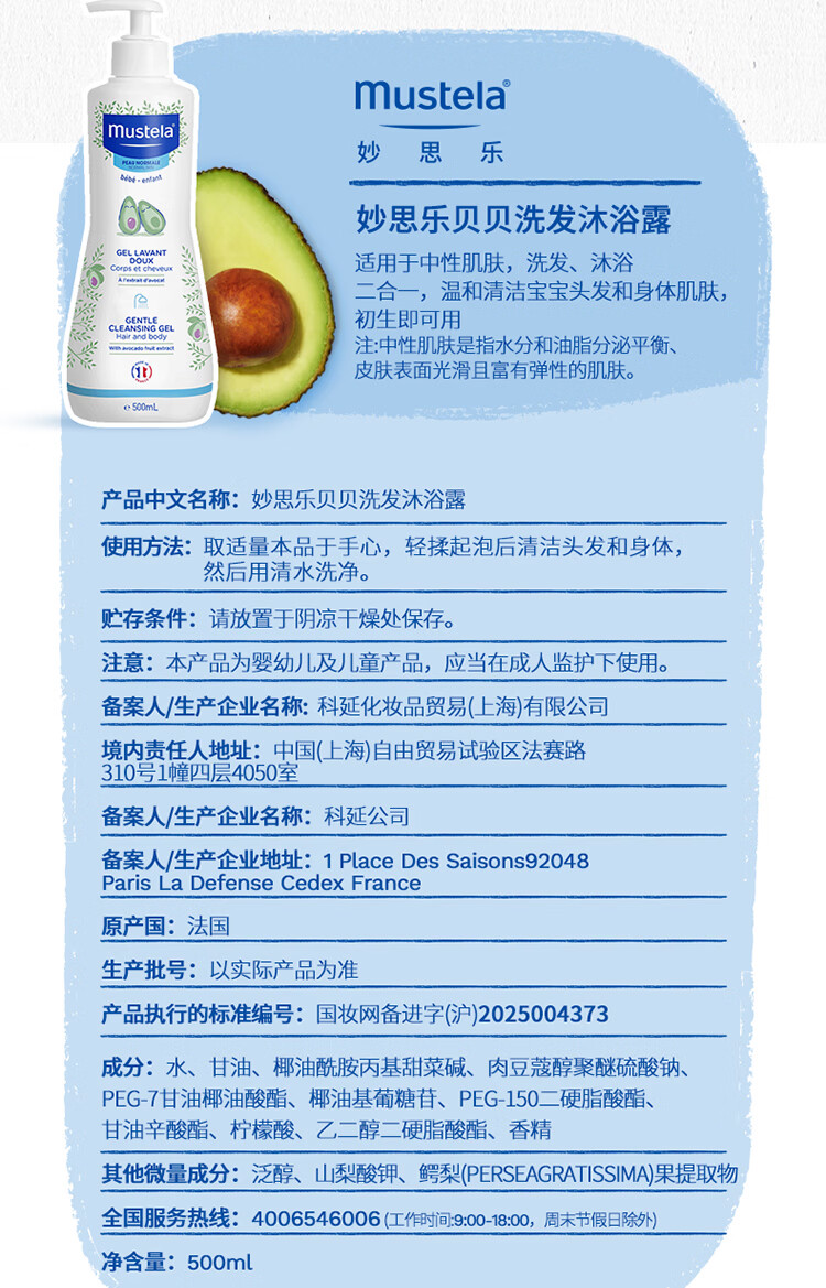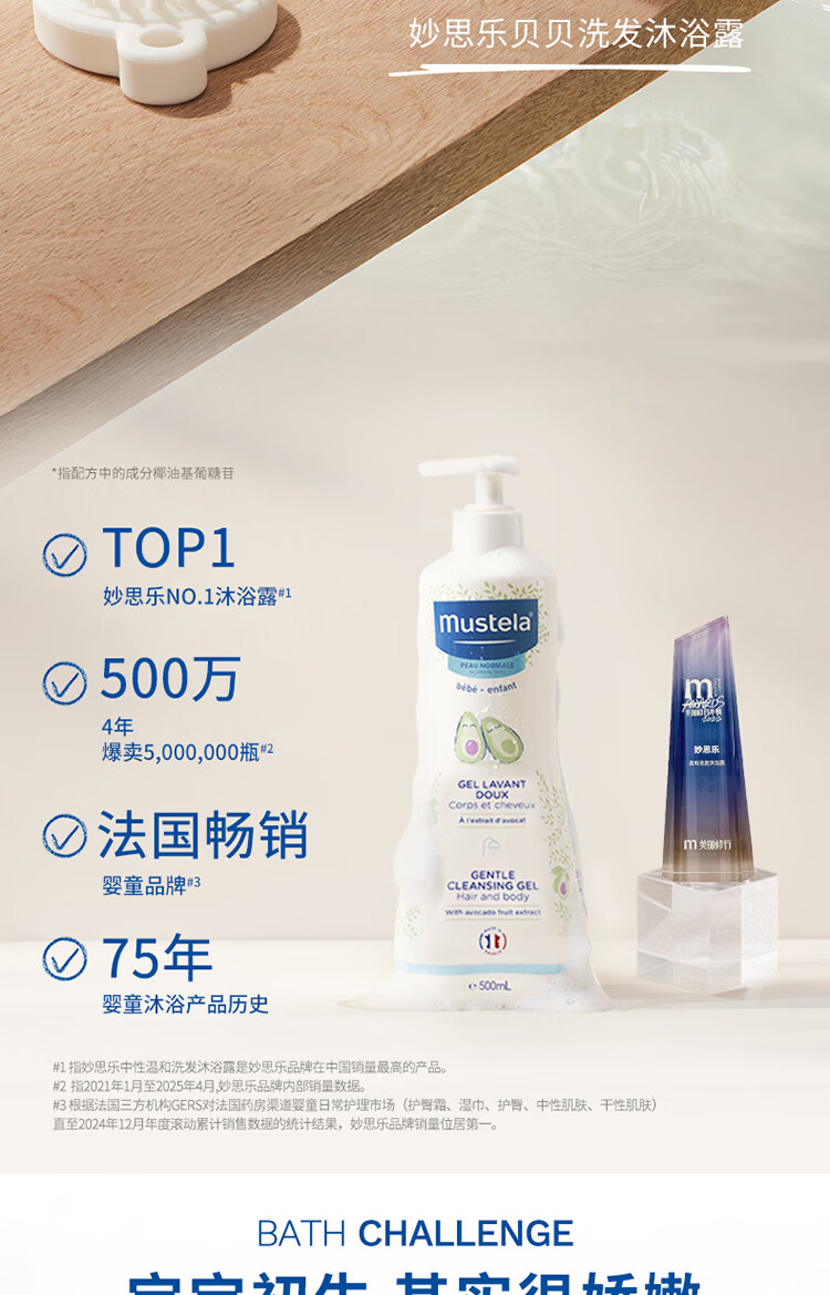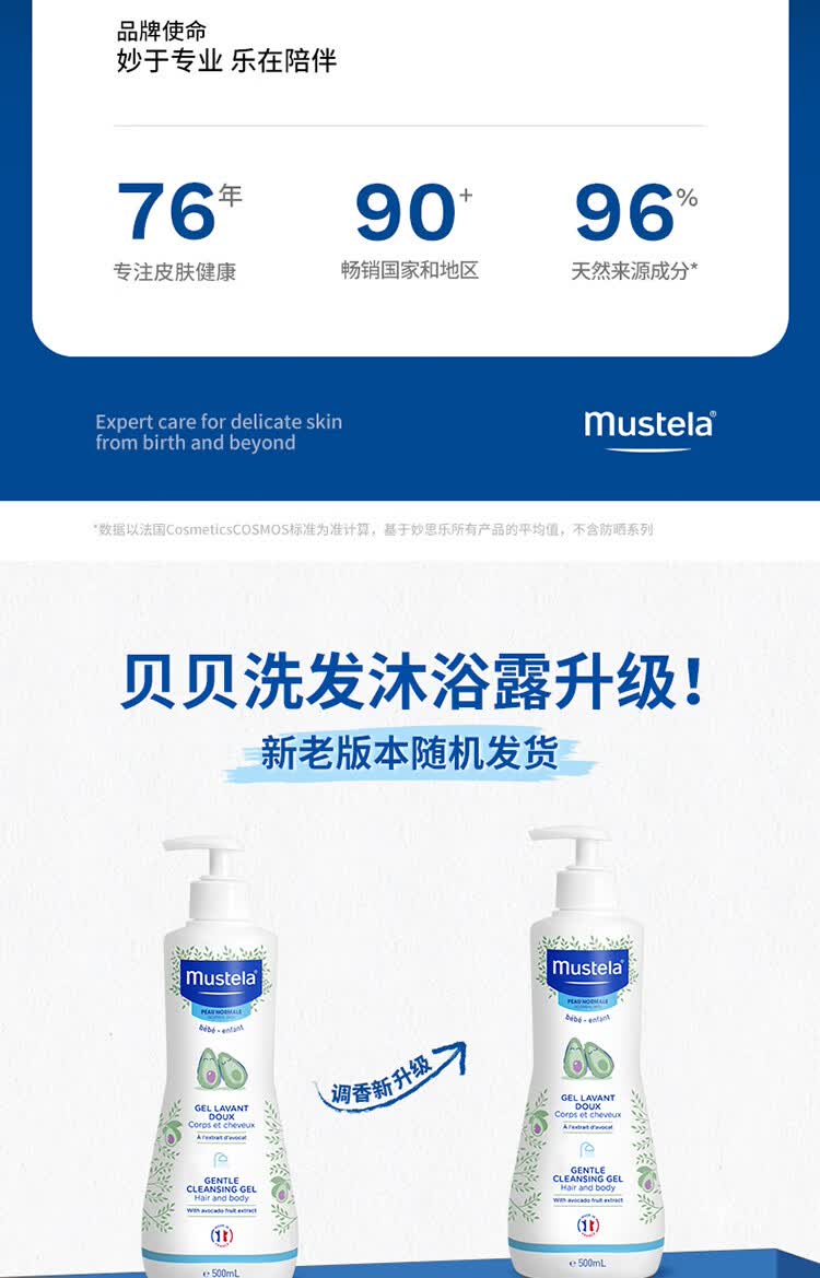 妙思乐婴幼儿沐浴露洗发水二合一儿童新生宝宝温和换季洗沐正品 【两瓶超值装】洗发沐浴露500ml*2