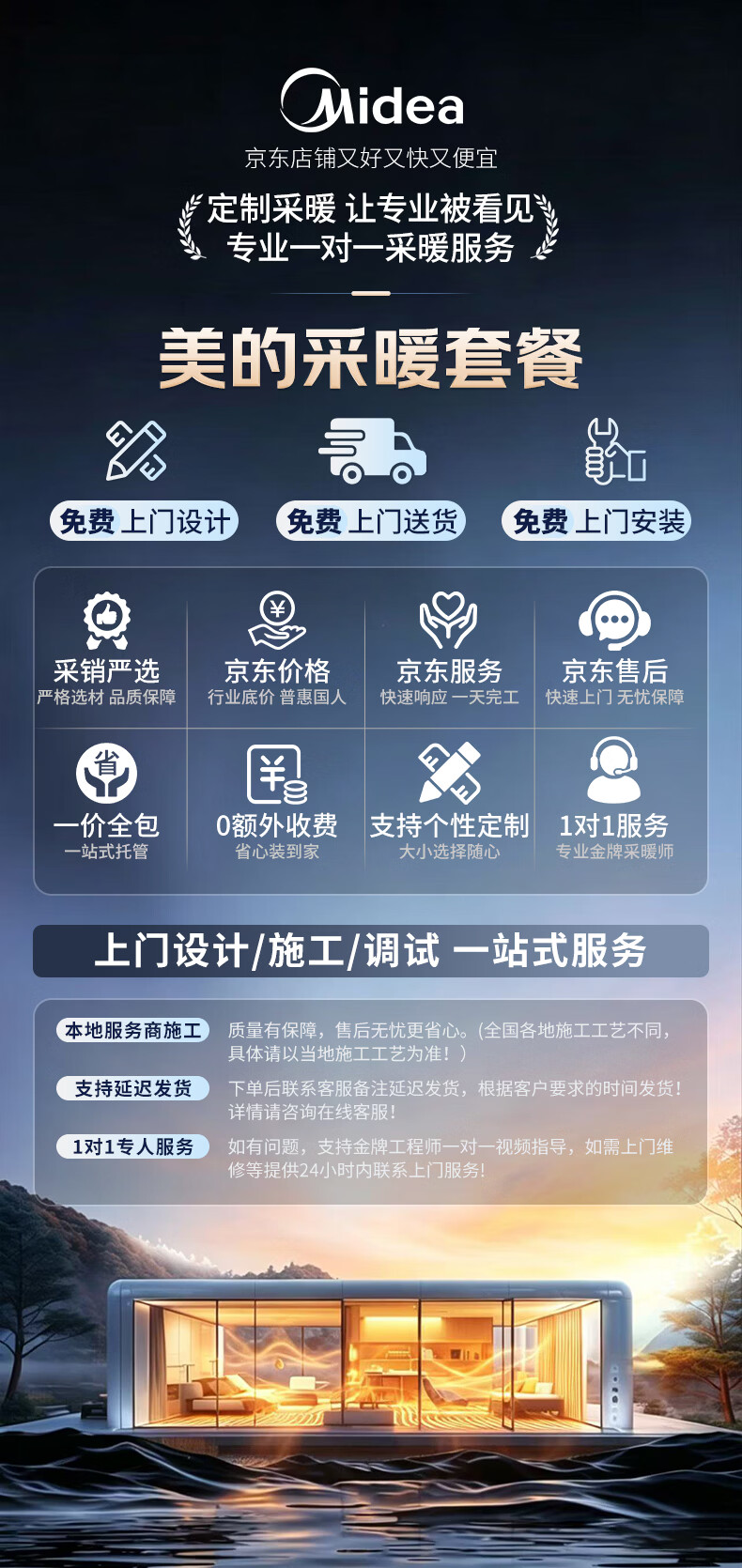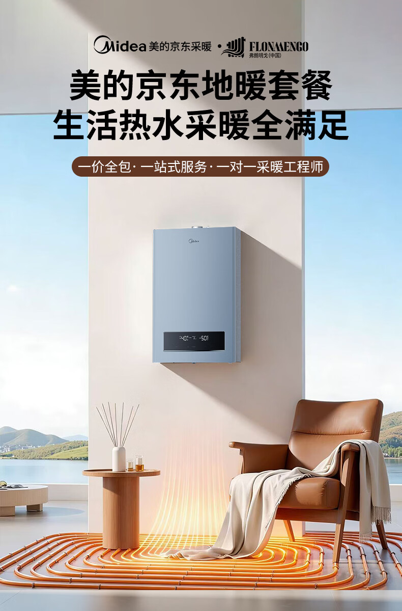 美的(Midea)壁挂炉x地暖铺设一口价全包【0元安装】天然气锅炉全程无任何额外费用LL1PBD20-R53 高配节能款 壁挂炉+地暖实铺75-90㎡