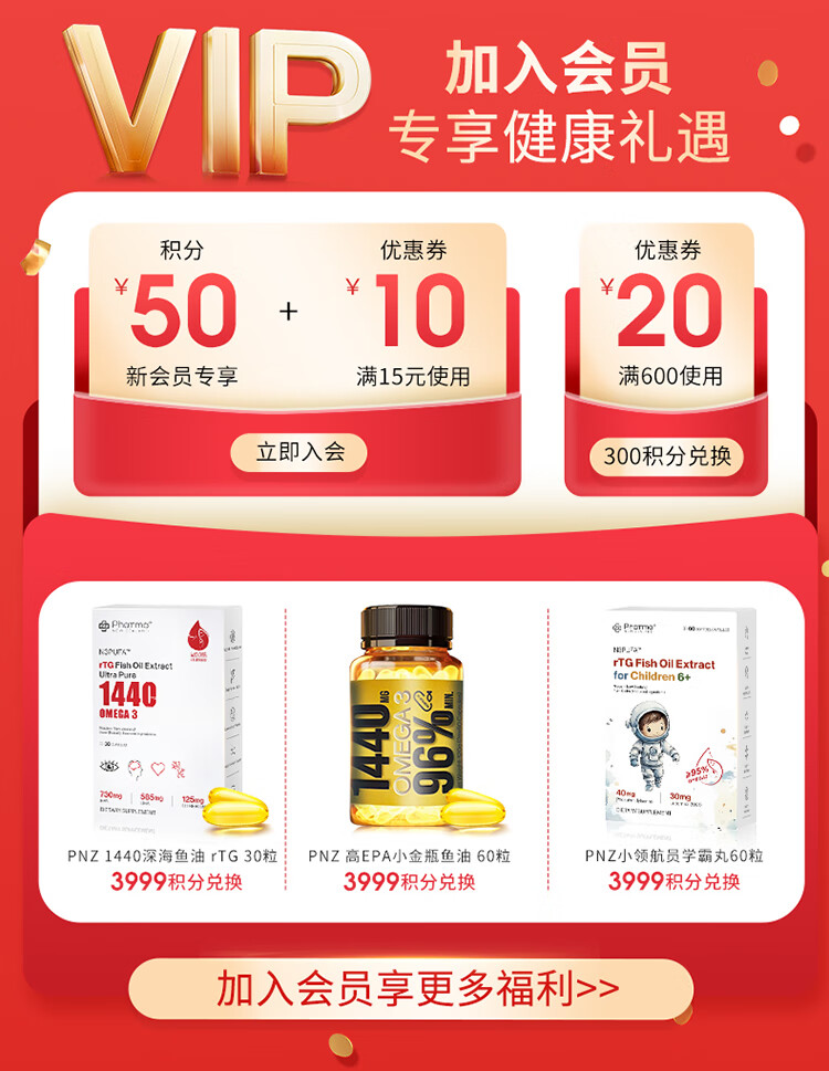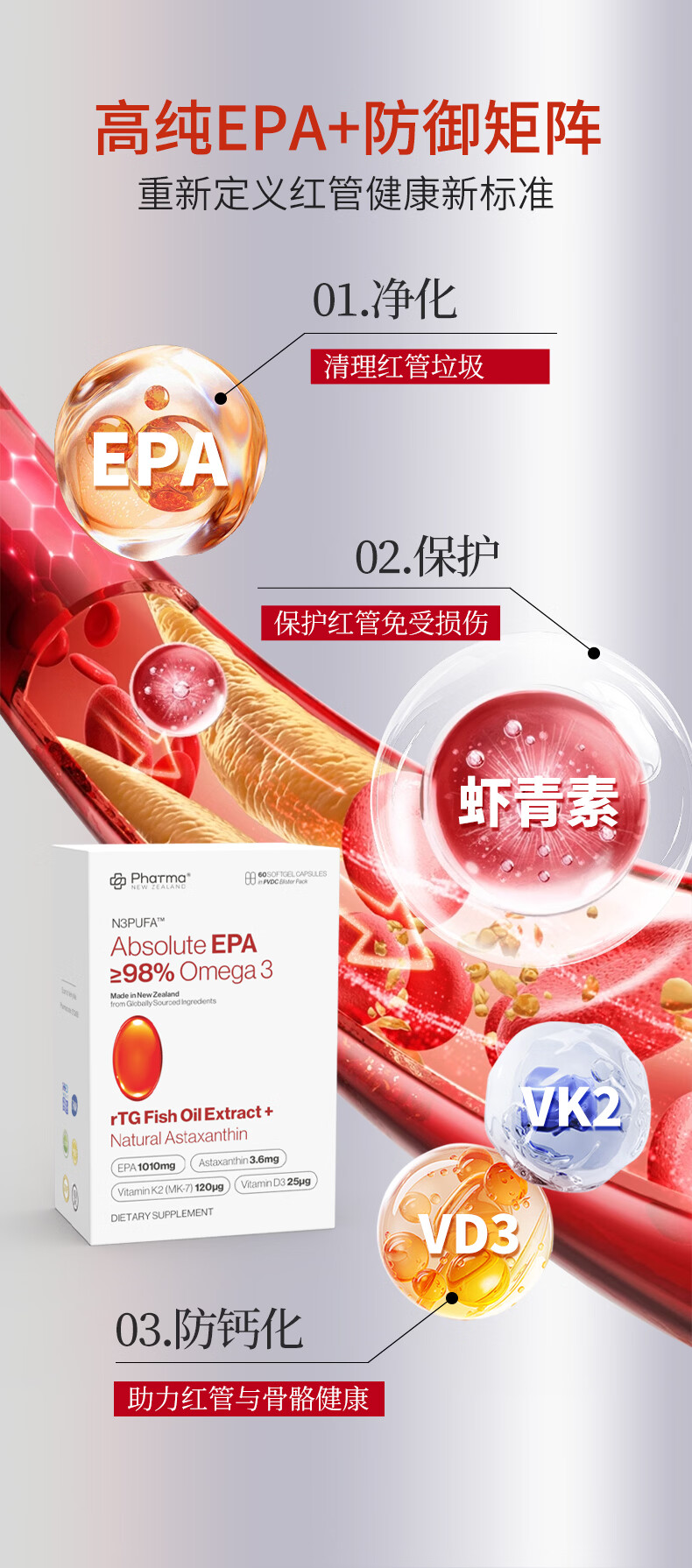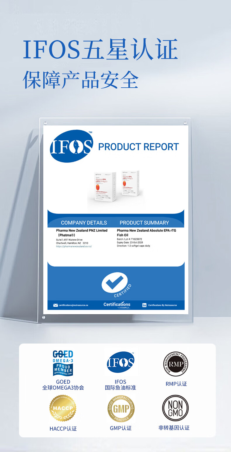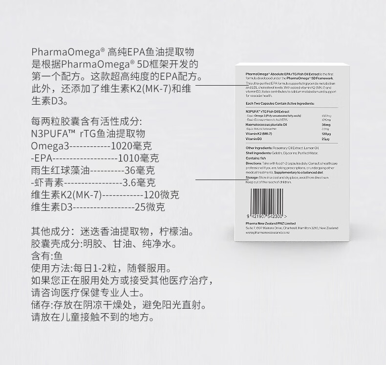 PhatmaPNZ高纯EPA红琥珀深海鱼油软胶囊rTG型Omega3纯度98%虾青素护心脑 降血脂送父母保健品 60粒*1盒