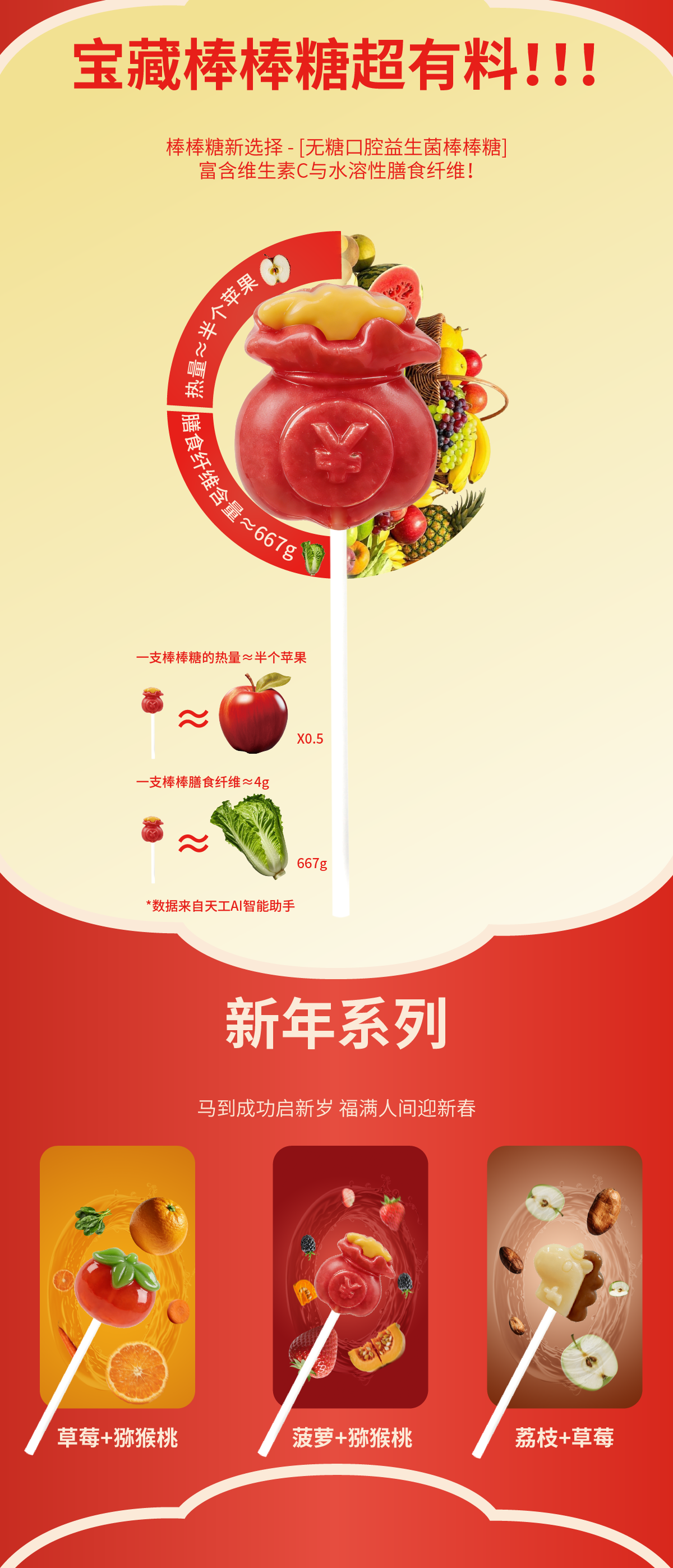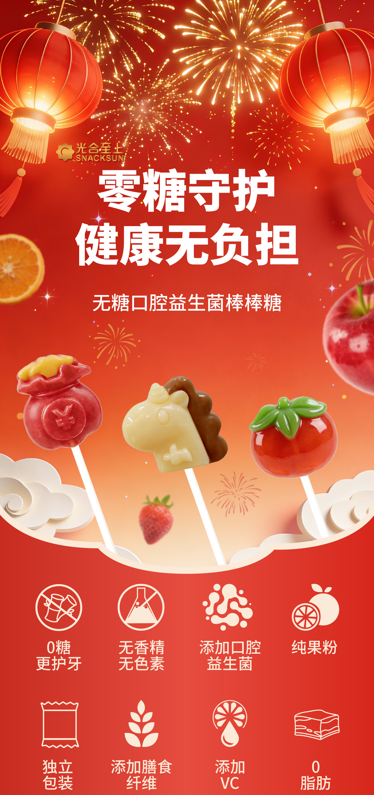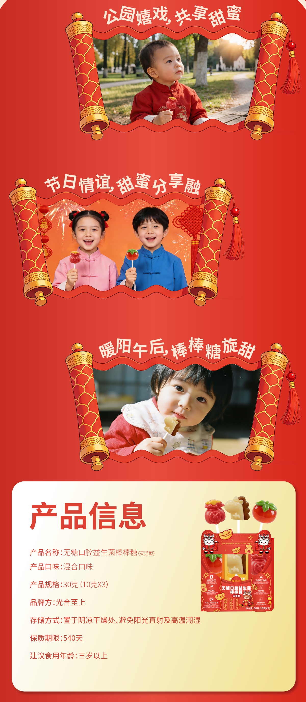 光合至上无添加0糖不伤牙儿童无糖口腔益生菌棒棒糖宝宝零食儿童六一礼物 【3盒-17支】水果1盒+海洋1盒+马年限定糖果礼盒