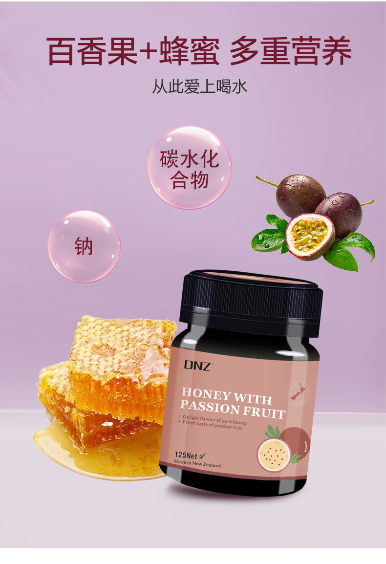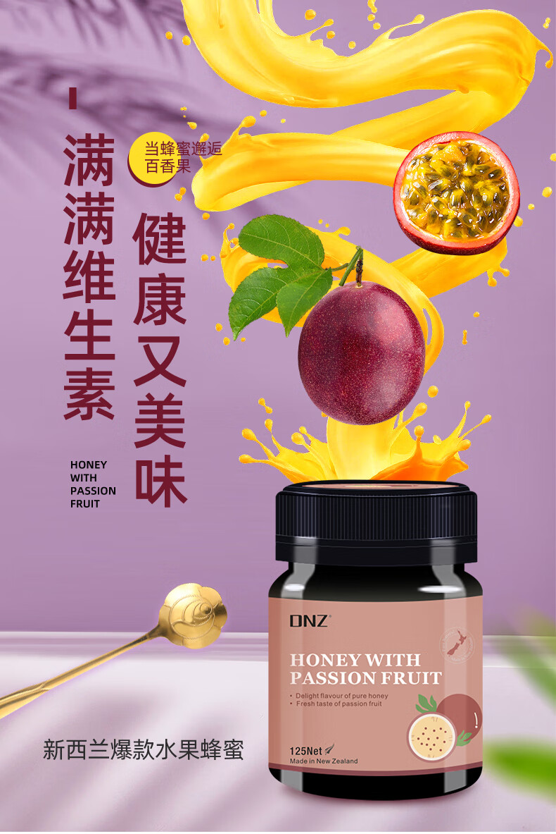 DNZ新西兰原装进口多花百香果柠檬蜜膏多口味125g 节日礼物品伴手礼 百香果蜜 125g*1瓶