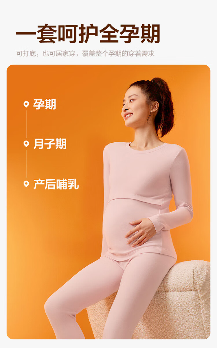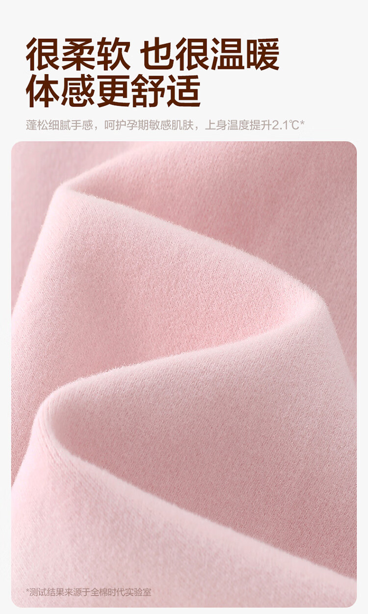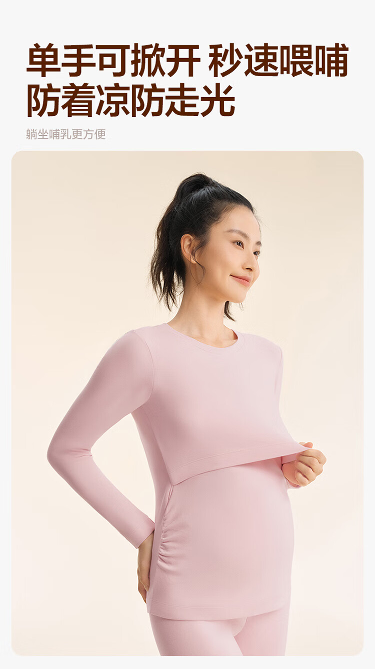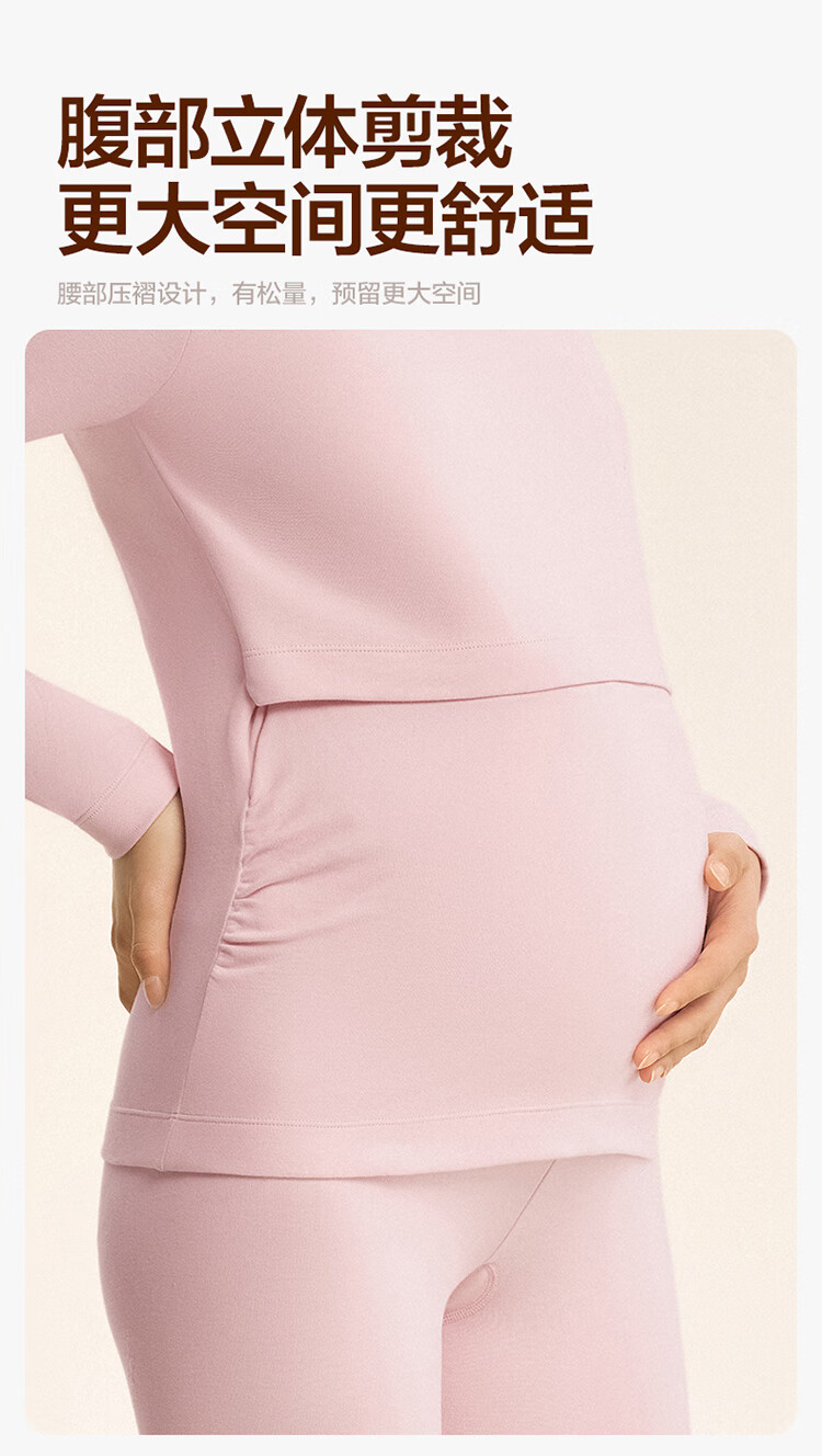 全棉时代孕妇月子服孕妇装秋冬哺乳喂奶风柔棉保暖秋衣秋裤套装 粉160