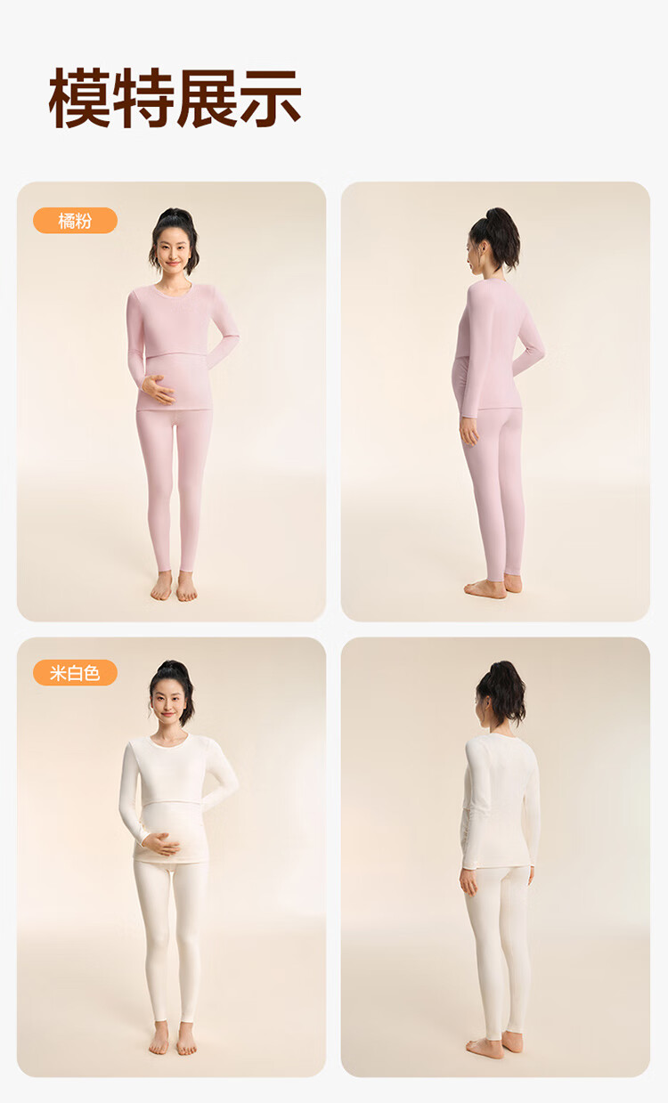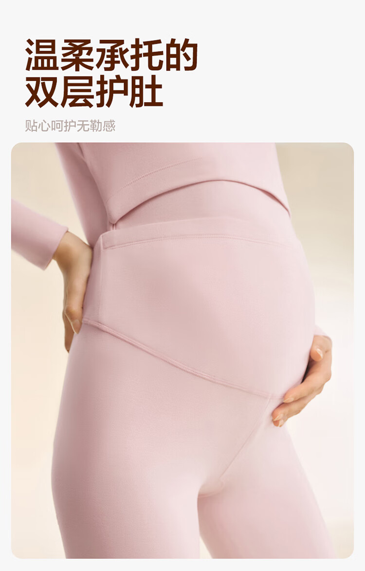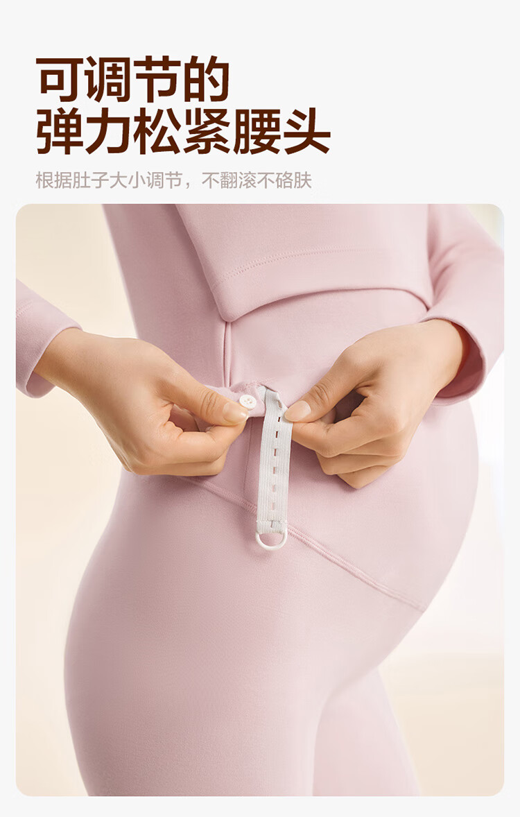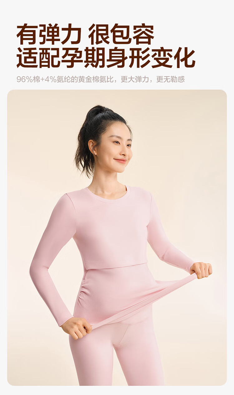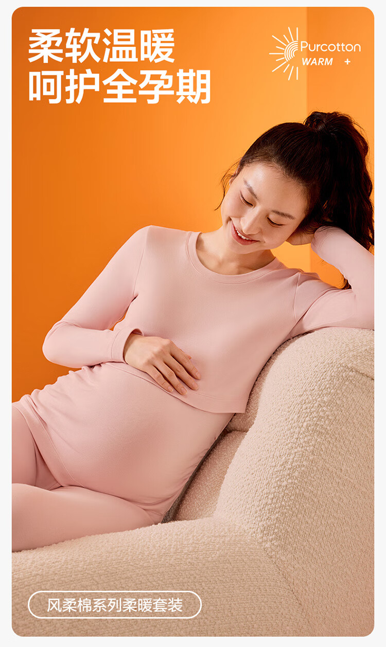 全棉时代孕妇月子服孕妇装秋冬哺乳喂奶风柔棉保暖秋衣秋裤套装 粉160