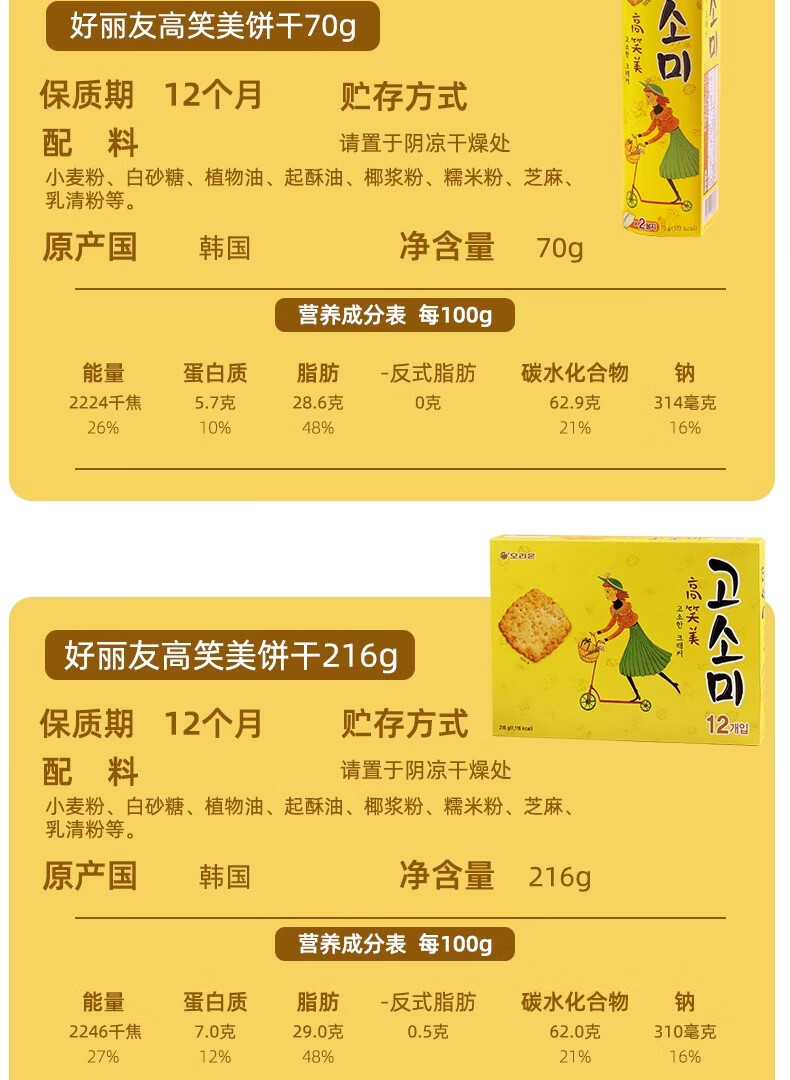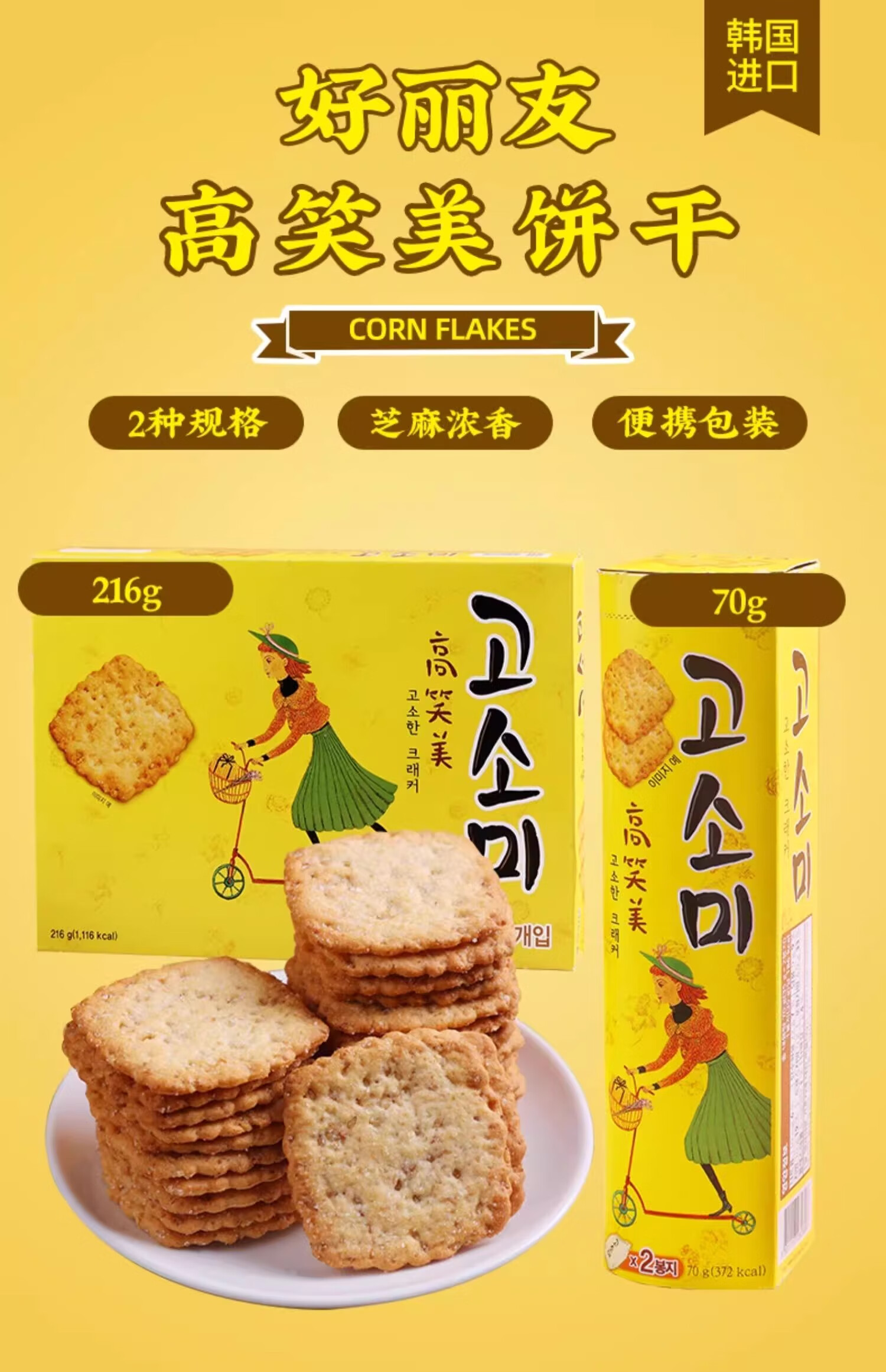 好丽友高笑美饼干70g 高笑美芝麻薄脆饼干早餐办公室韩国零食下午茶点
