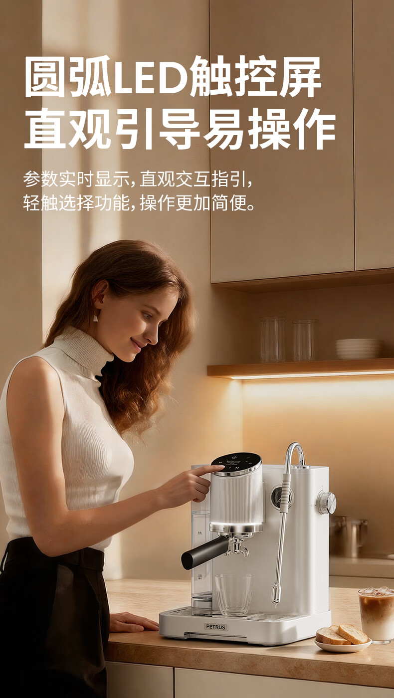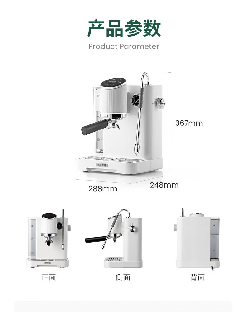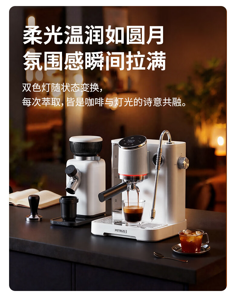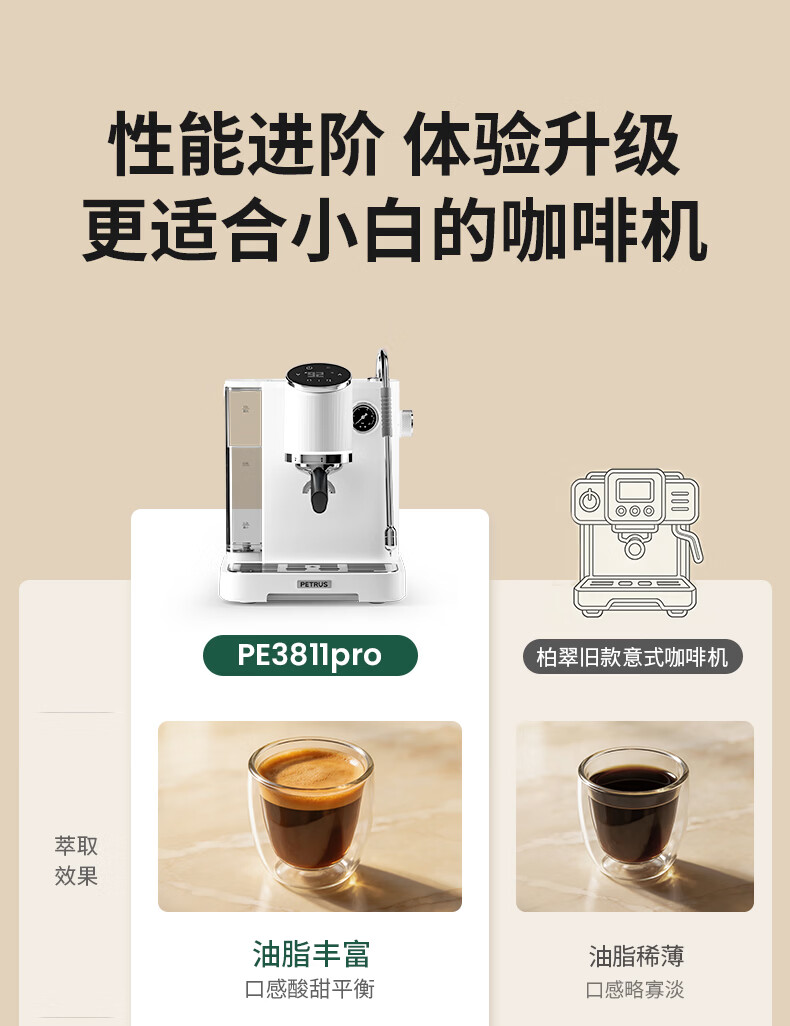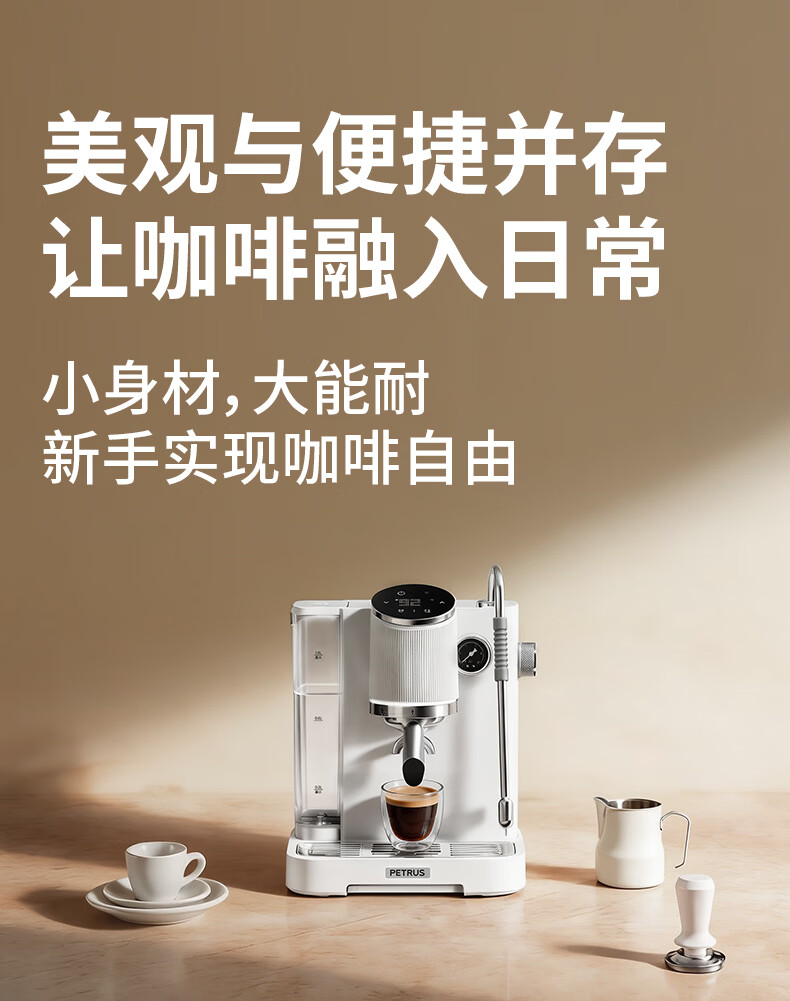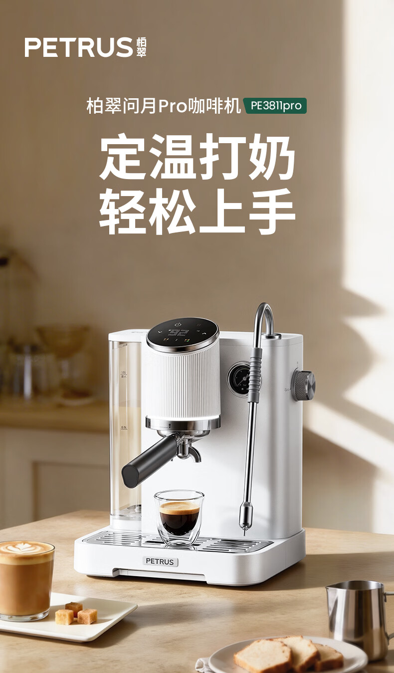 柏翠(petrus)咖啡机半自动意式美式家用小型自动打奶泡问月Pro PE3811Pro