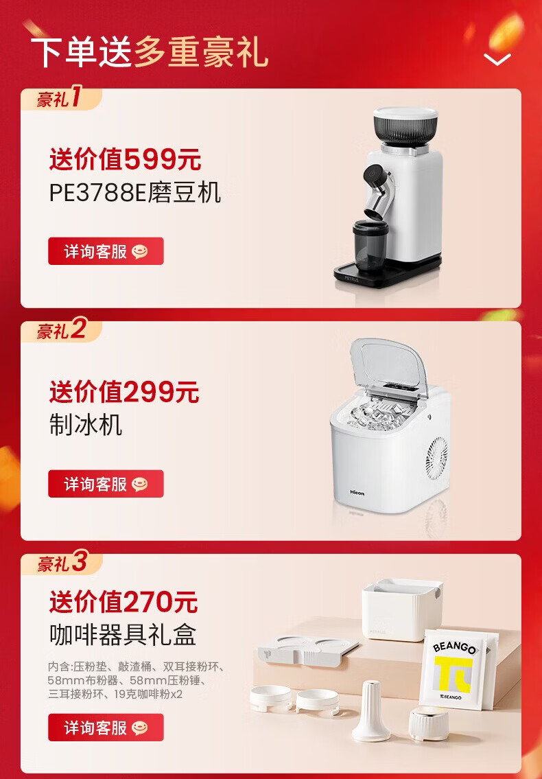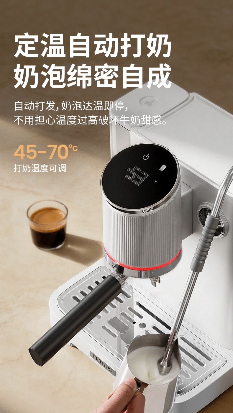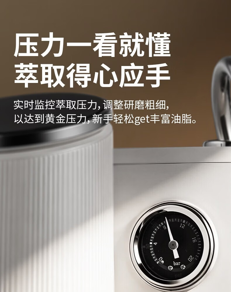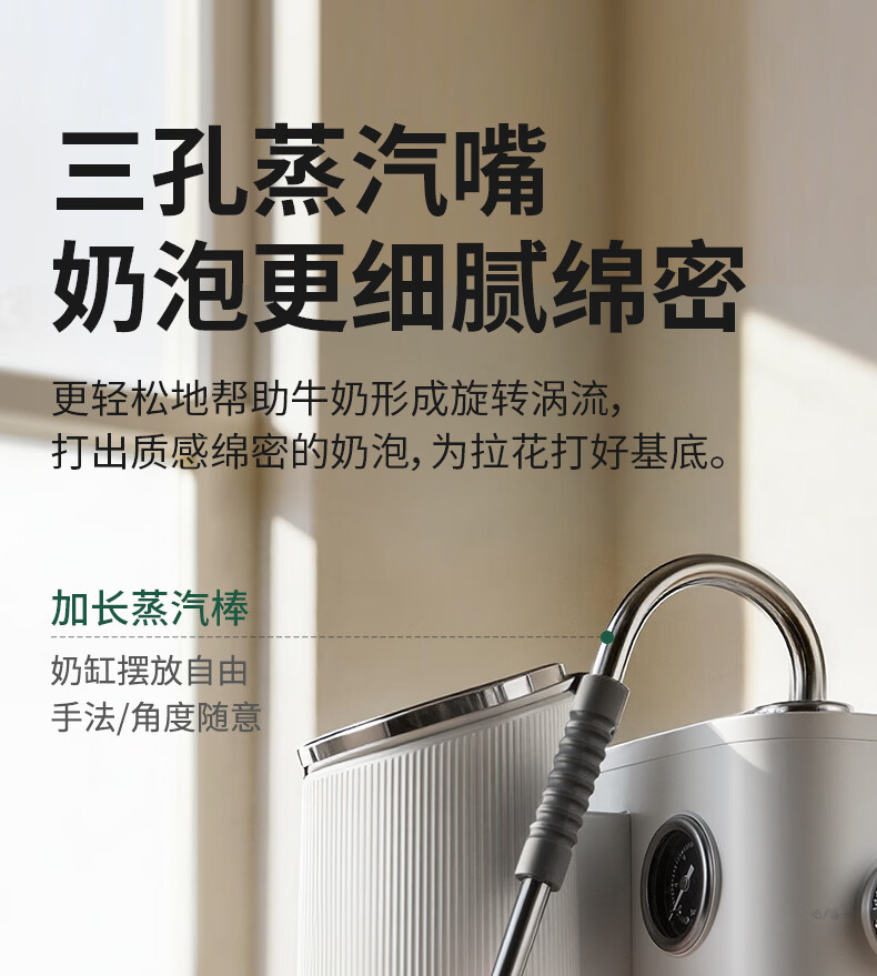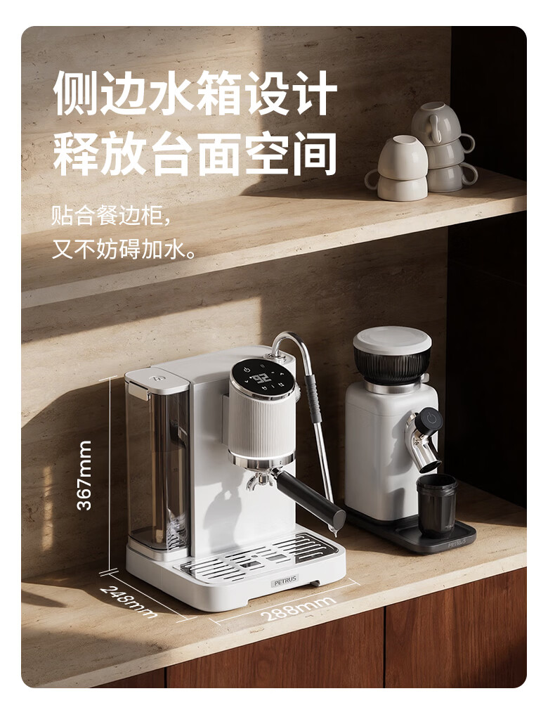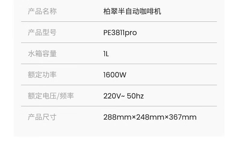 柏翠(petrus)咖啡机半自动意式美式家用小型自动打奶泡问月Pro PE3811Pro