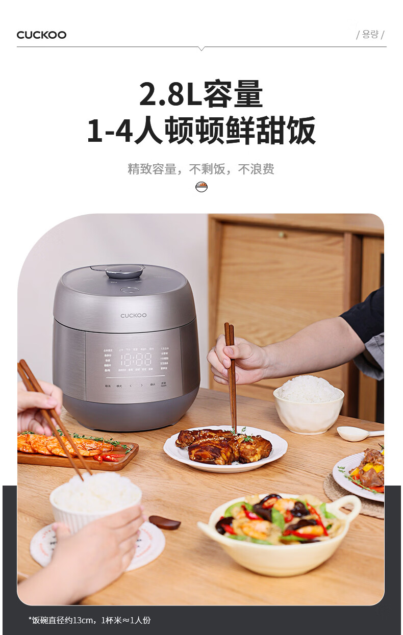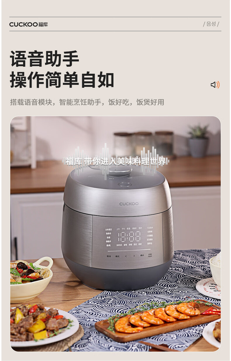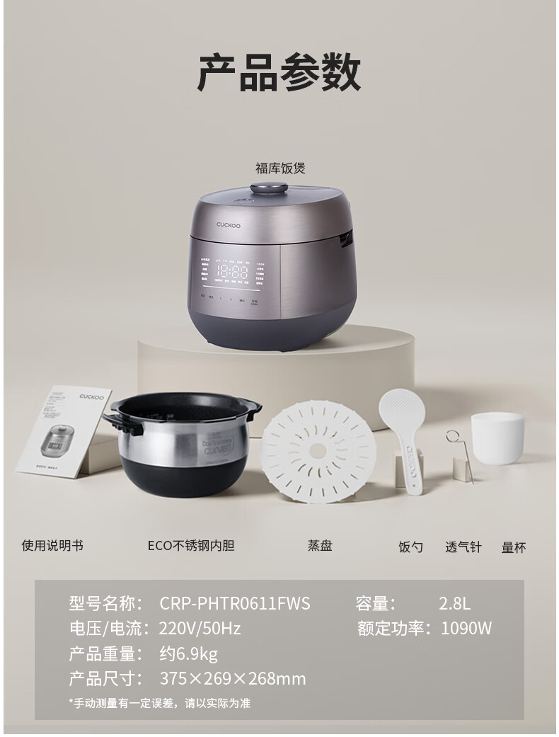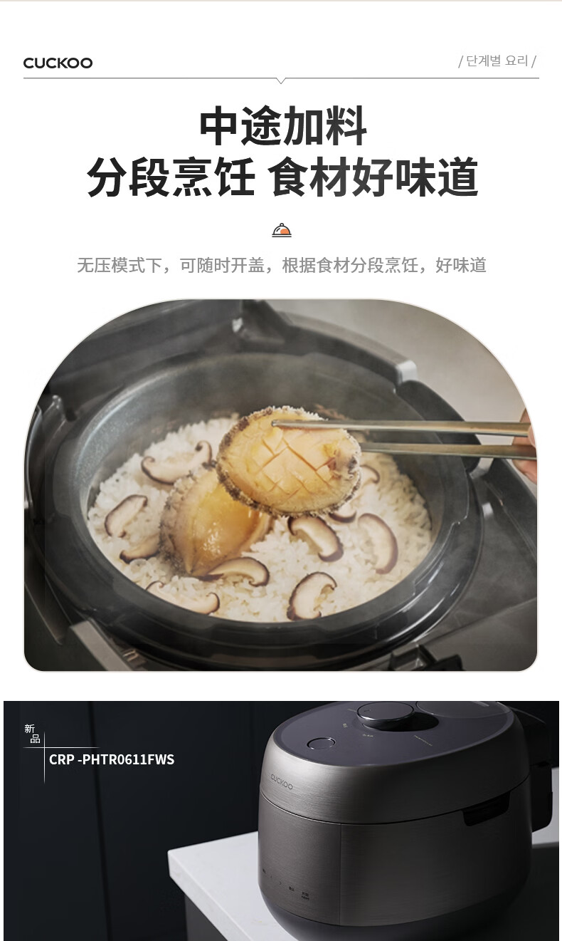 福库(CUCKOO)电饭煲韩国原装进口家用多功能电饭锅真高压力高火力ih三维立体加热智能语音双压不粘内胆不粘锅 PHTR0611FWS 2.8L