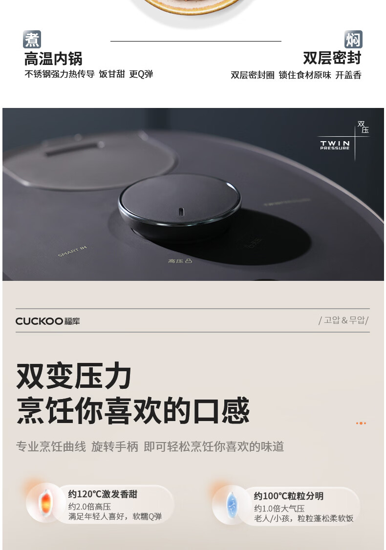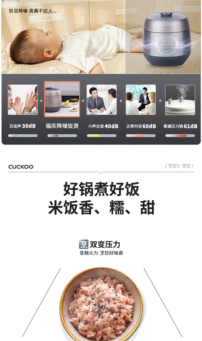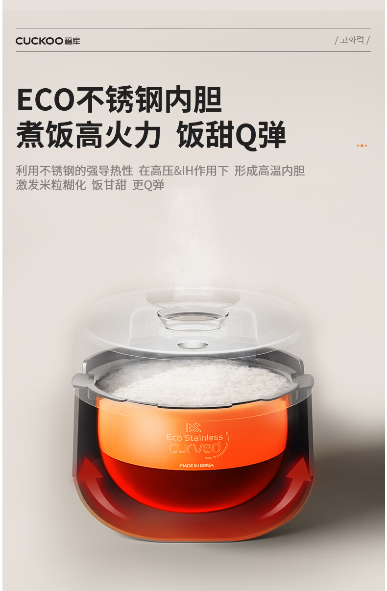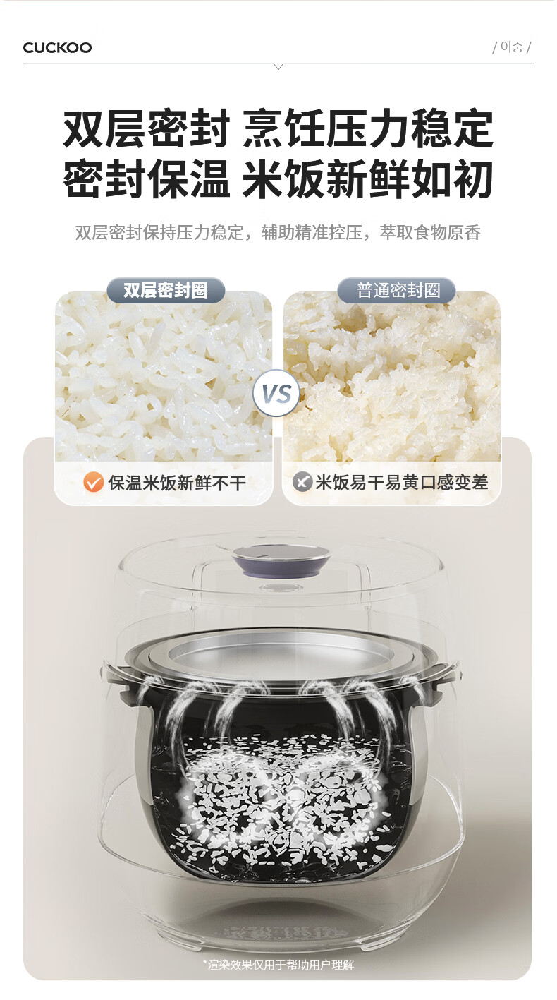 福库(CUCKOO)电饭煲韩国原装进口家用多功能电饭锅真高压力高火力ih三维立体加热智能语音双压不粘内胆不粘锅 PHTR0611FWS 2.8L