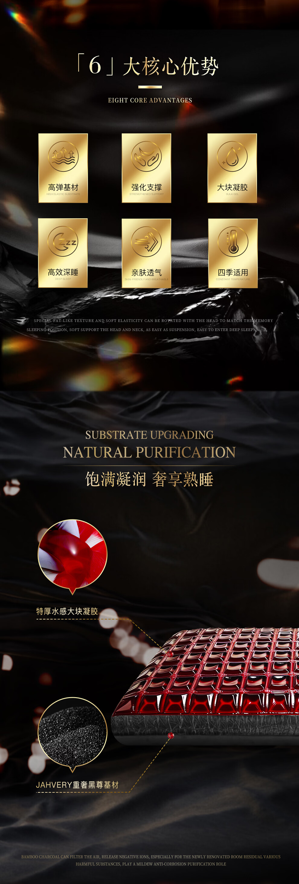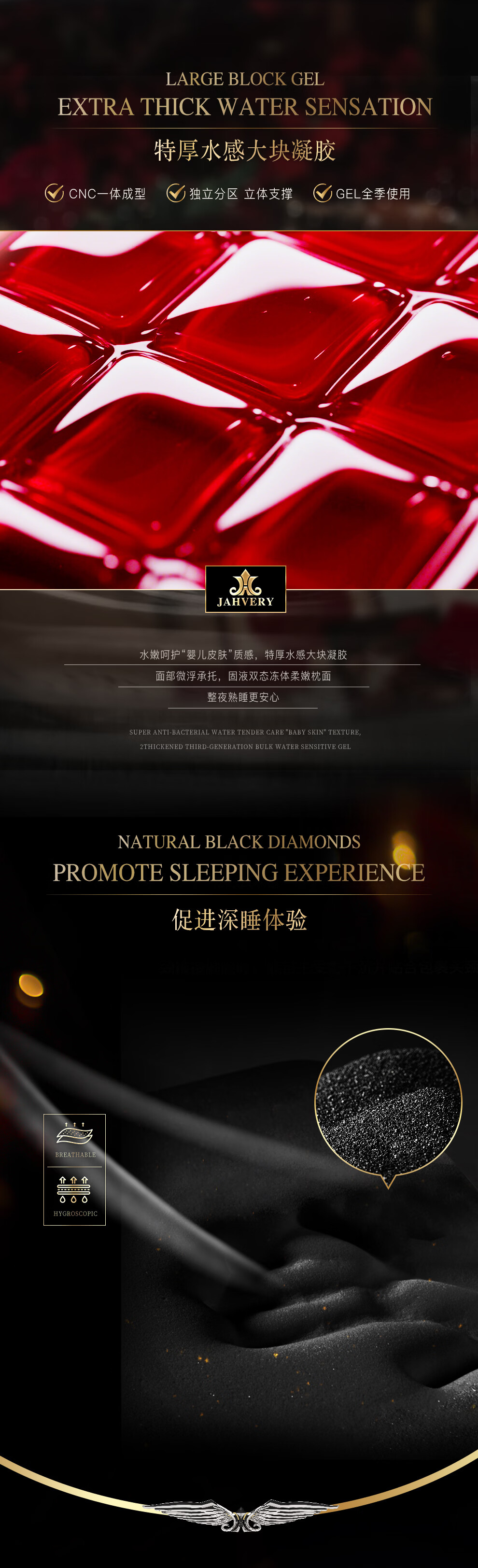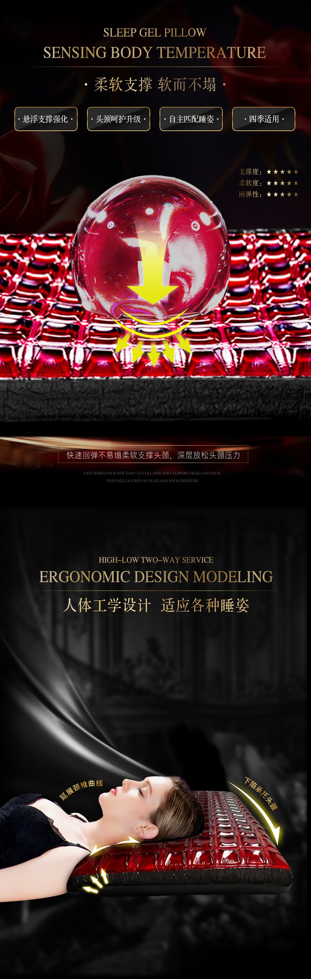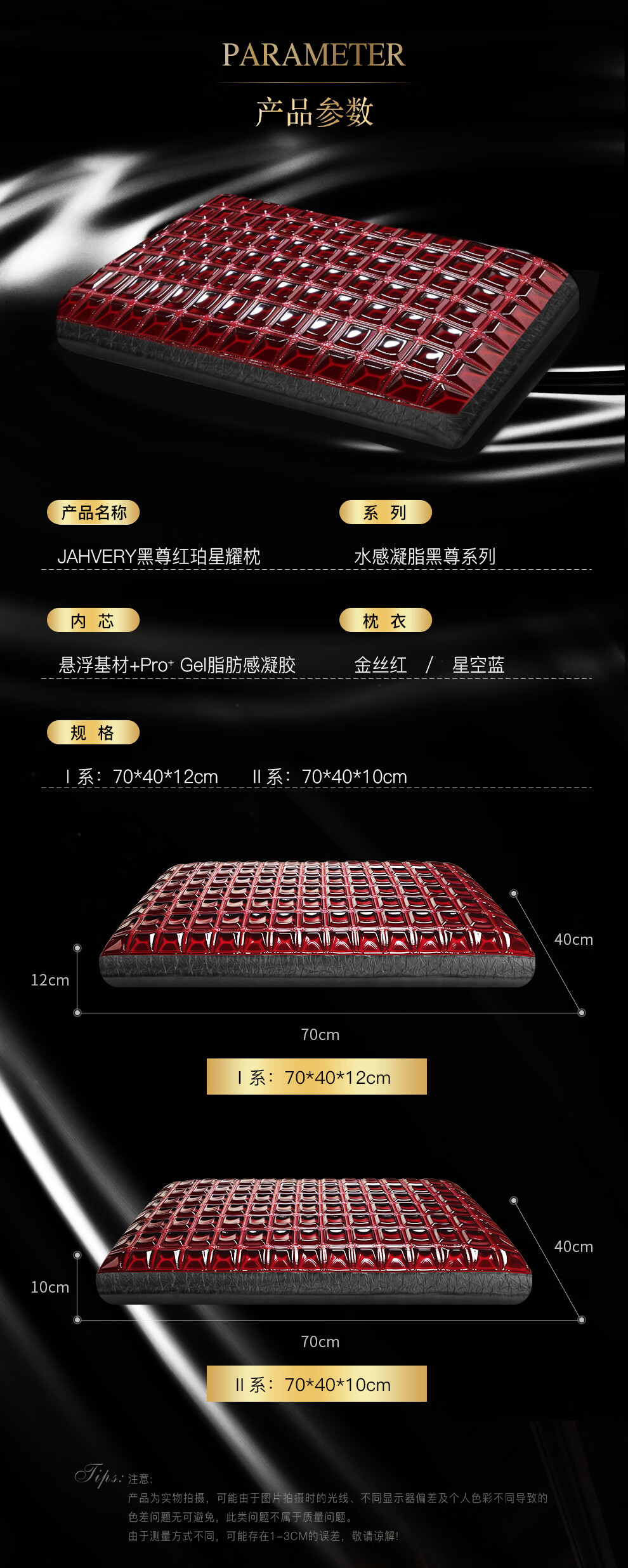 JAHVERY【总裁定制】凝胶枕头颈椎枕护颈记忆棉助睡眠睡觉专用慢回弹枕芯 重磅黑尊-星空蓝-红珀星耀枕 70*40*10cm