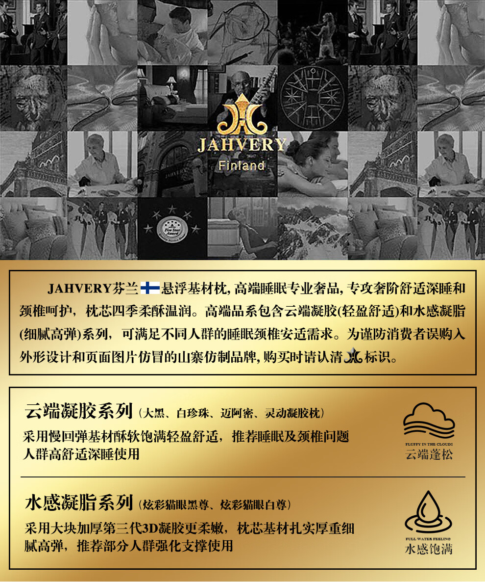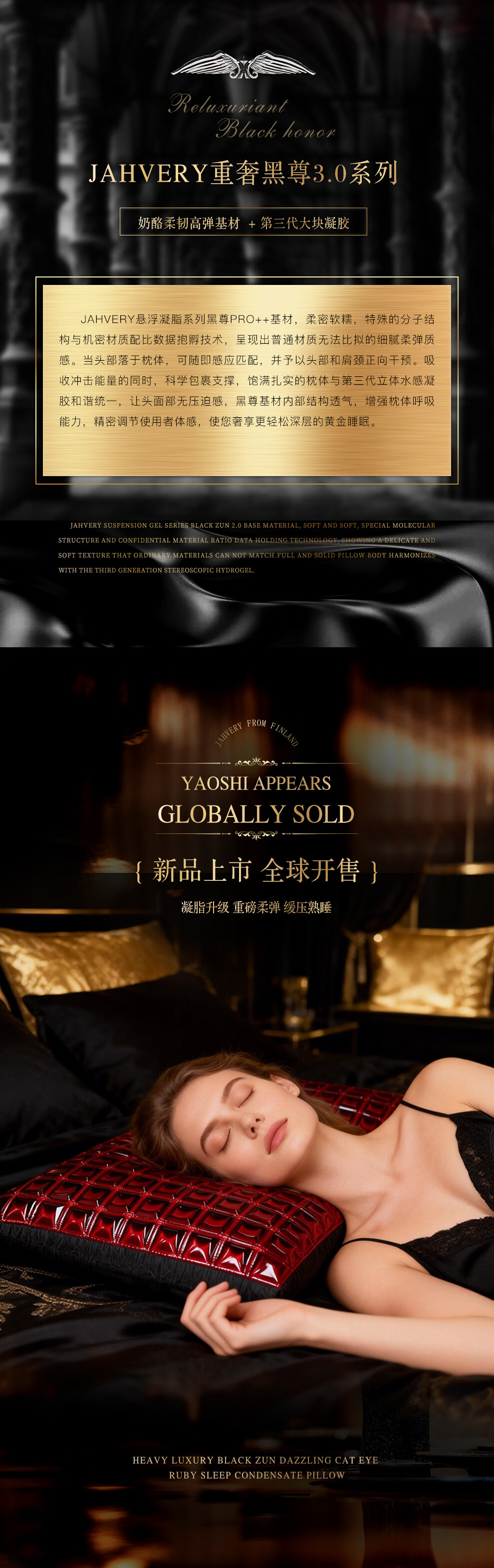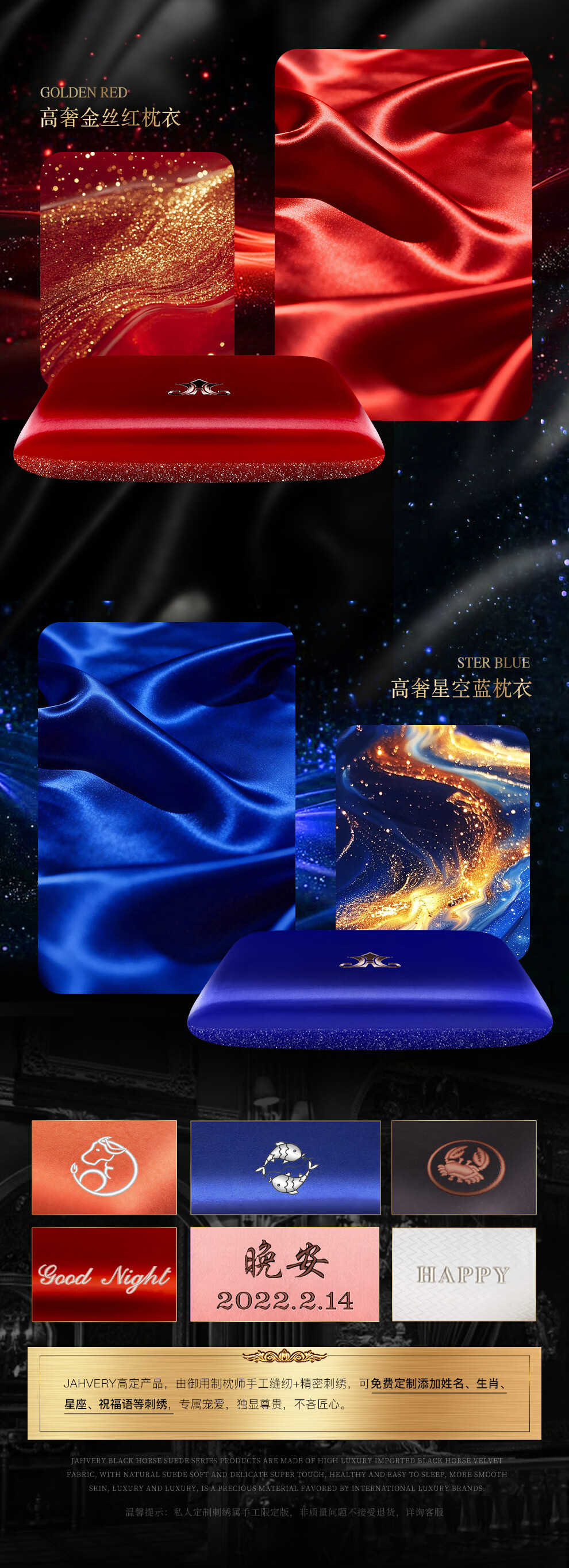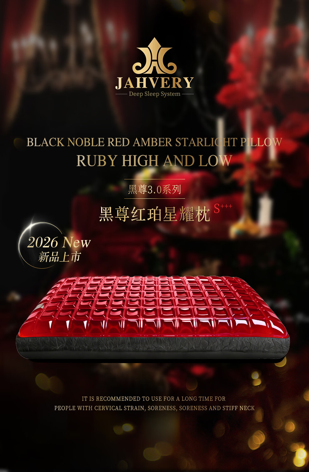 JAHVERY【总裁定制】凝胶枕头颈椎枕护颈记忆棉助睡眠睡觉专用慢回弹枕芯 重磅黑尊-星空蓝-红珀星耀枕 70*40*10cm