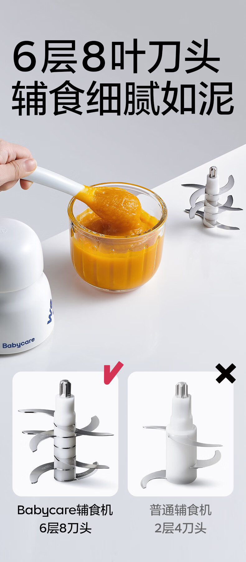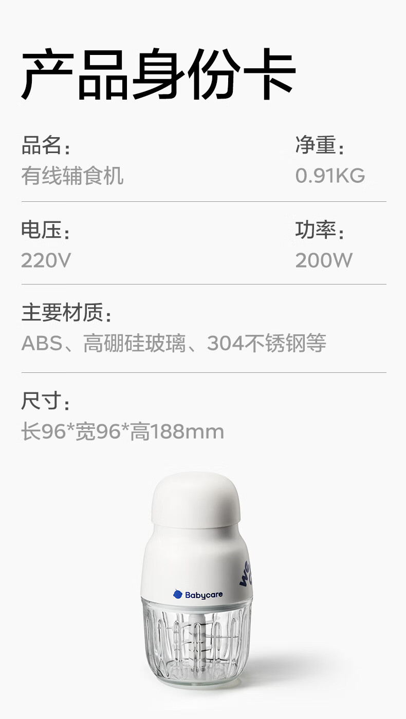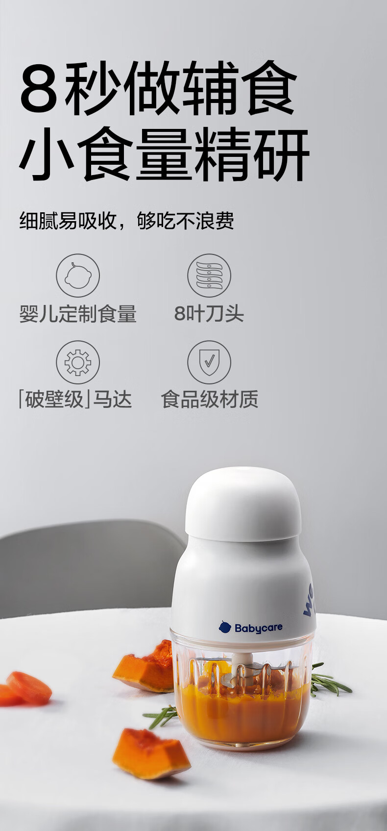 babycare辅食机婴儿宝宝料理机多功能全自动辅食打泥机8叶单杯单刀 辛德白