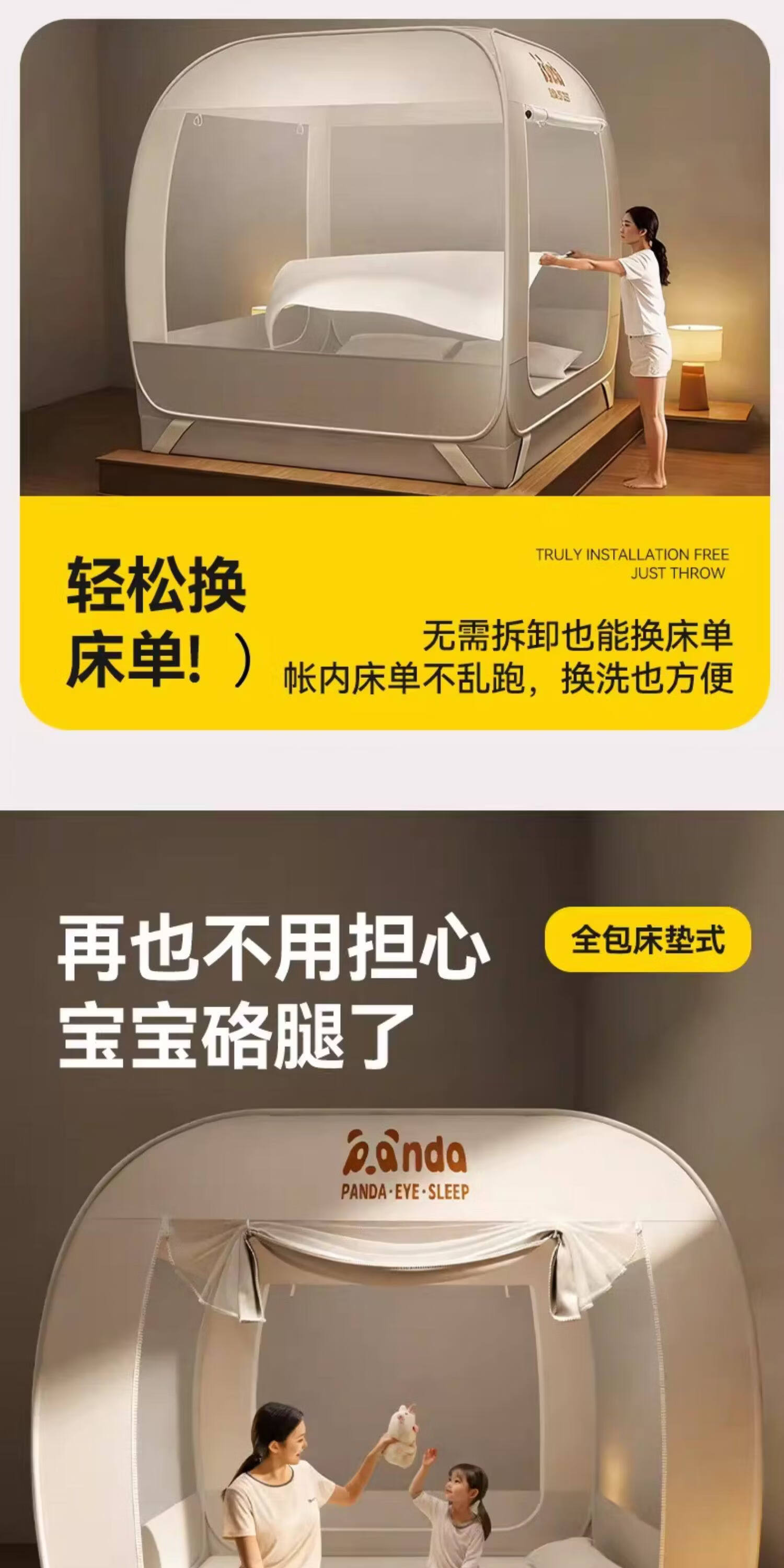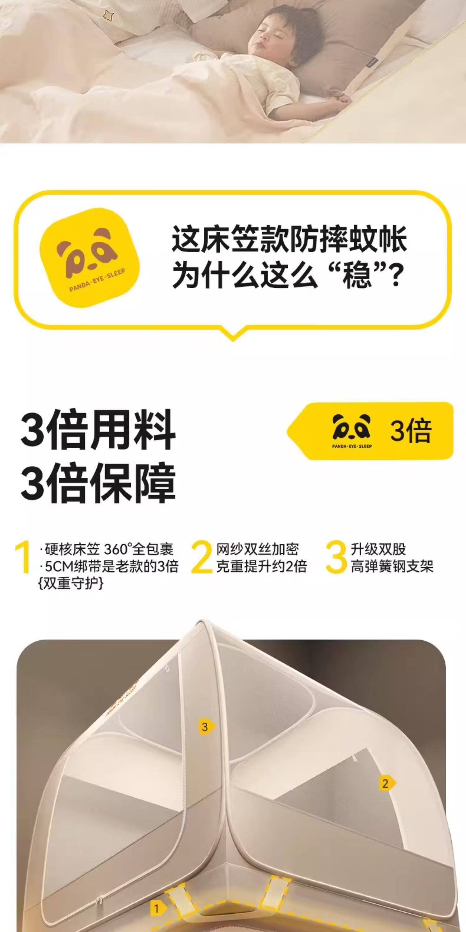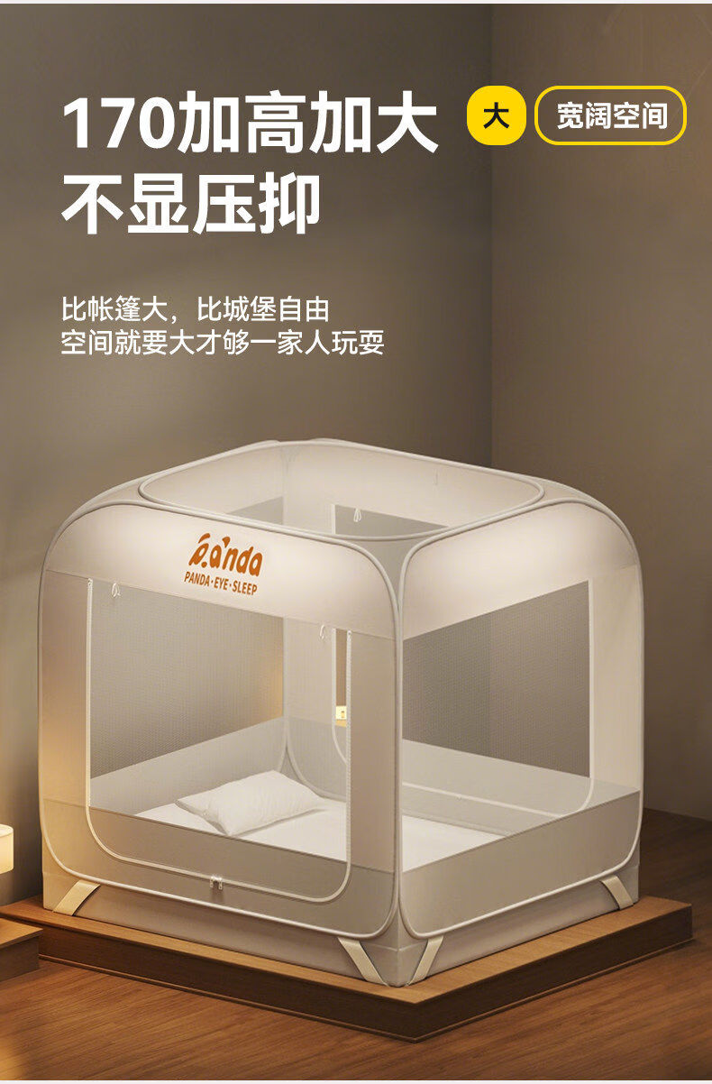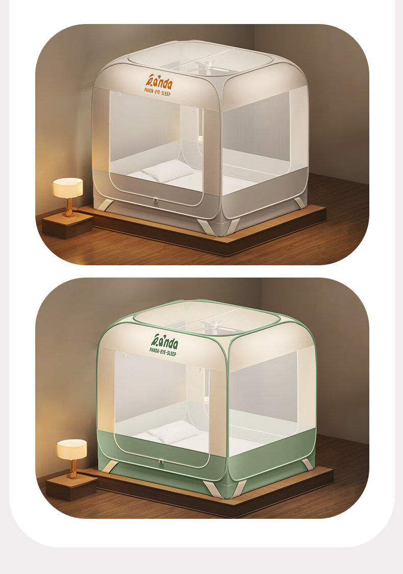 高睿防摔蚊帐免安装蒙古包婴儿防止掉床卧室家用新款全包儿童床上帐篷 【床笠款-绿熊猫】回底双门 宽1.2x长2.0x高1.7m【懒人免安装 3秒速装】
