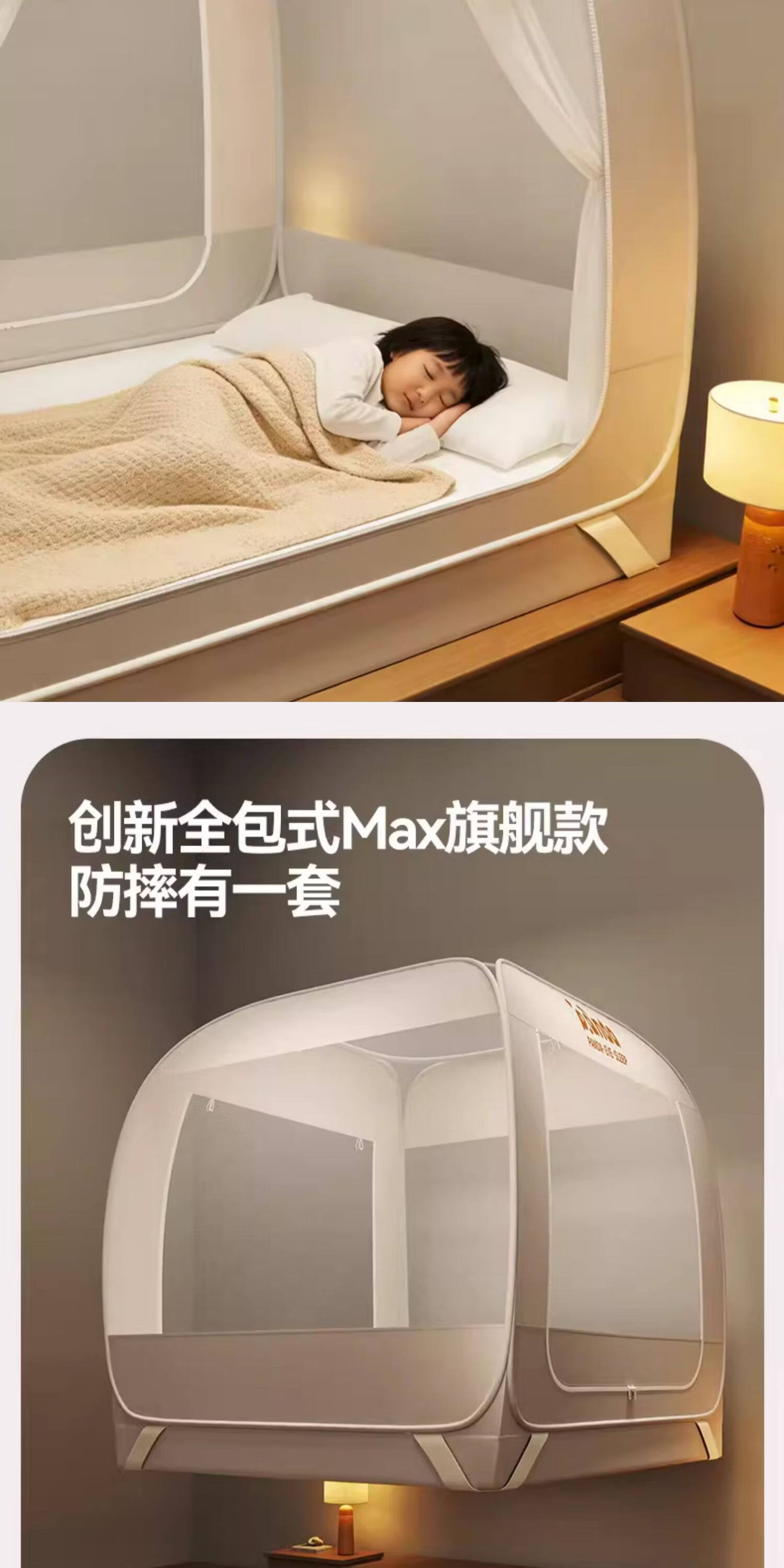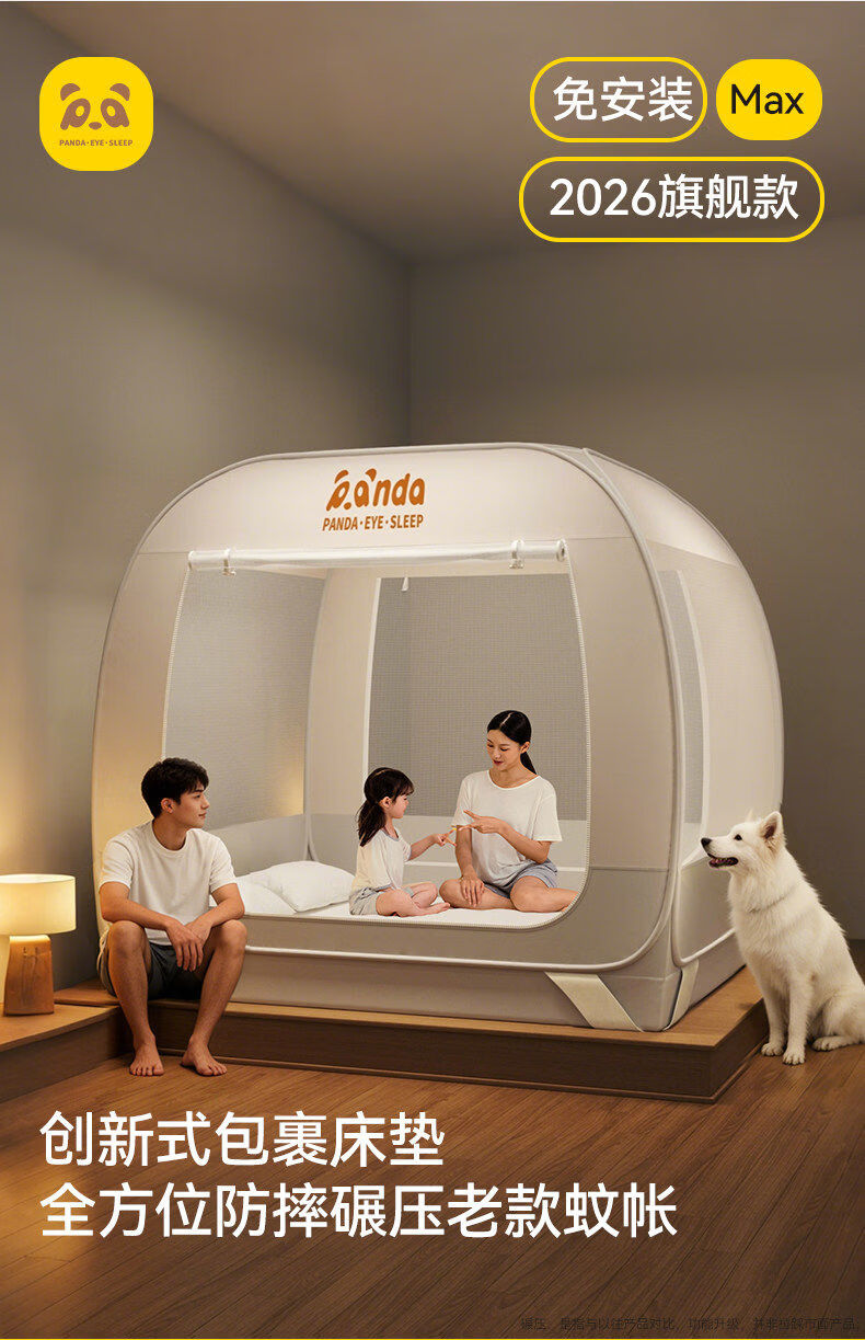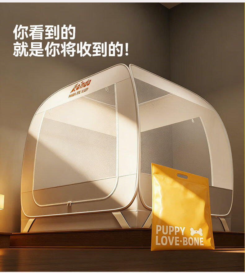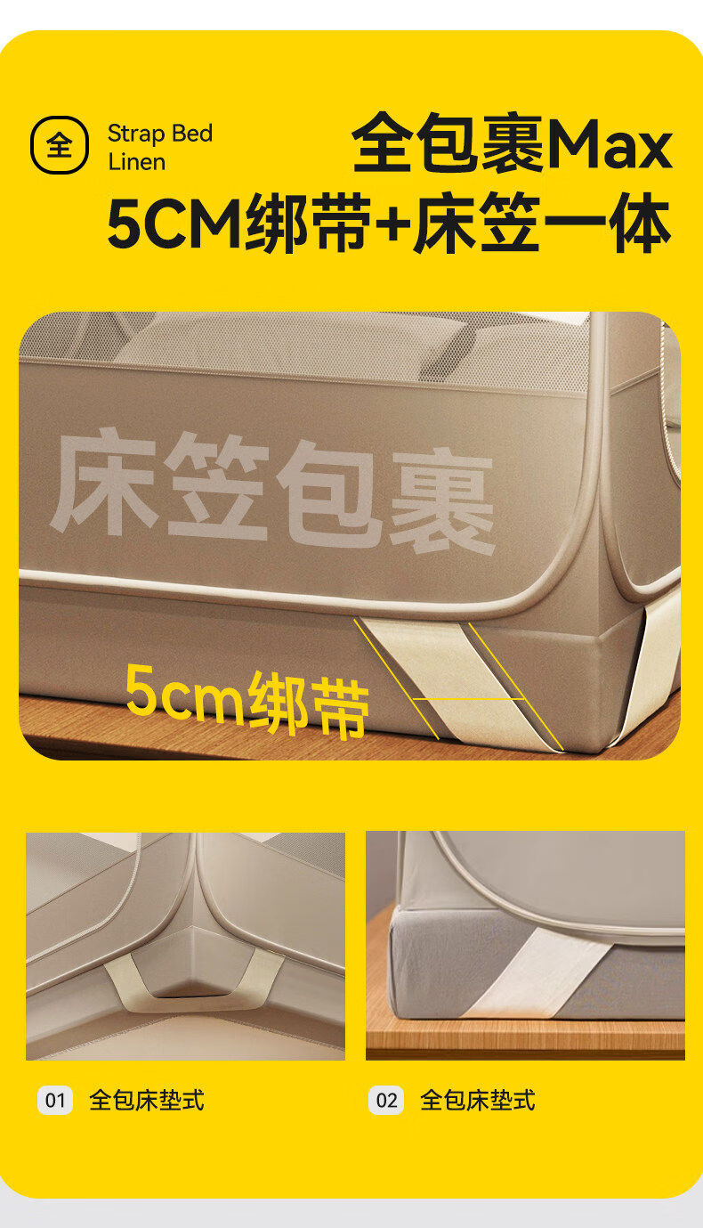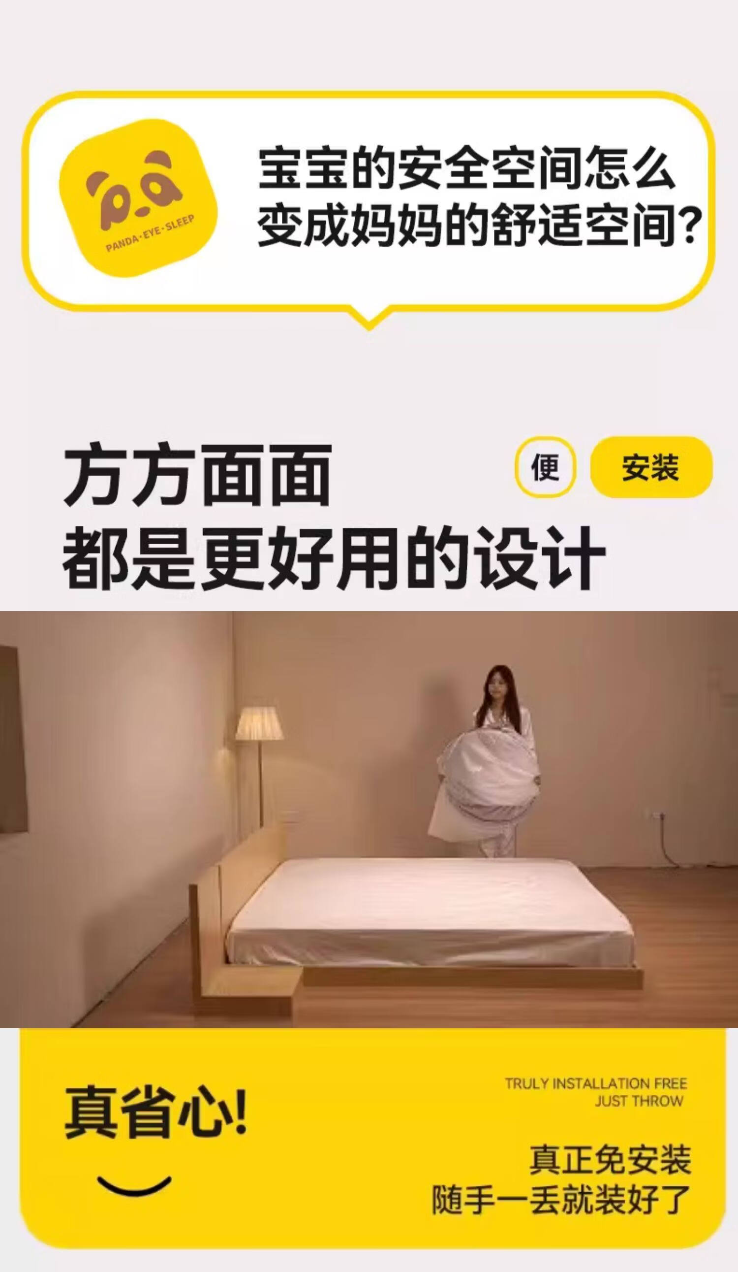 高睿防摔蚊帐免安装蒙古包婴儿防止掉床卧室家用新款全包儿童床上帐篷 【床笠款-绿熊猫】回底双门 宽1.2x长2.0x高1.7m【懒人免安装 3秒速装】