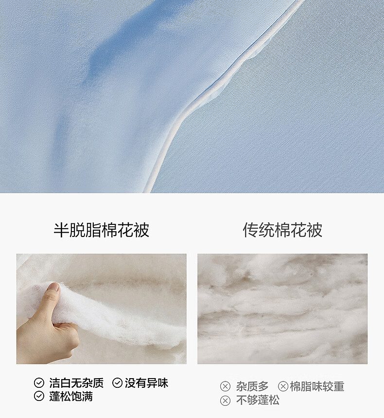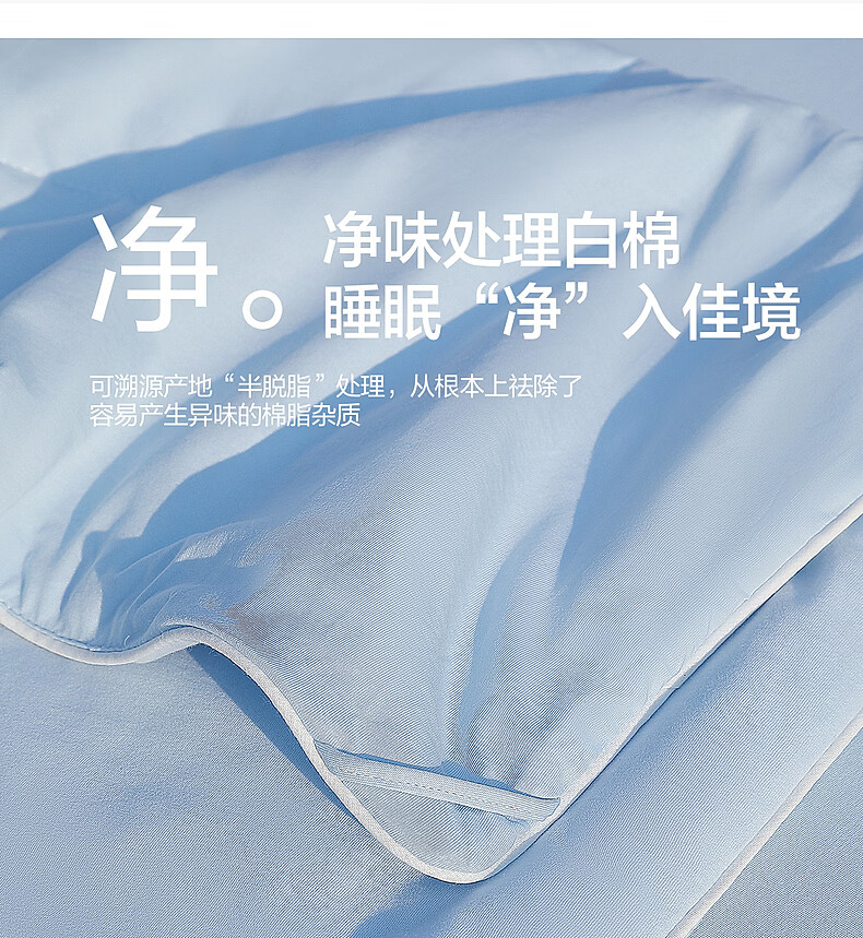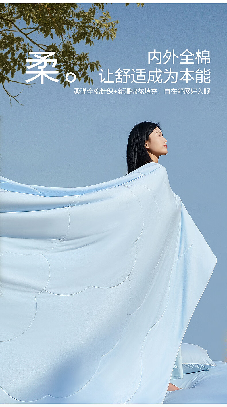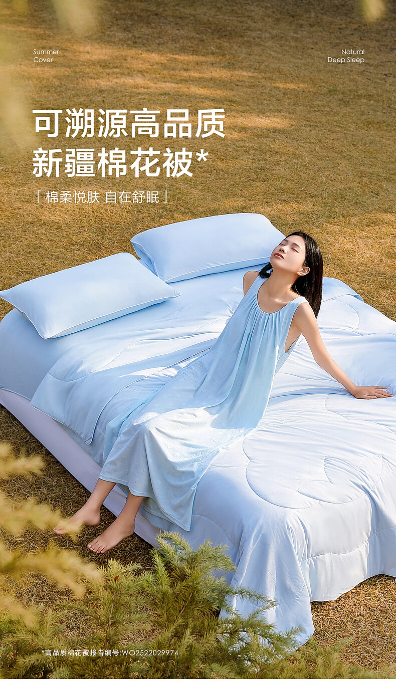 水星家纺棉被子夏凉被空调被棉花被子被芯纯棉A类新疆棉夏被 云栖可水洗棉花夏被(纯净蓝) 150cm*200cm