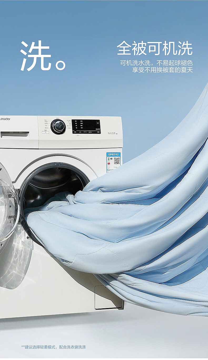 苏萱2026新款热卖水洗冰丝夏被四件套夏季夏凉被空调被可机水洗单双人 亚丁绿+冰川灰 单人夏被-150*200cm