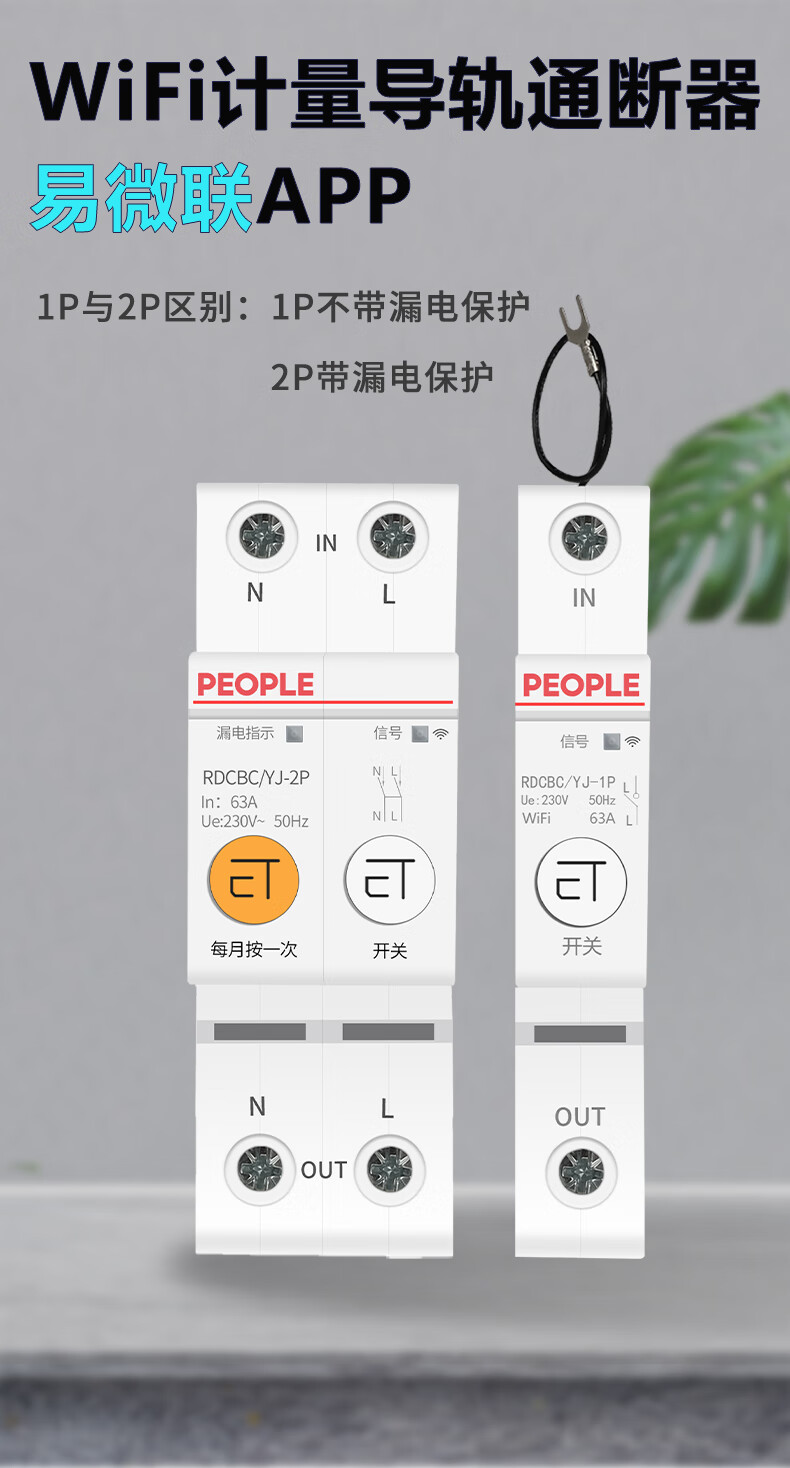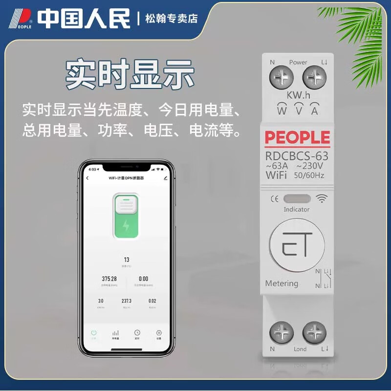 人民米家 易微联 涂鸦 wifi智能手机远程控制定时计量导轨式智能开关 RDCBCS-MJ-1P(米家带计量不带漏电)