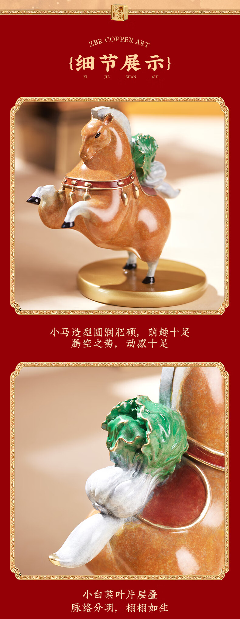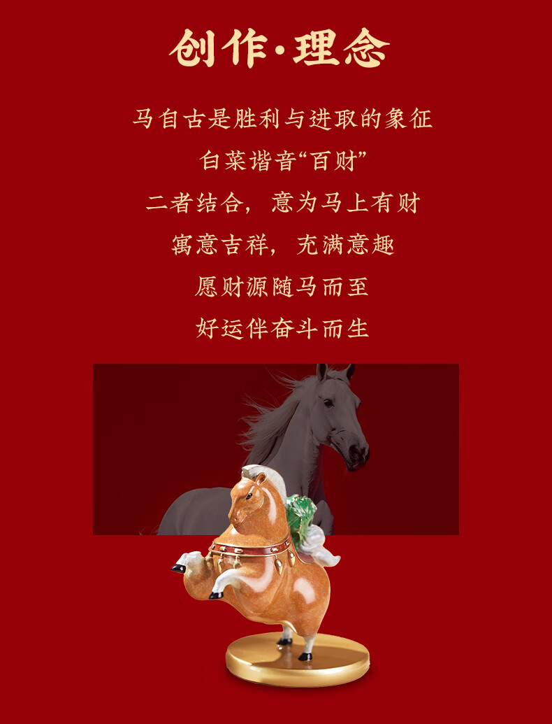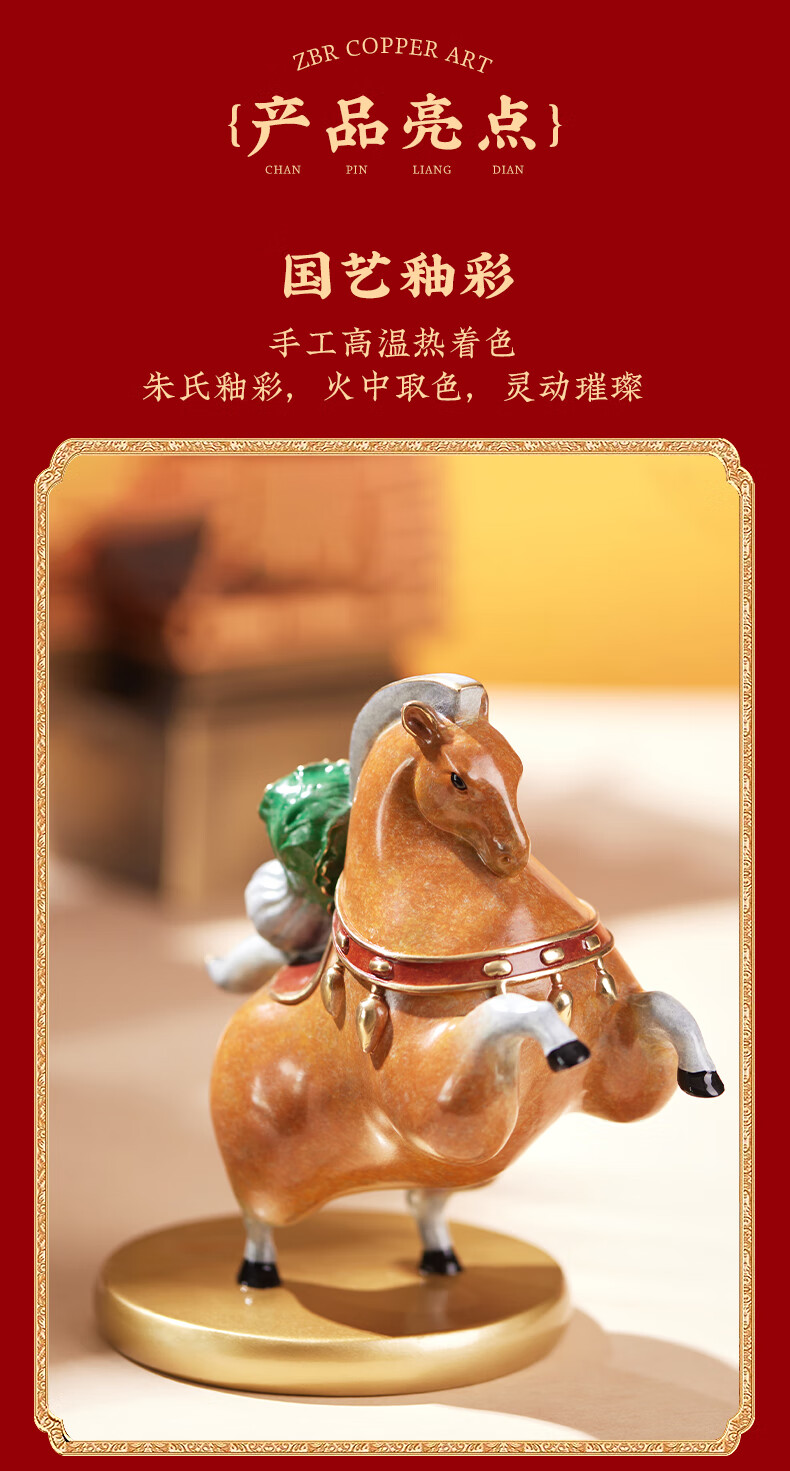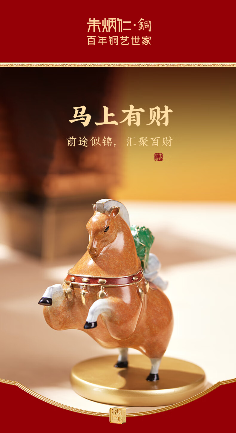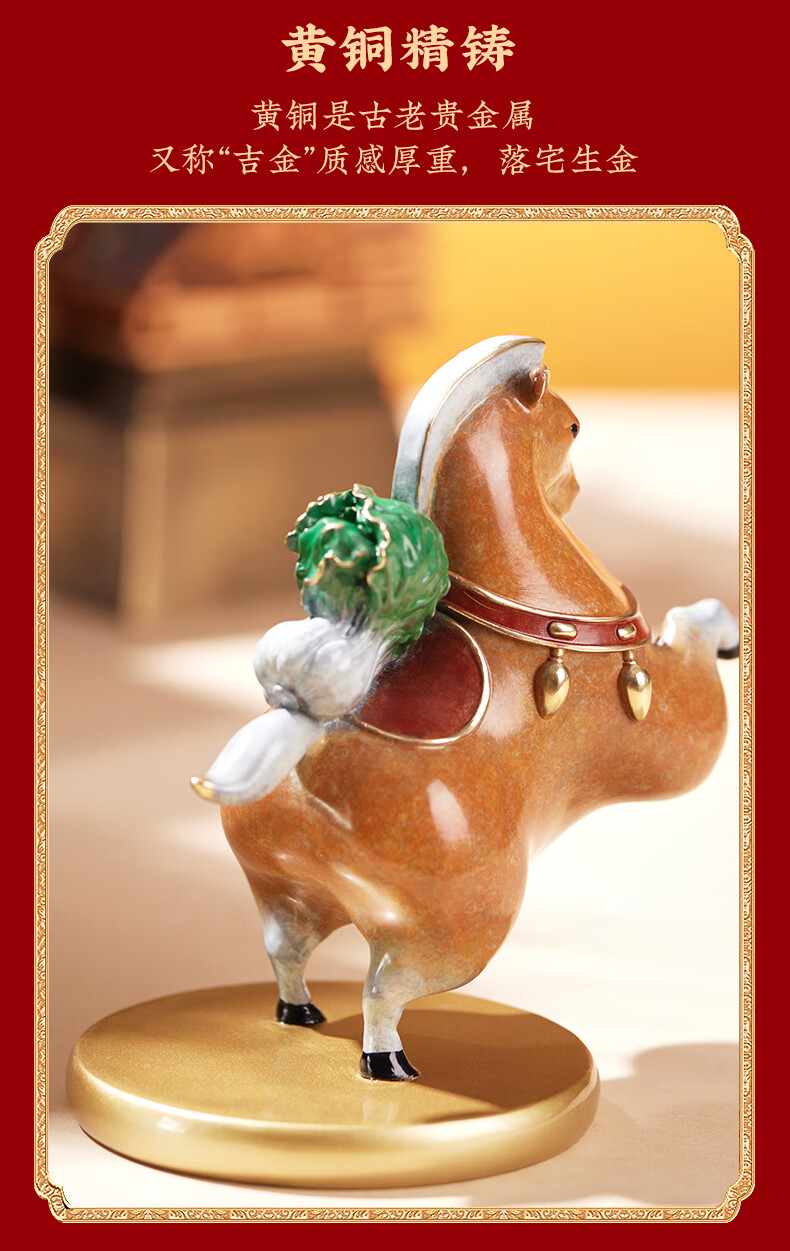 朱炳仁铜 马上有财 客厅书房办公桌白菜马桌面摆件铜工艺品艺术礼 马上有财