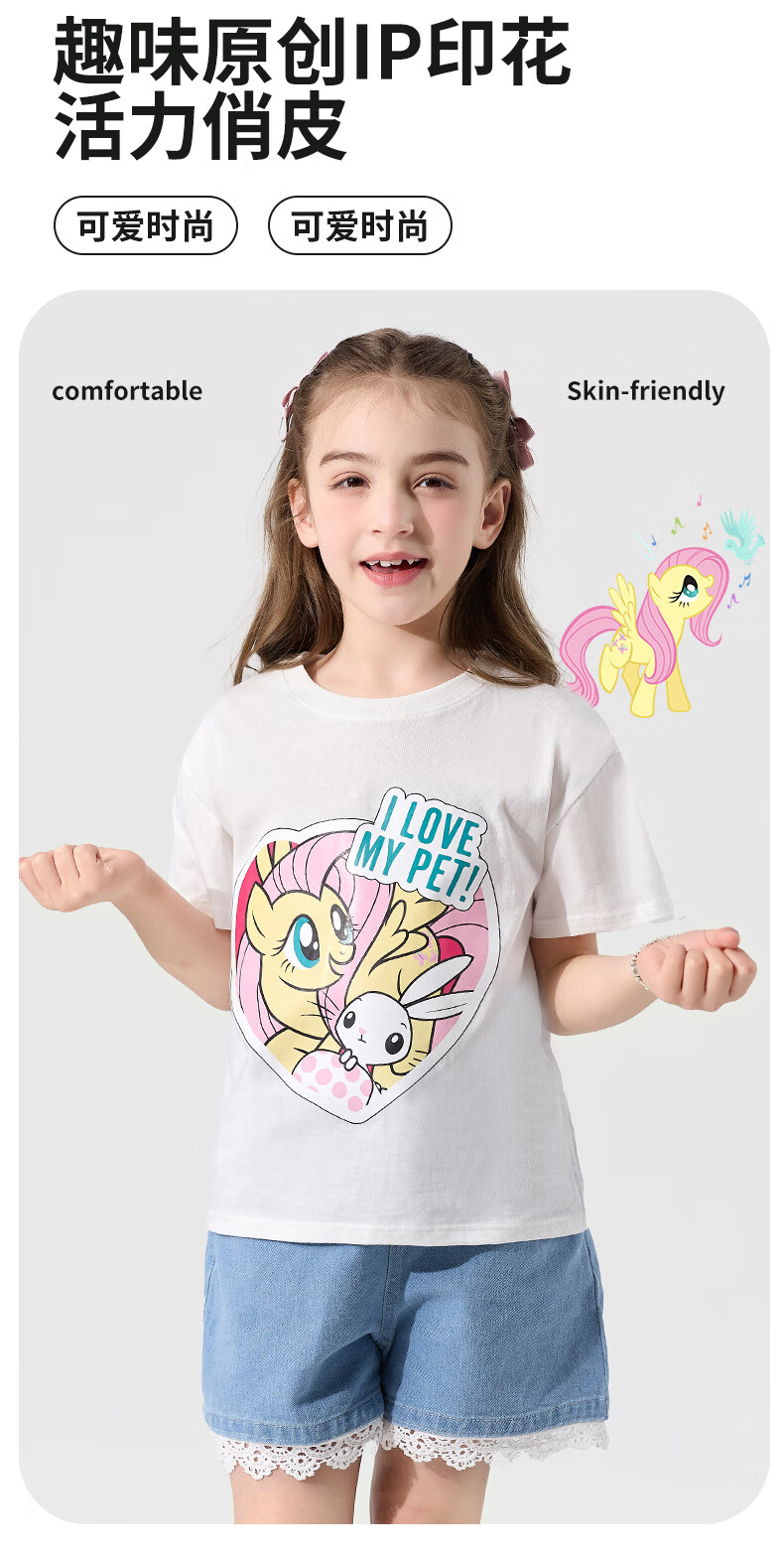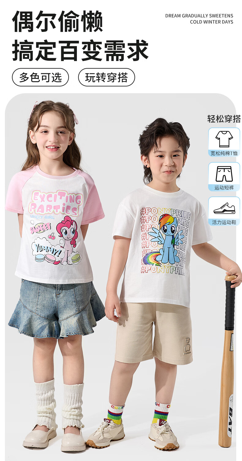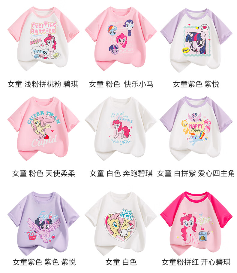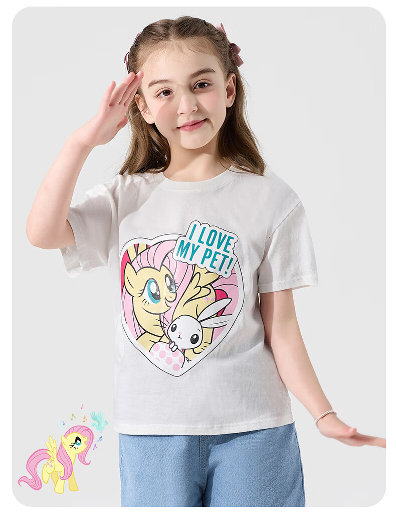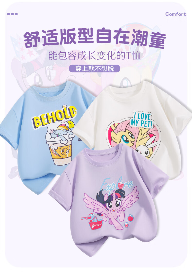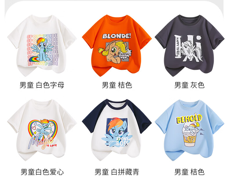 小马宝莉儿童男女童短袖T恤纯棉2026夏季新款大中童全棉潮上衣 男童白色爱心+白拼藏青+蓝色奶昔云宝 120 120(建议身高110-120体重37-45斤)