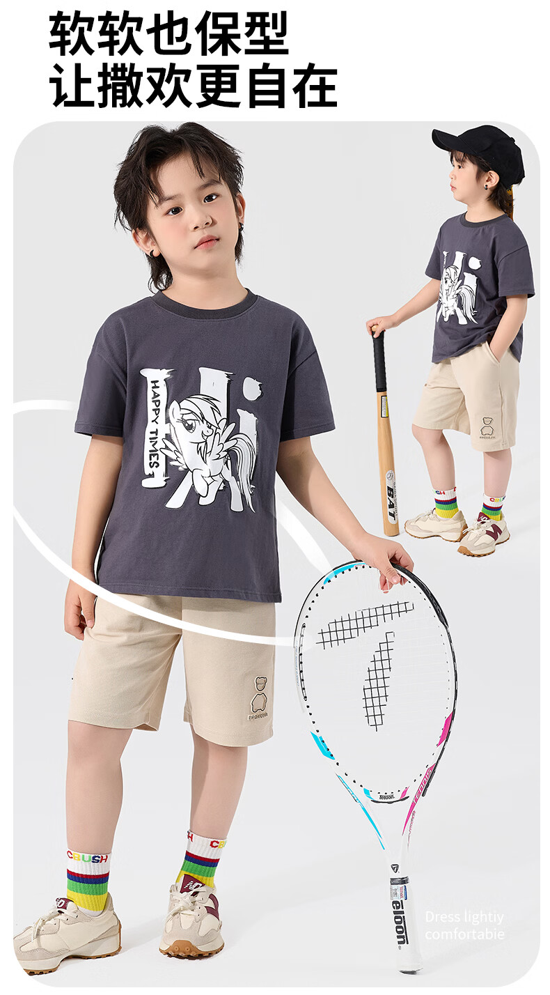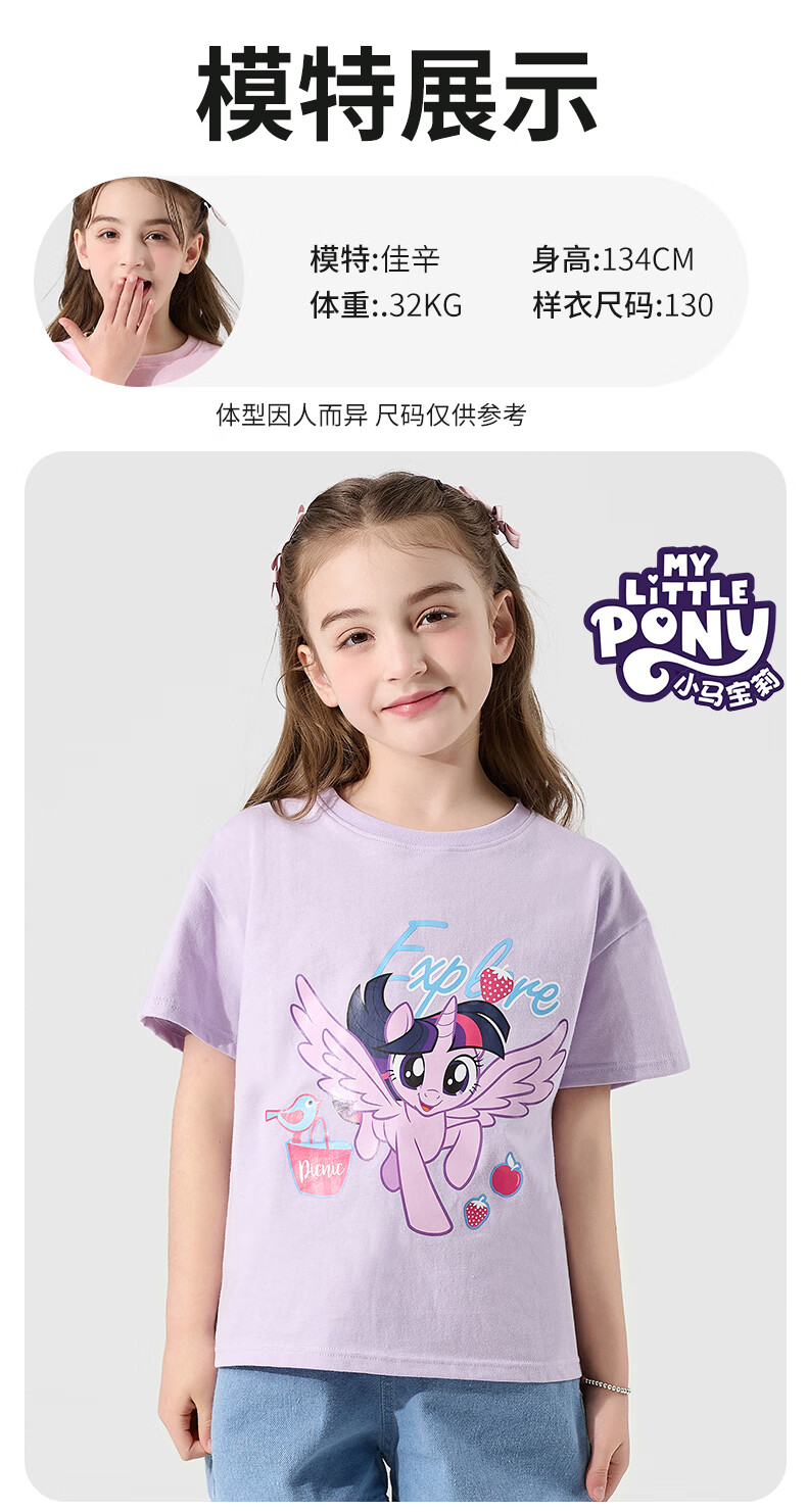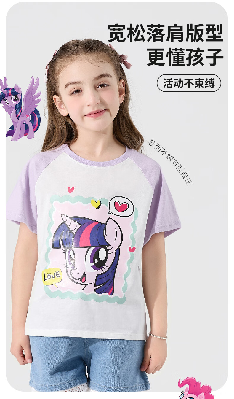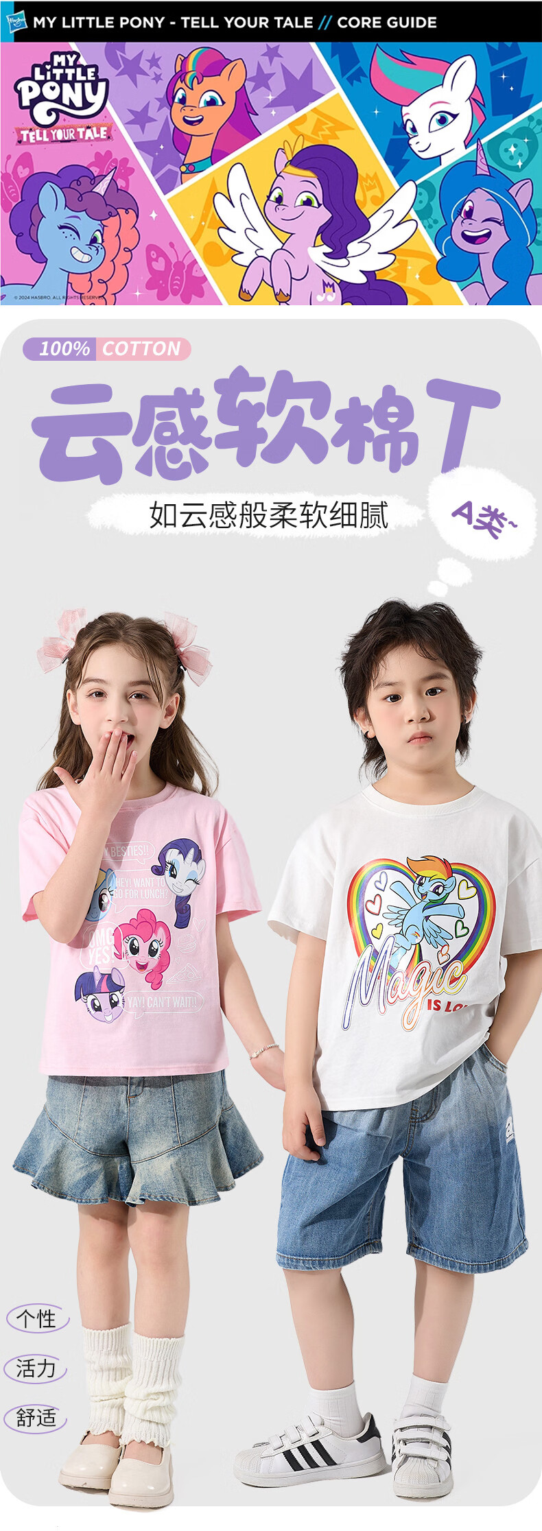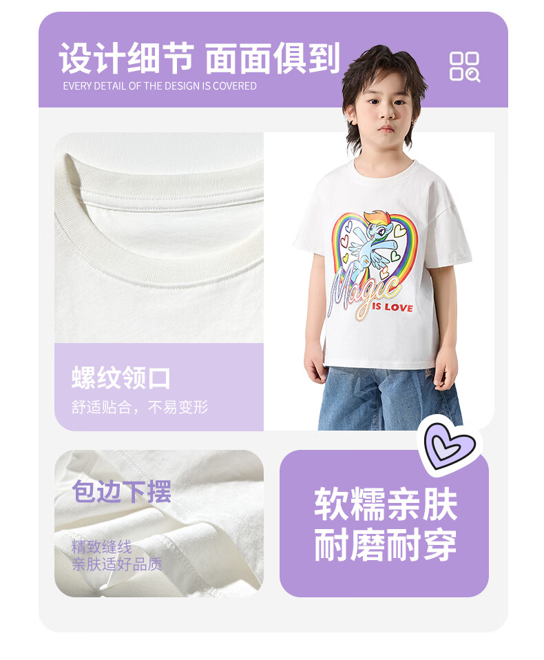 小马宝莉儿童男女童短袖T恤纯棉2026夏季新款大中童全棉潮上衣 男童白色爱心+白拼藏青+蓝色奶昔云宝 120 120(建议身高110-120体重37-45斤)