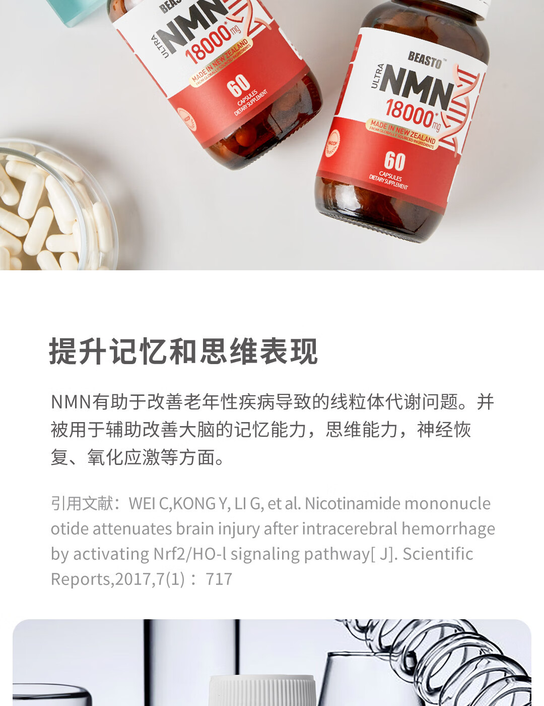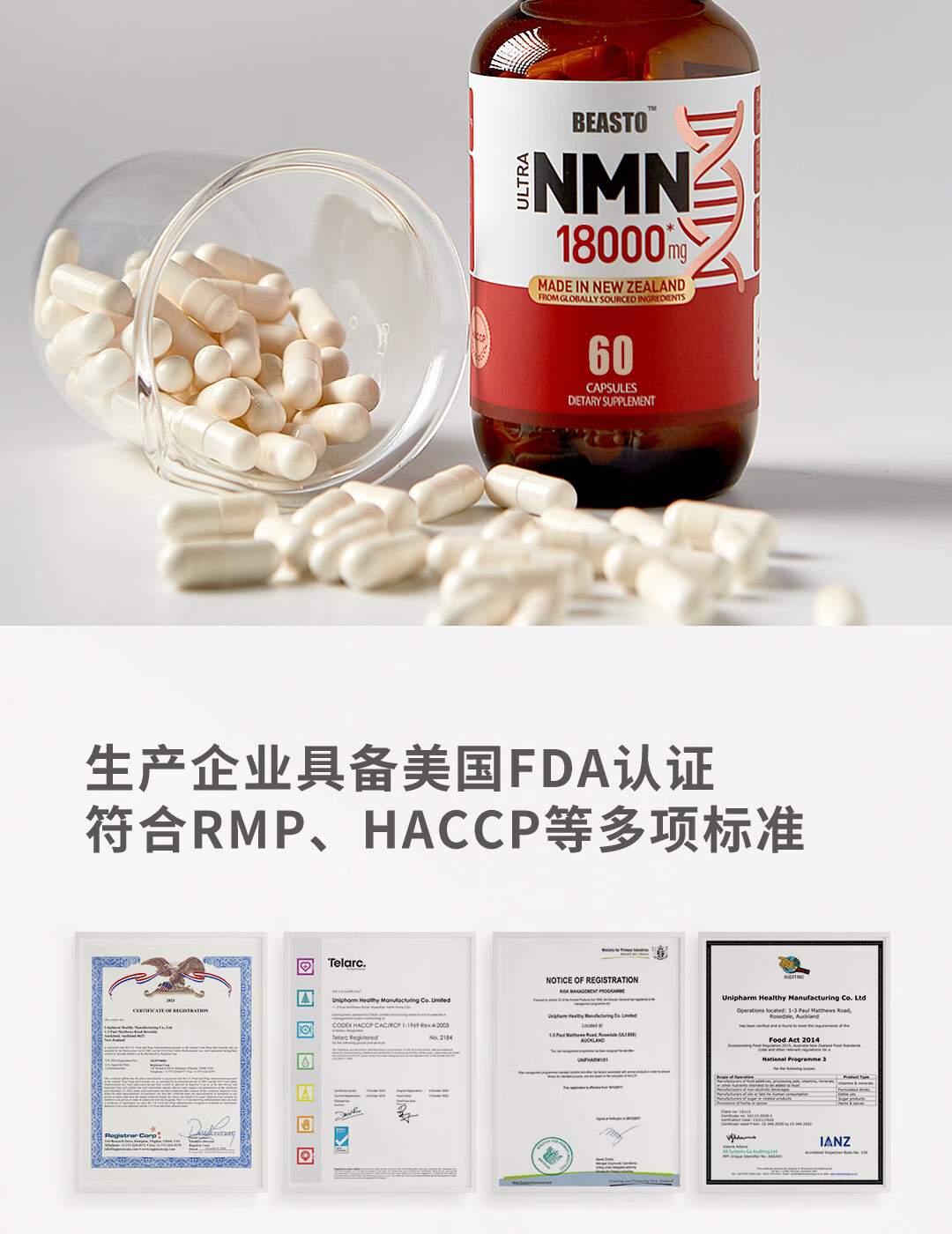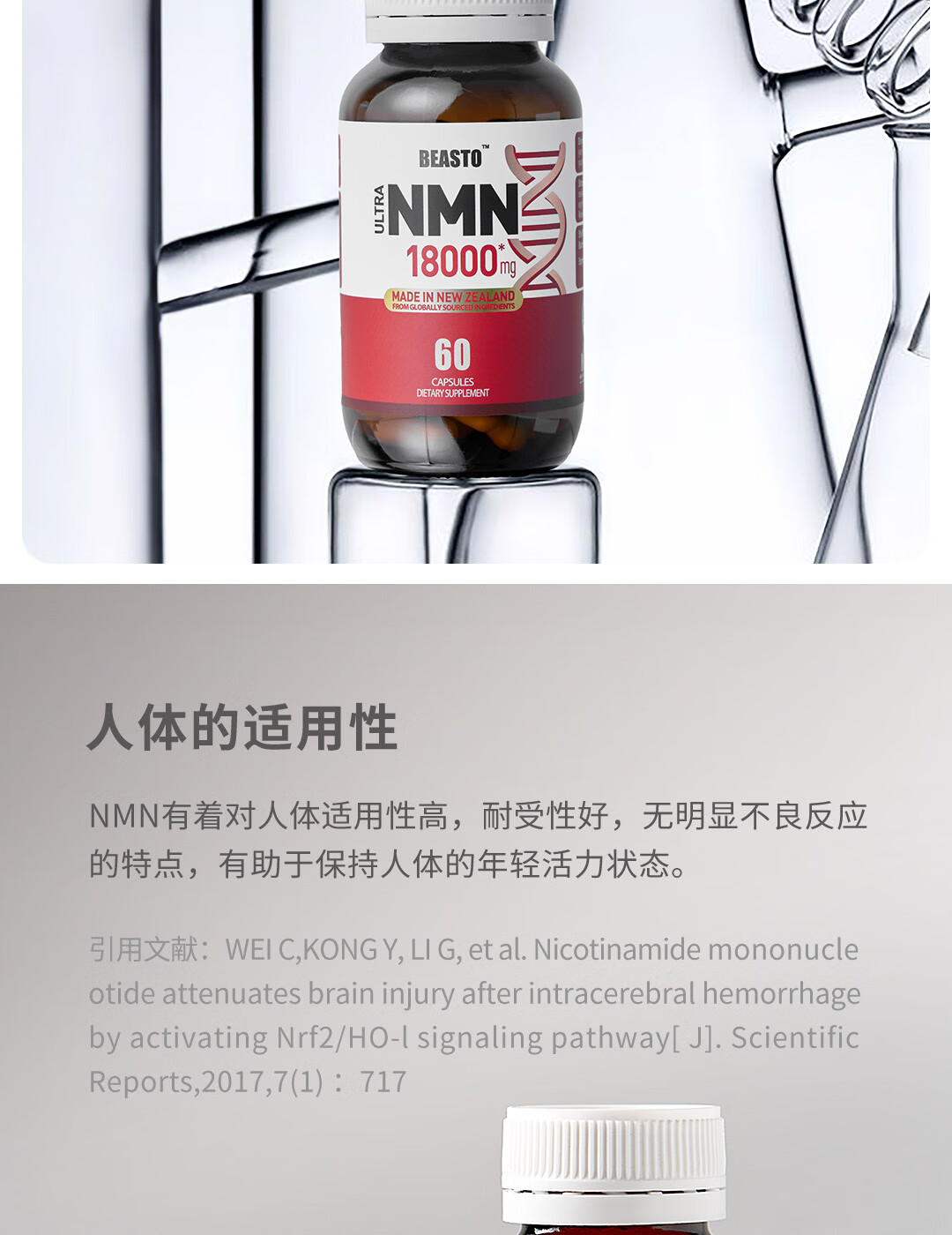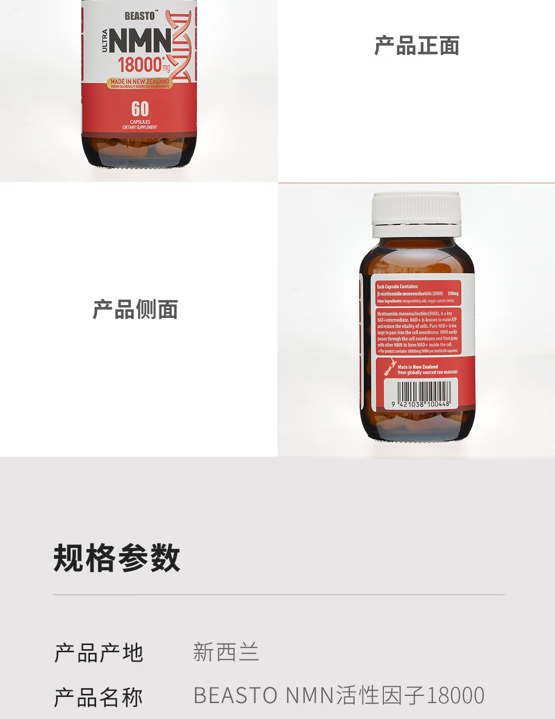 BEASTO原装进口NMN18000 β-烟酰胺单核苷酸 NAD+补充剂 60粒/瓶 nmn