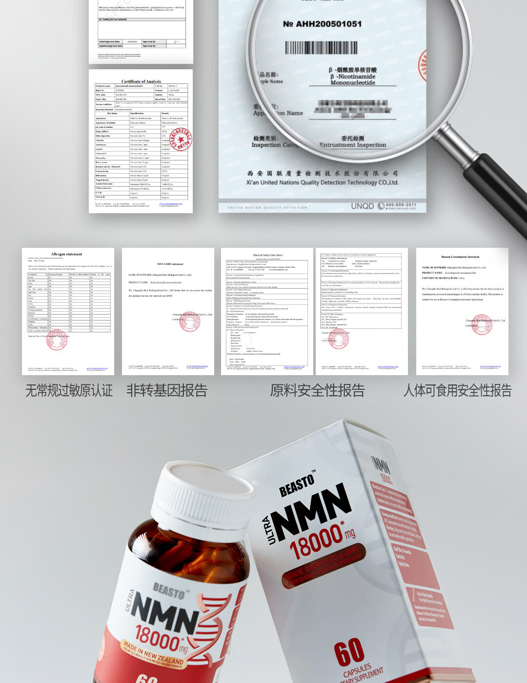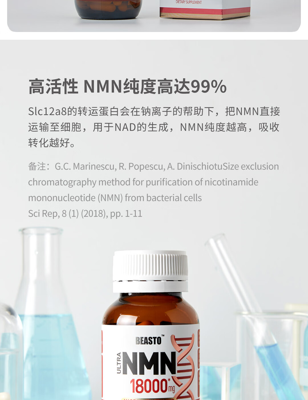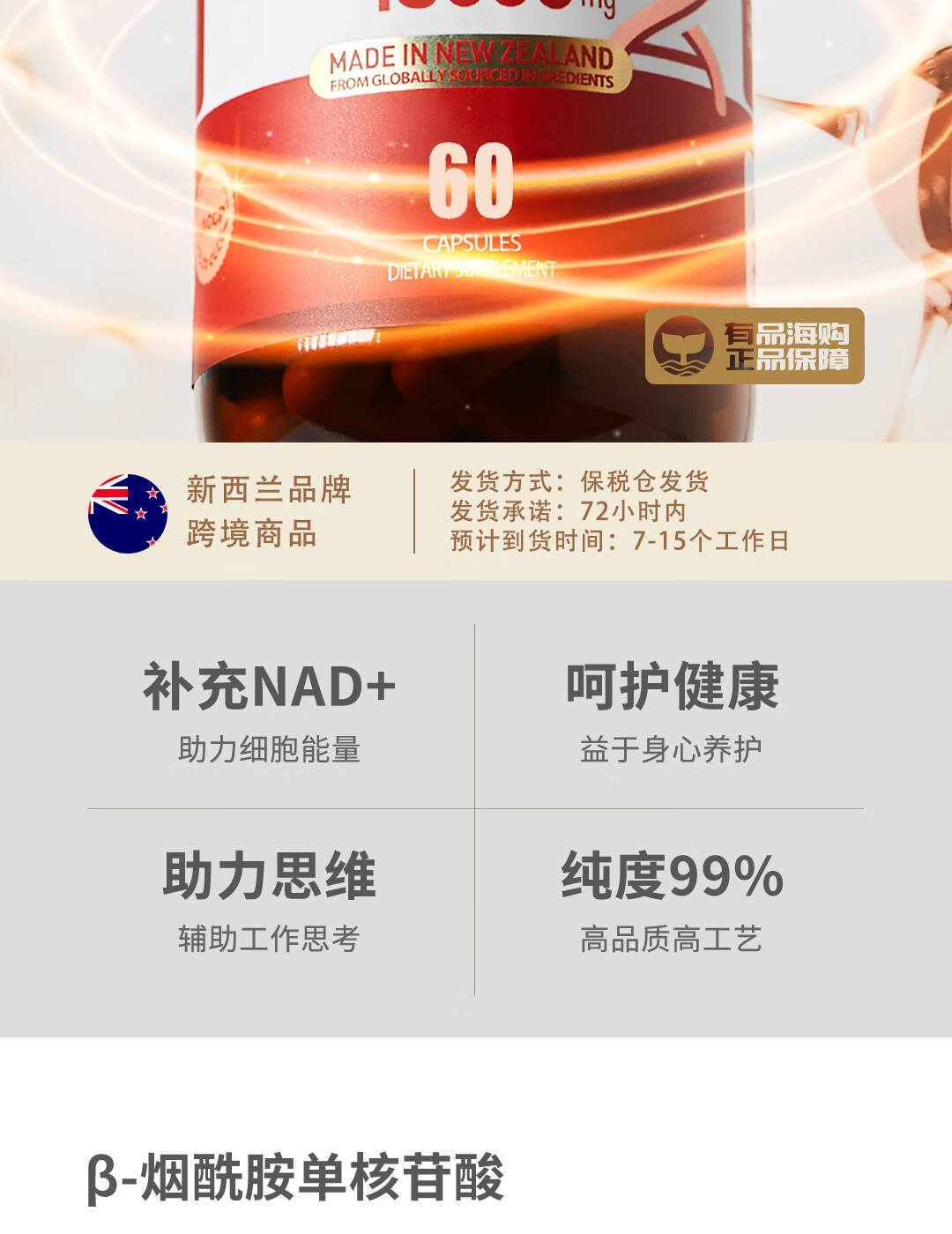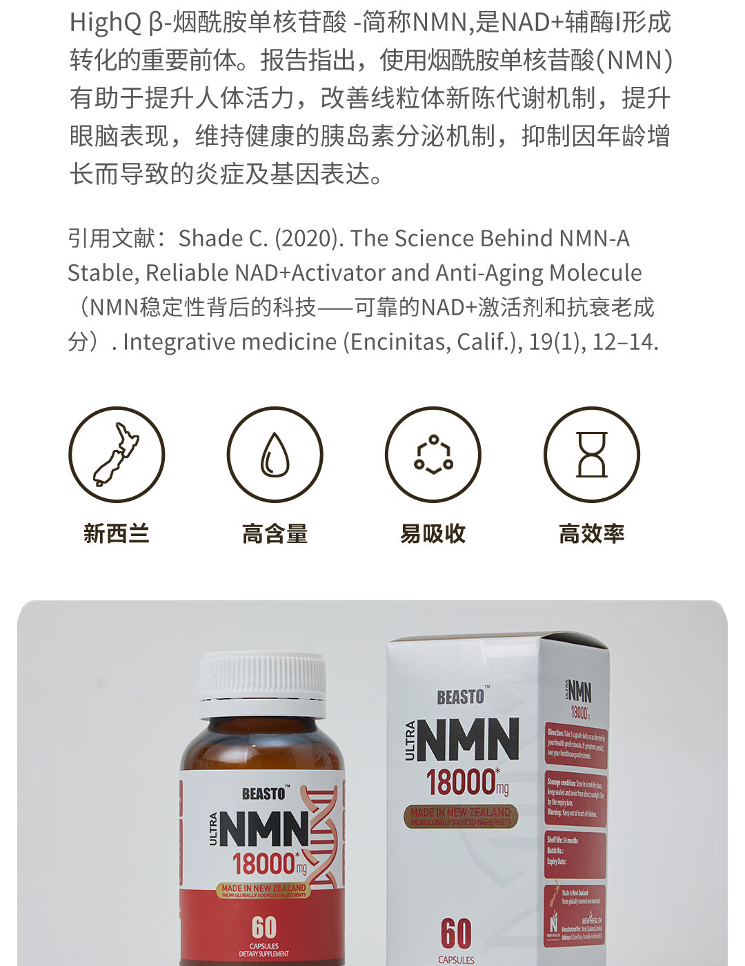 BEASTO原装进口NMN18000 β-烟酰胺单核苷酸 NAD+补充剂 60粒/瓶 nmn