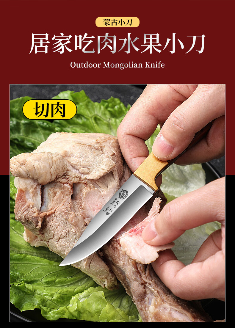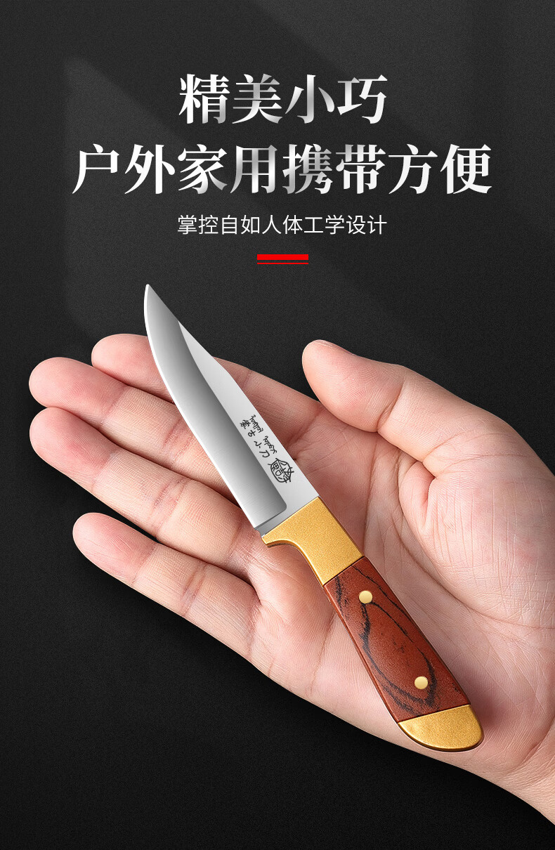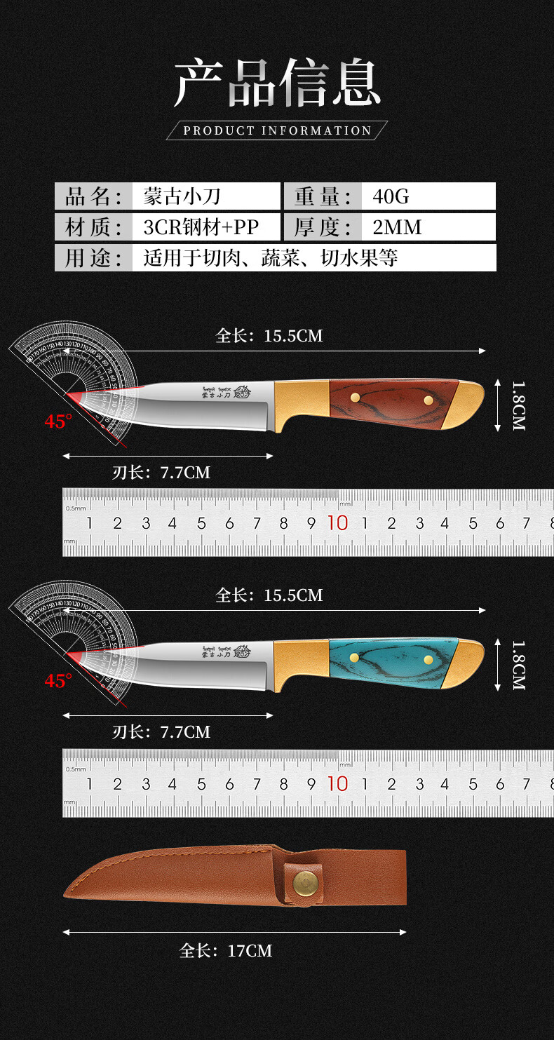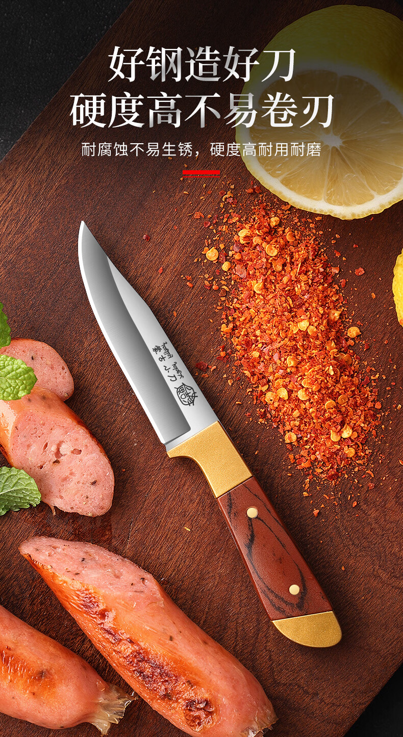 西铁匠德国迷你水果刀户外便携小刀家用削皮刀瓜果刀厨房锋利不锈钢小刀 【双铜红】蒙古小刀