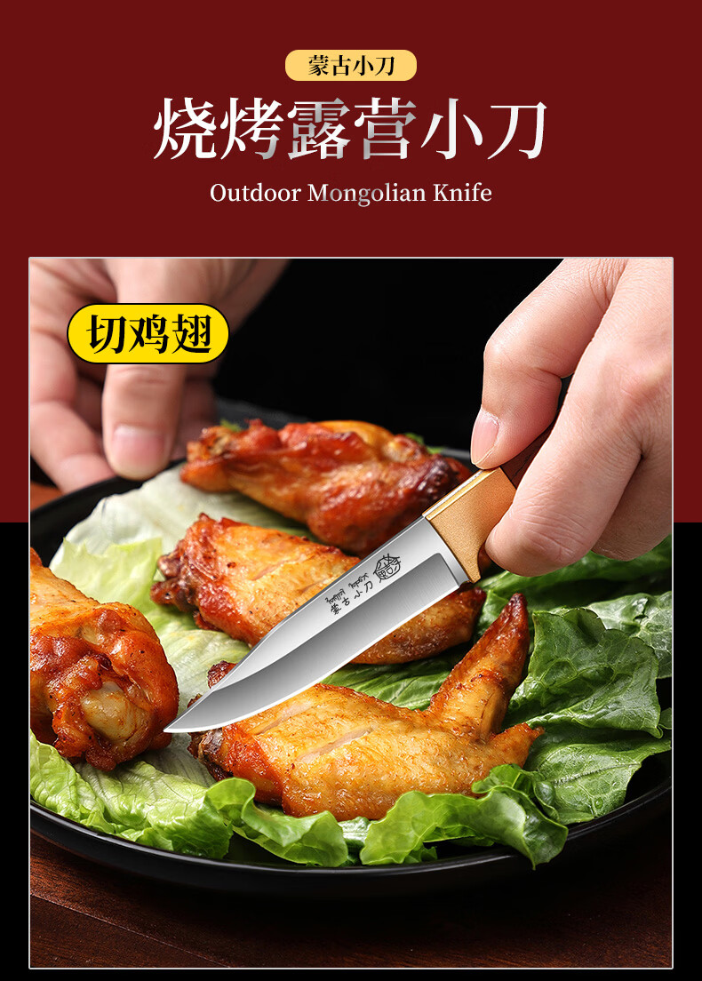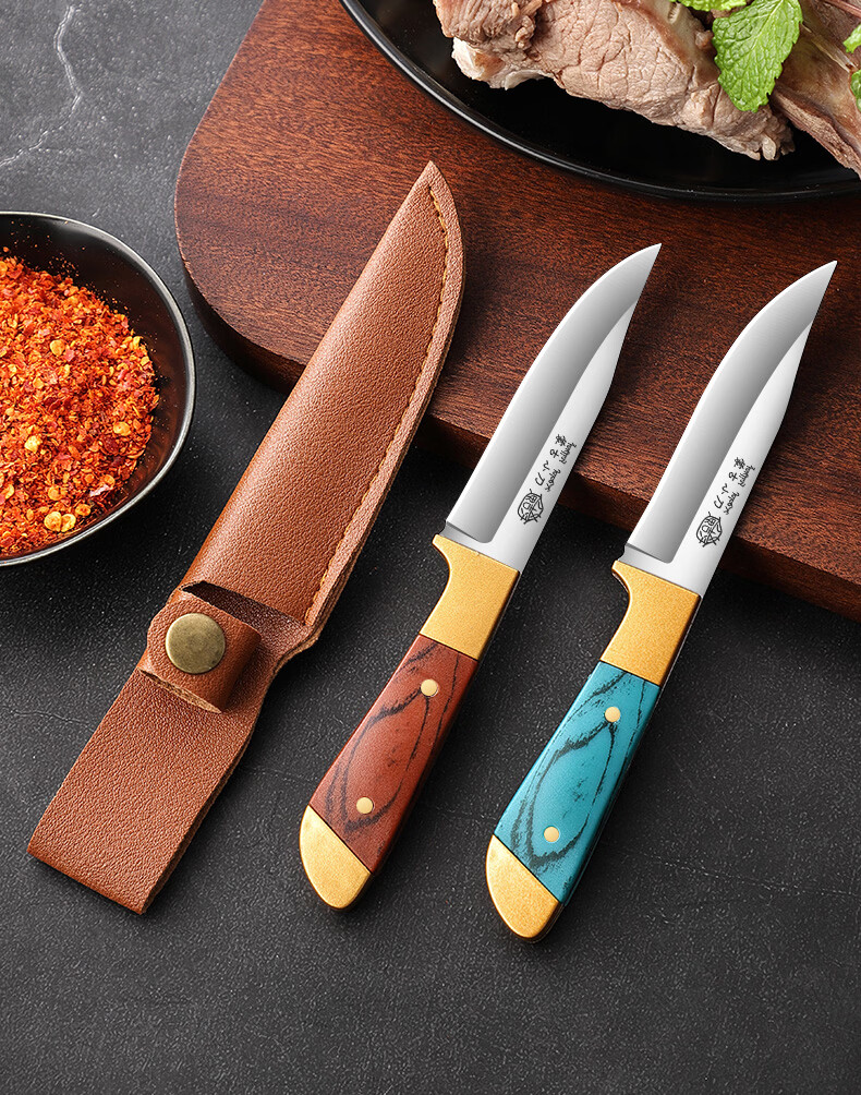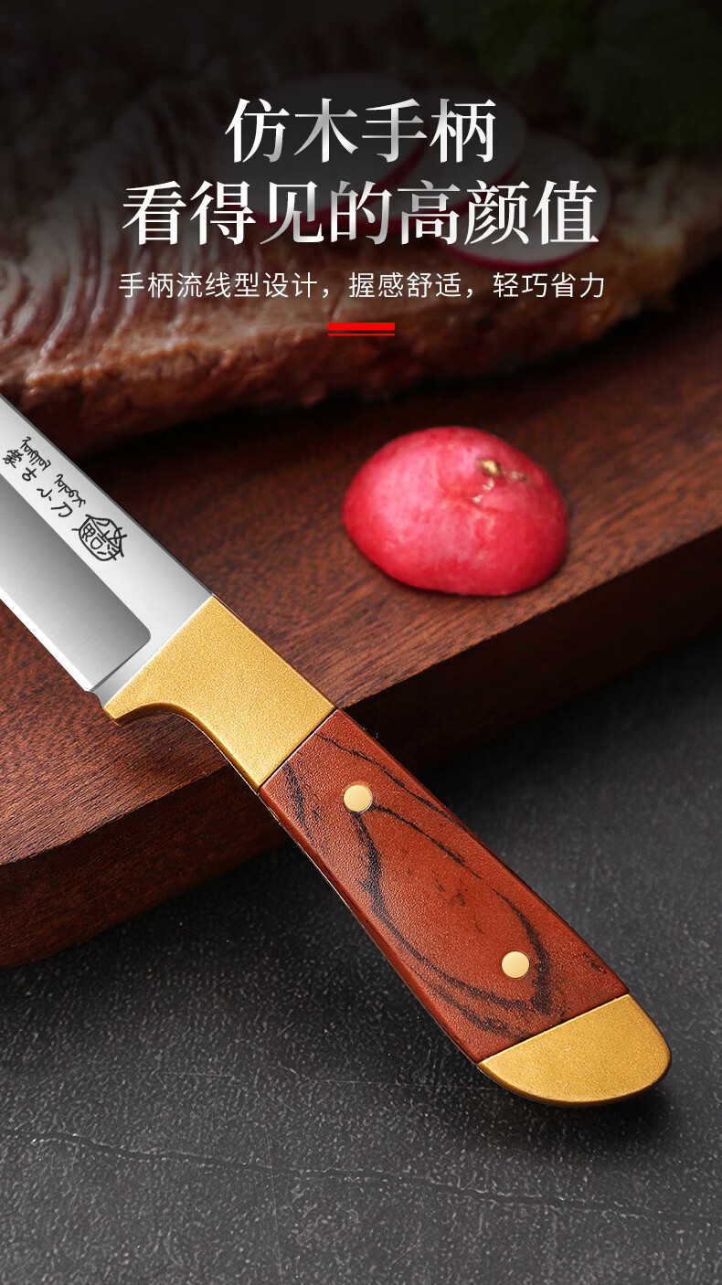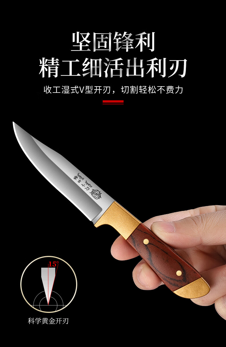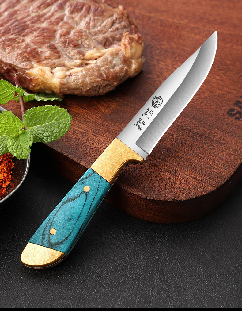 西铁匠德国迷你水果刀户外便携小刀家用削皮刀瓜果刀厨房锋利不锈钢小刀 【双铜红】蒙古小刀