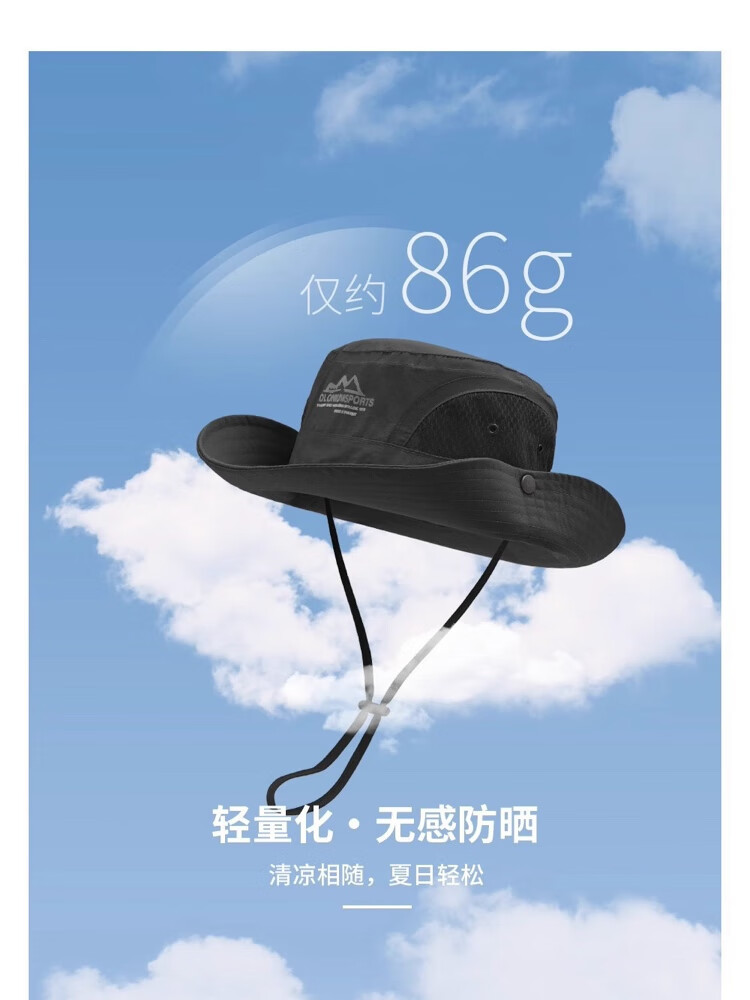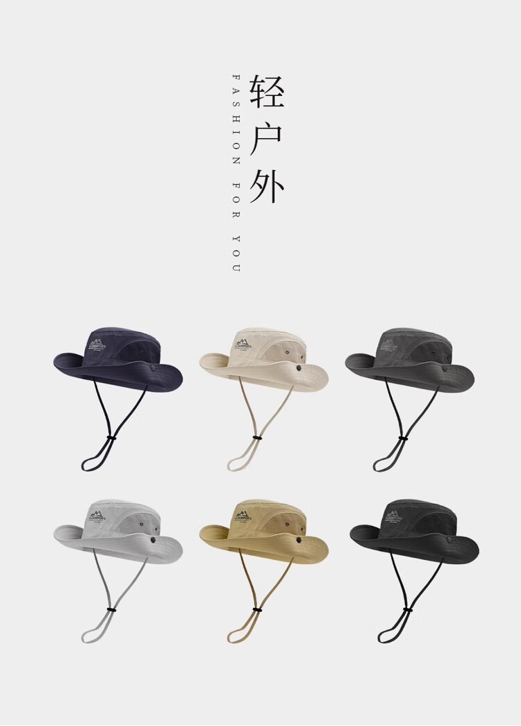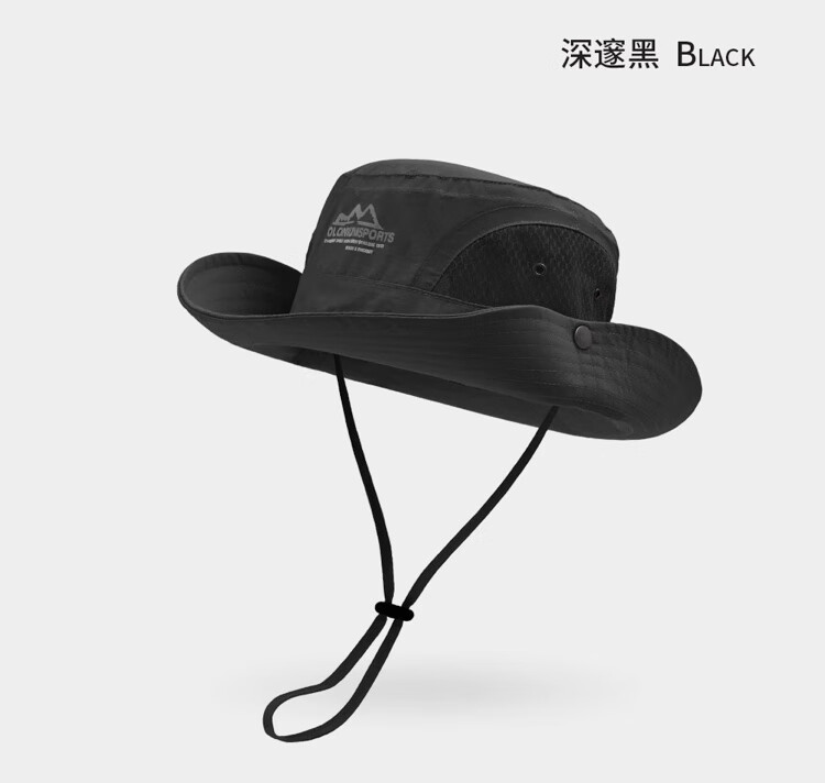户外遮阳帽男女通用防晒帽登山帽子透气渔夫帽防晒面罩防风帽 山峰-黑色 54-59CM