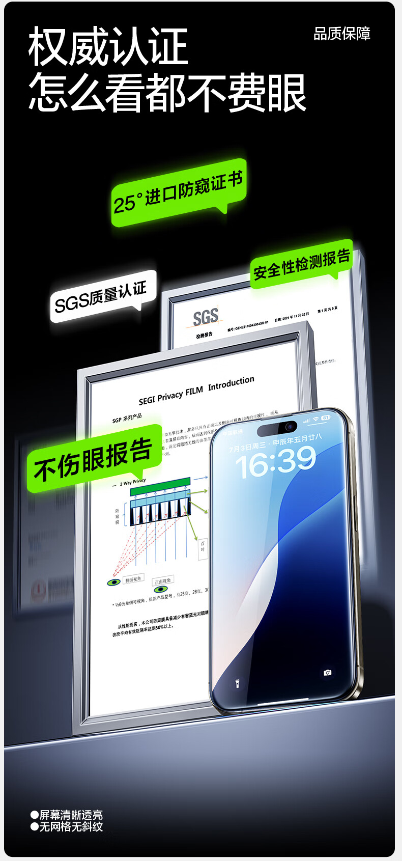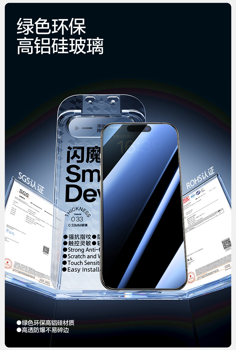 闪魔适用苹果17ProMax防偷窥钢化膜iPhone16Pro手机膜AIR无尘舱秒贴17pro防摔16plus防窥膜 1片升级防窥无边【超爽滑无指纹】送无尘仓+贴坏包赔 iPhone 17 Pro