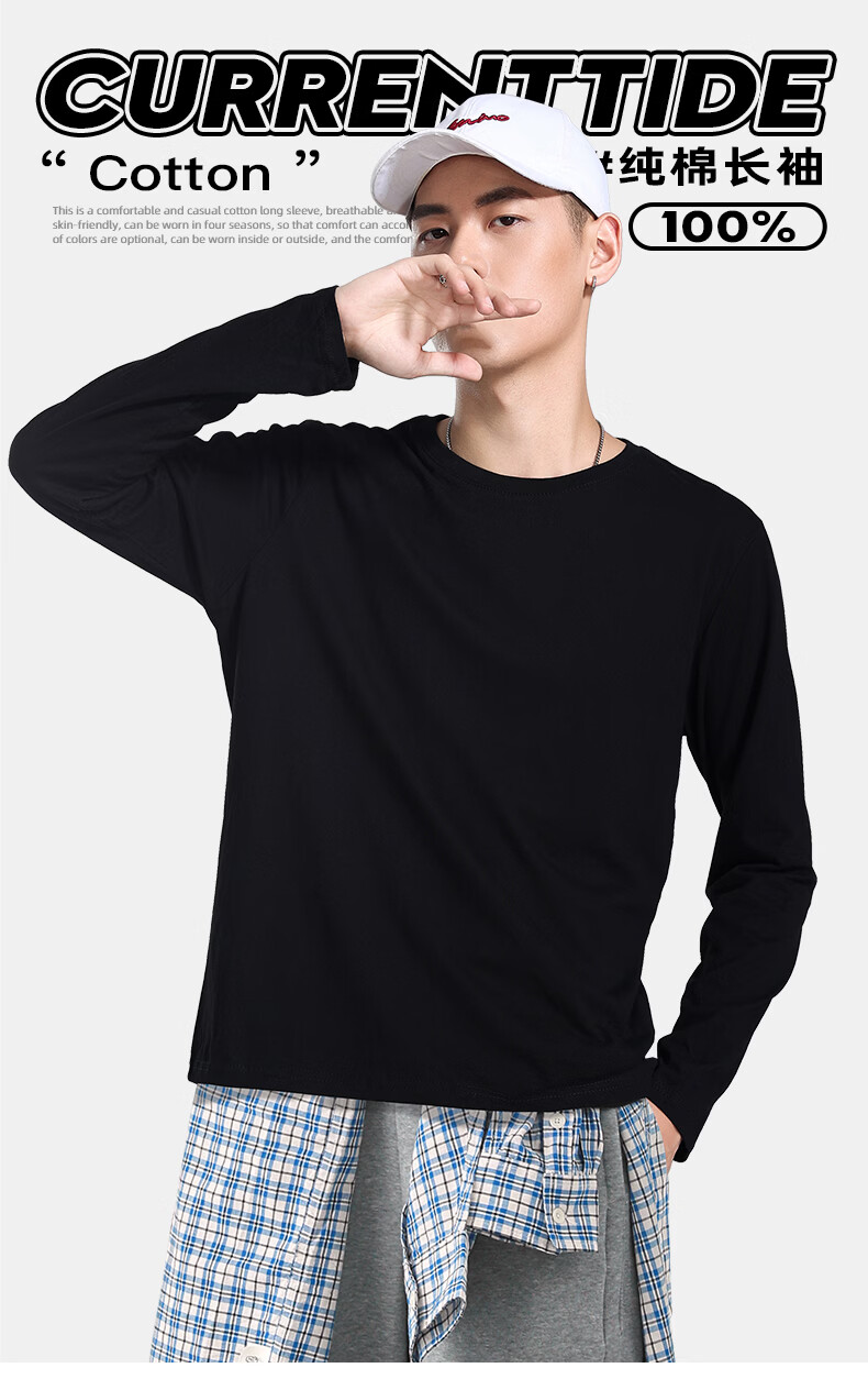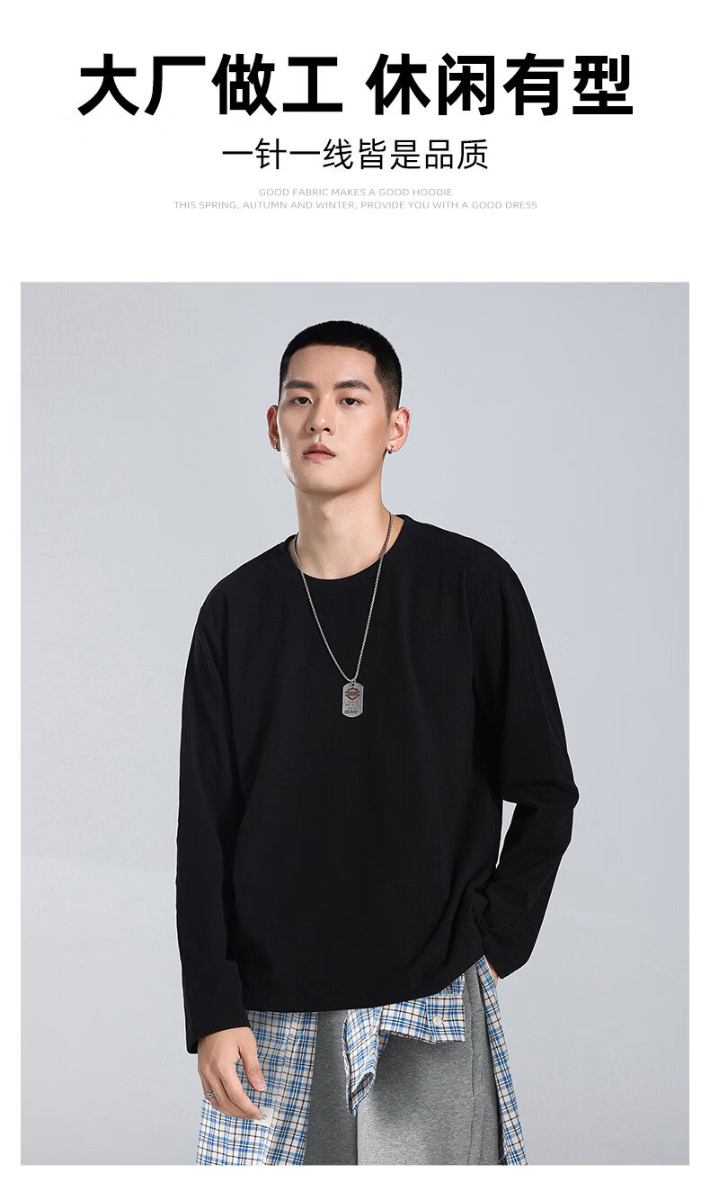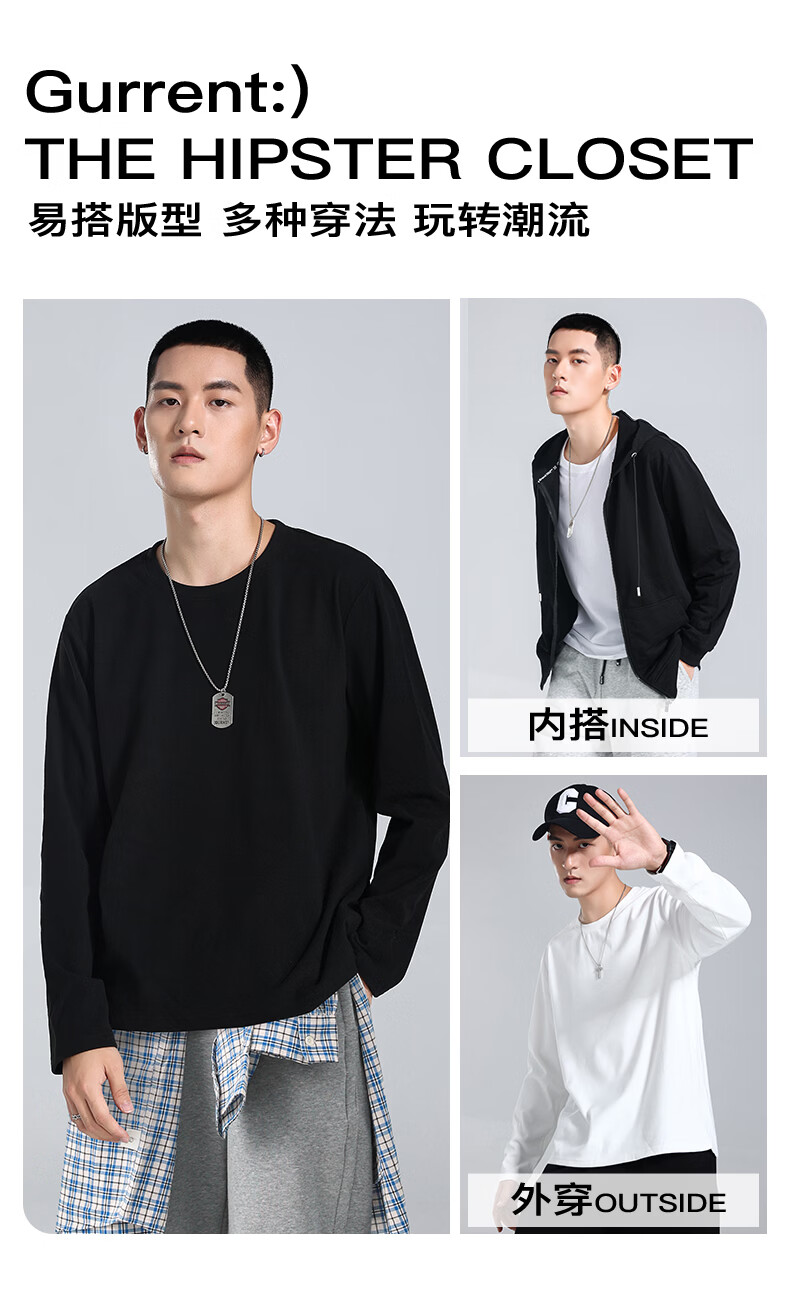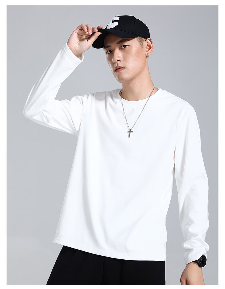 真维斯(Jeanswest)青少年长袖t恤男春夏季新款潮流百搭上衣重磅美式纯棉打底衫内搭 冰蓝 纯色 M