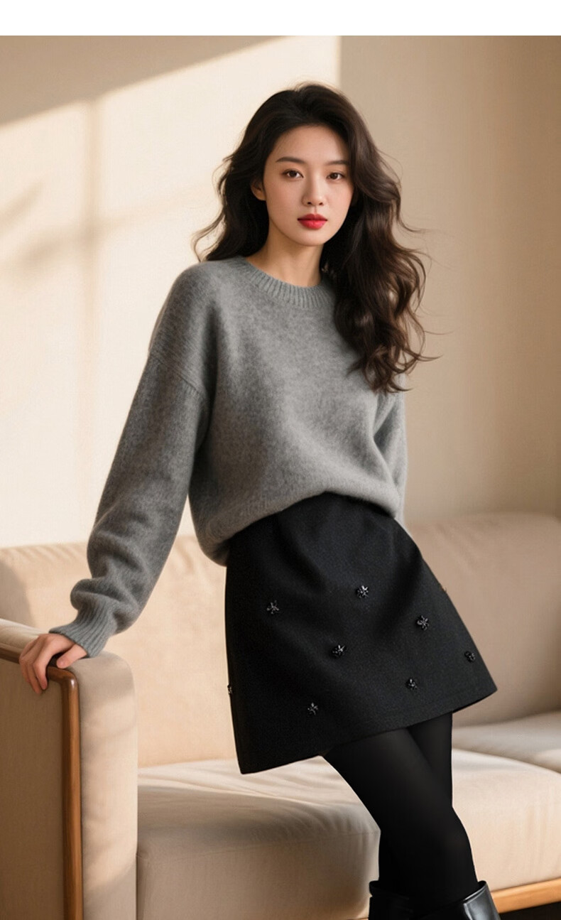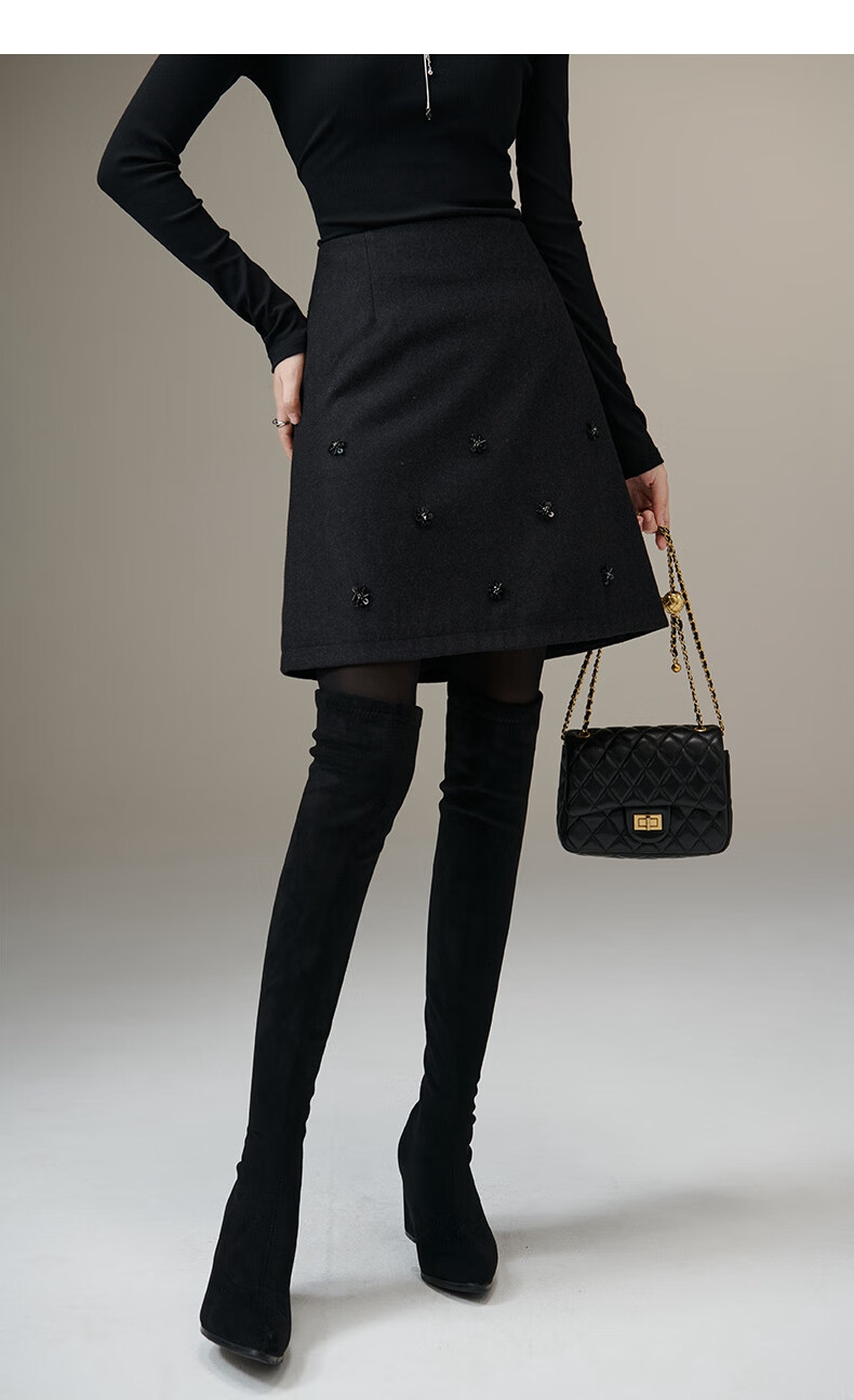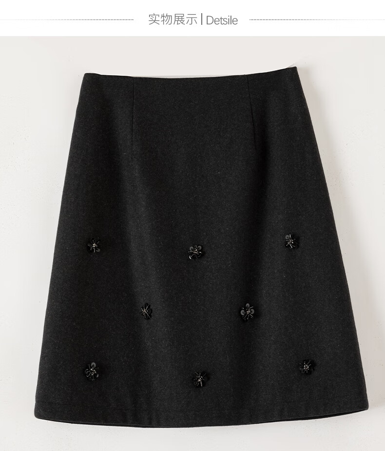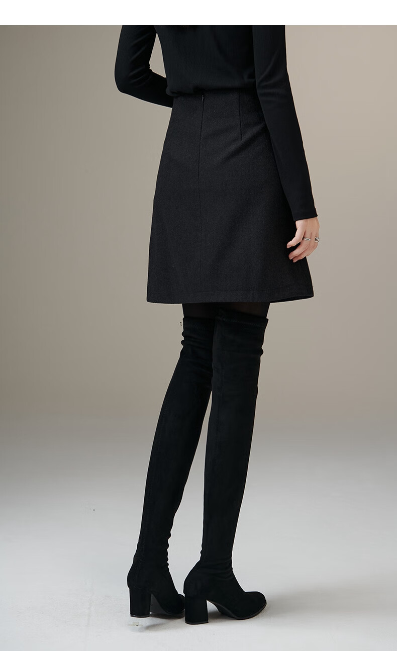 晚白【新品】小个子绵羊毛短裙冬款时尚气质百搭显瘦小a字半身裙 深灰色 L