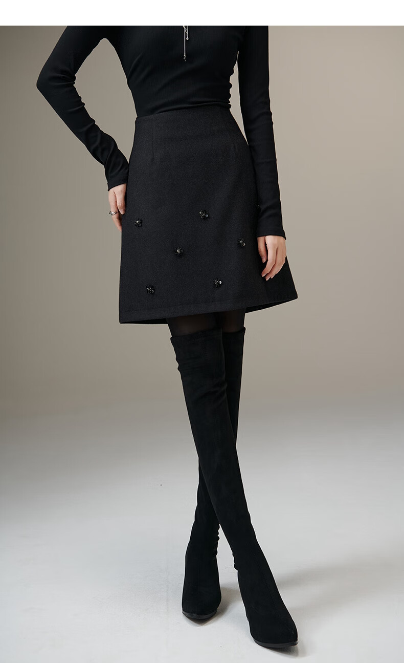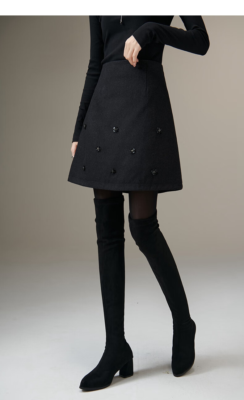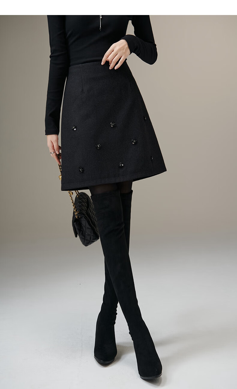 晚白【新品】小个子绵羊毛短裙冬款时尚气质百搭显瘦小a字半身裙 深灰色 L