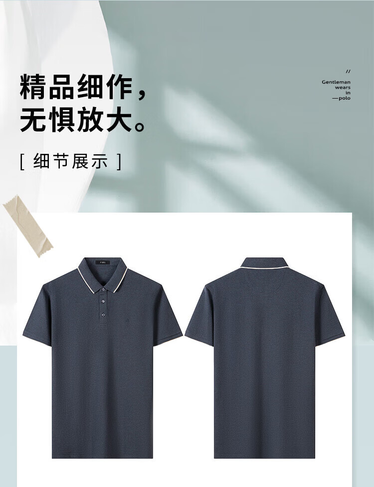 杉杉(FIRS)纯棉短袖polo衫男夏季商务休闲体恤舒适亲肤透气刺绣中年方领上衣 藏青 M (170/88A)