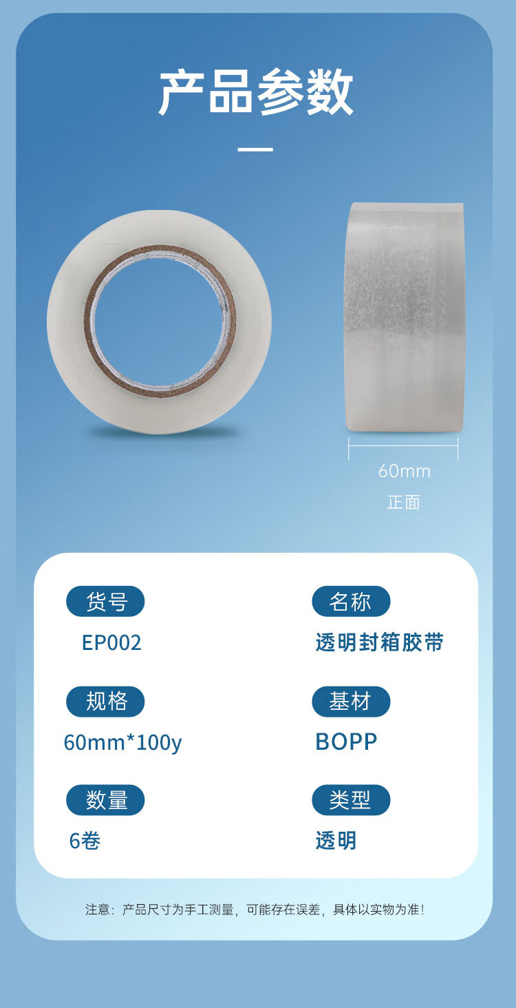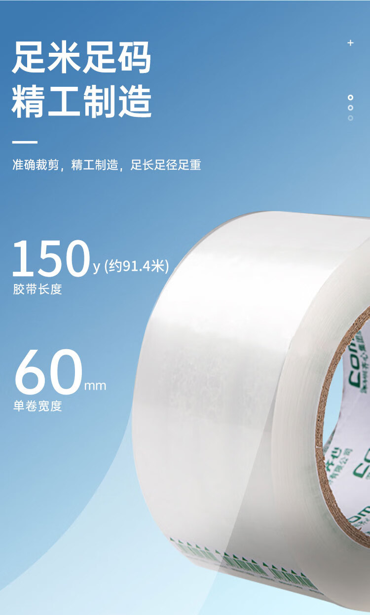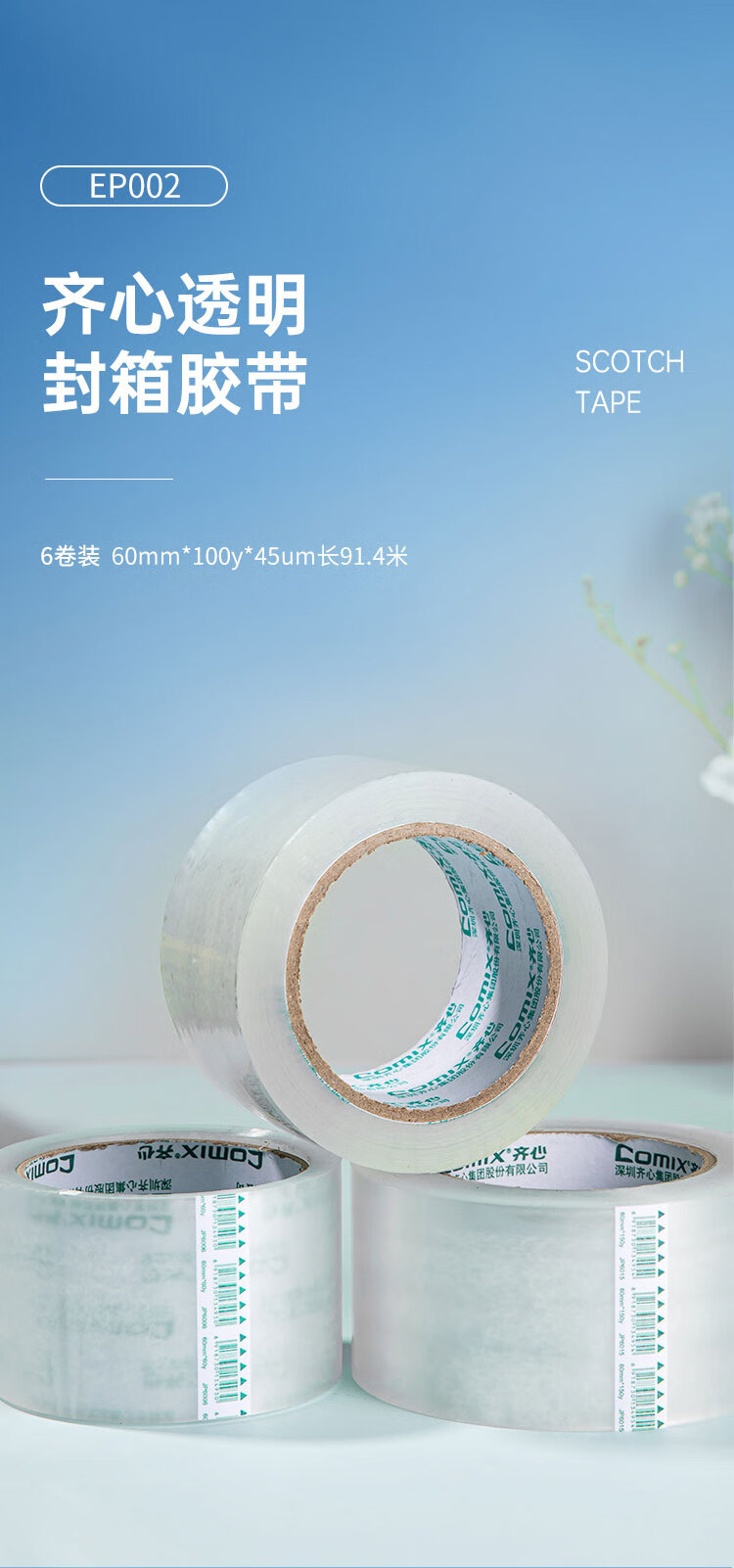 齐心(COMIX)【超级爆款】透明胶带/宽胶带/封箱胶带/快递打包胶带透明 宽60mm*100y*45um长91.4米 6卷/筒EP002