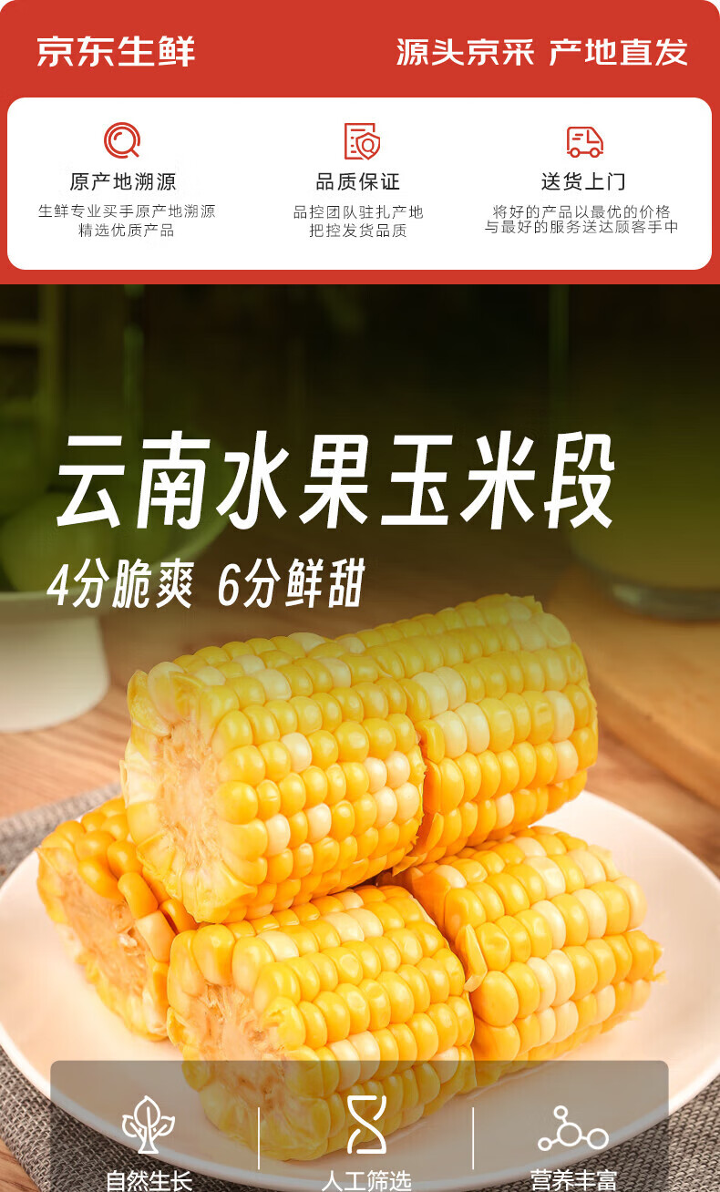 【东东买菜】云南新鲜水果玉米爆汁甜玉米生吃早餐生鲜超市蔬菜 新鲜水果玉米4.5斤 净重 单根300克起 好吃不贵-甜如初恋