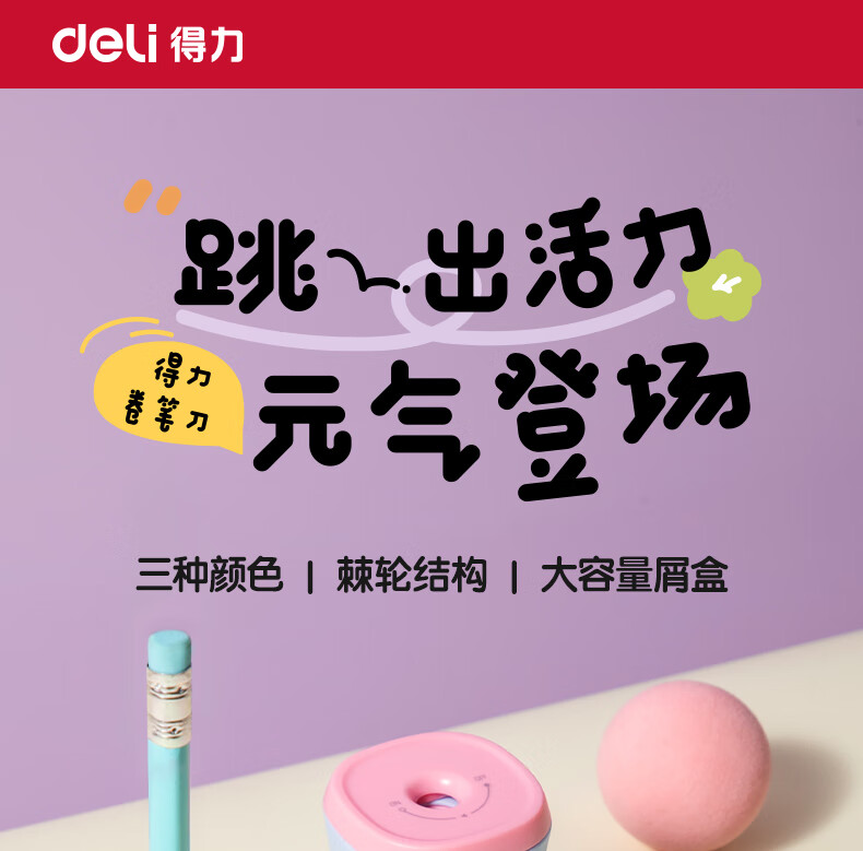 得力(deli)棘轮结构卷笔刀 旋转削笔刀学生幼儿园便携型转笔旋笔刀削笔刀手动铅笔刀旋笔刀开学文具紫色