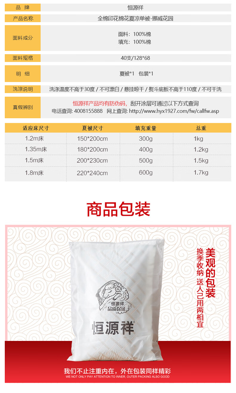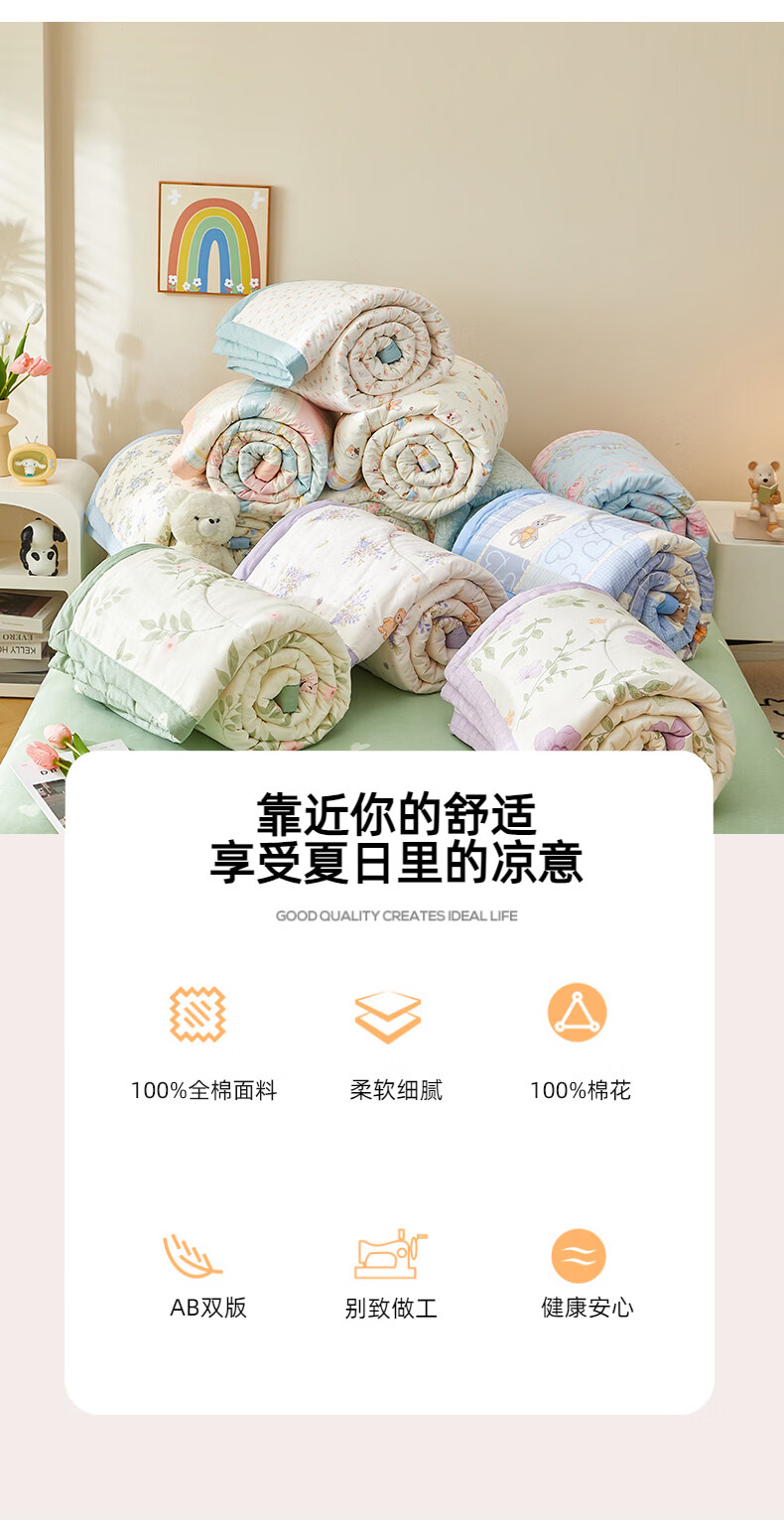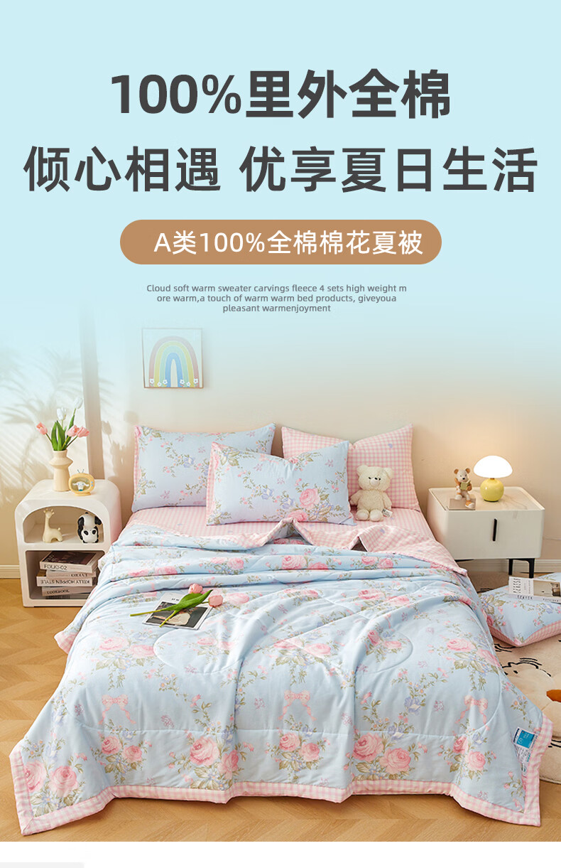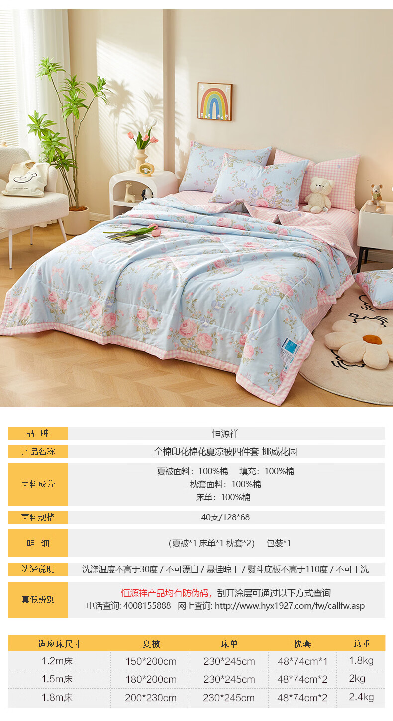 恒源祥 夏凉被 新款花卉全棉A类100%新疆棉空调被可机洗单人夏季薄被子 挪威花园【100%棉花】 150*200cm【夏被单件】