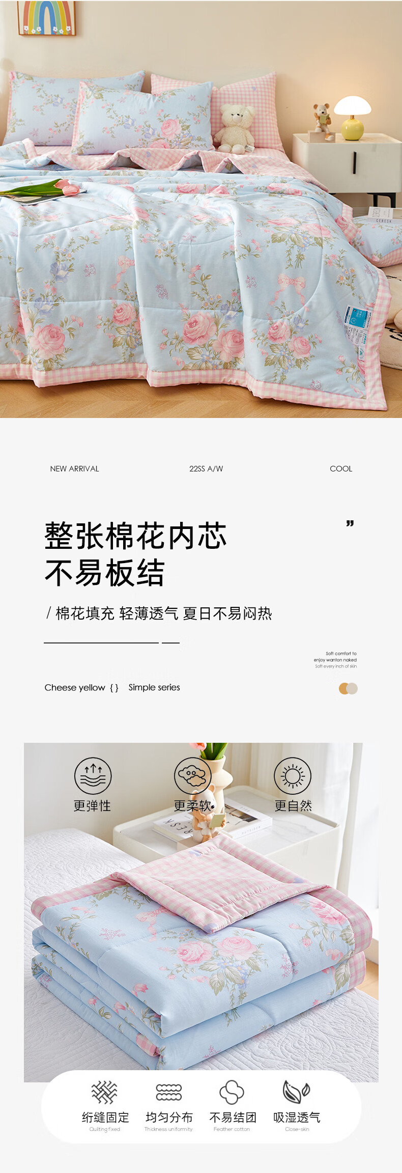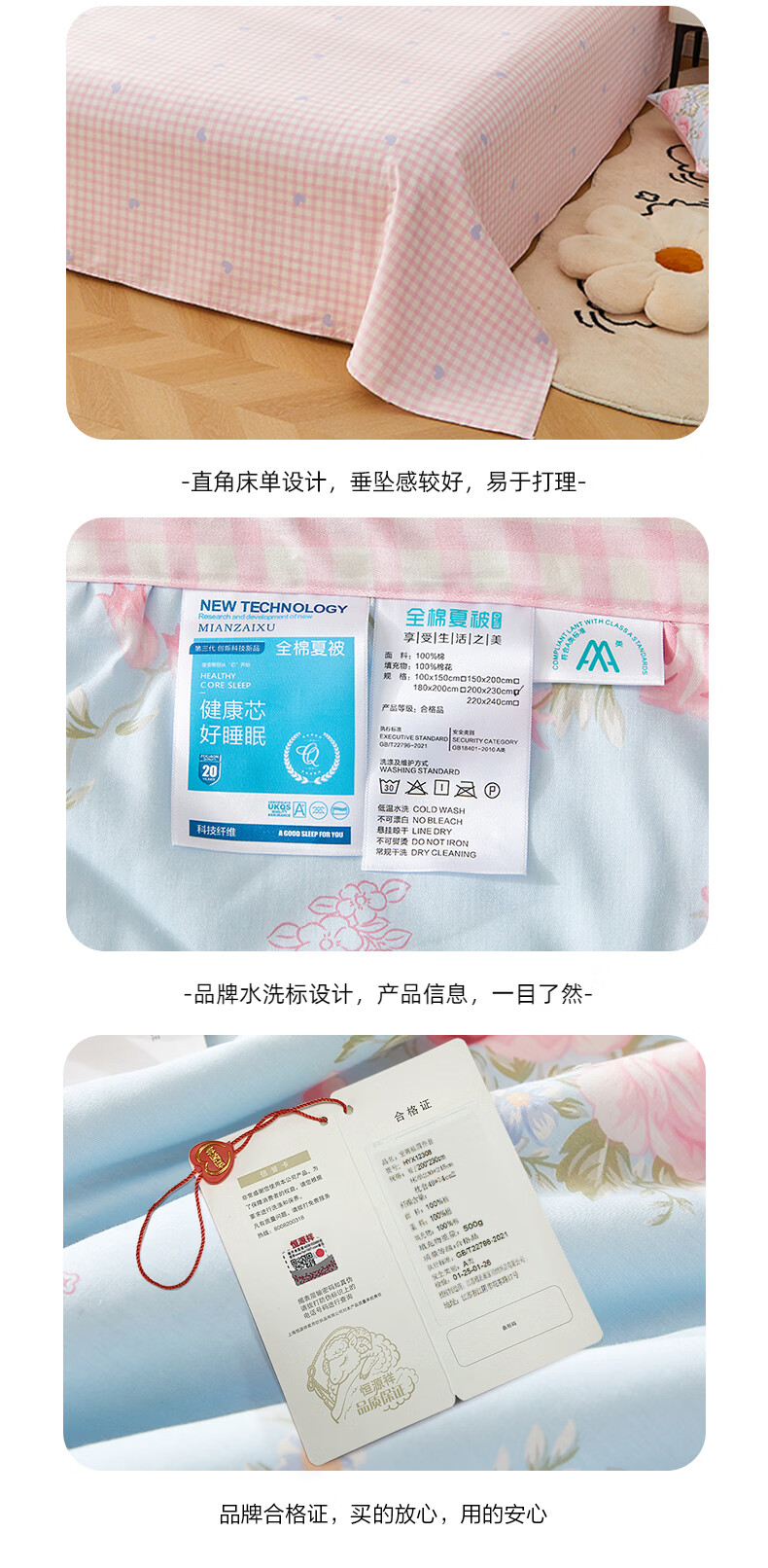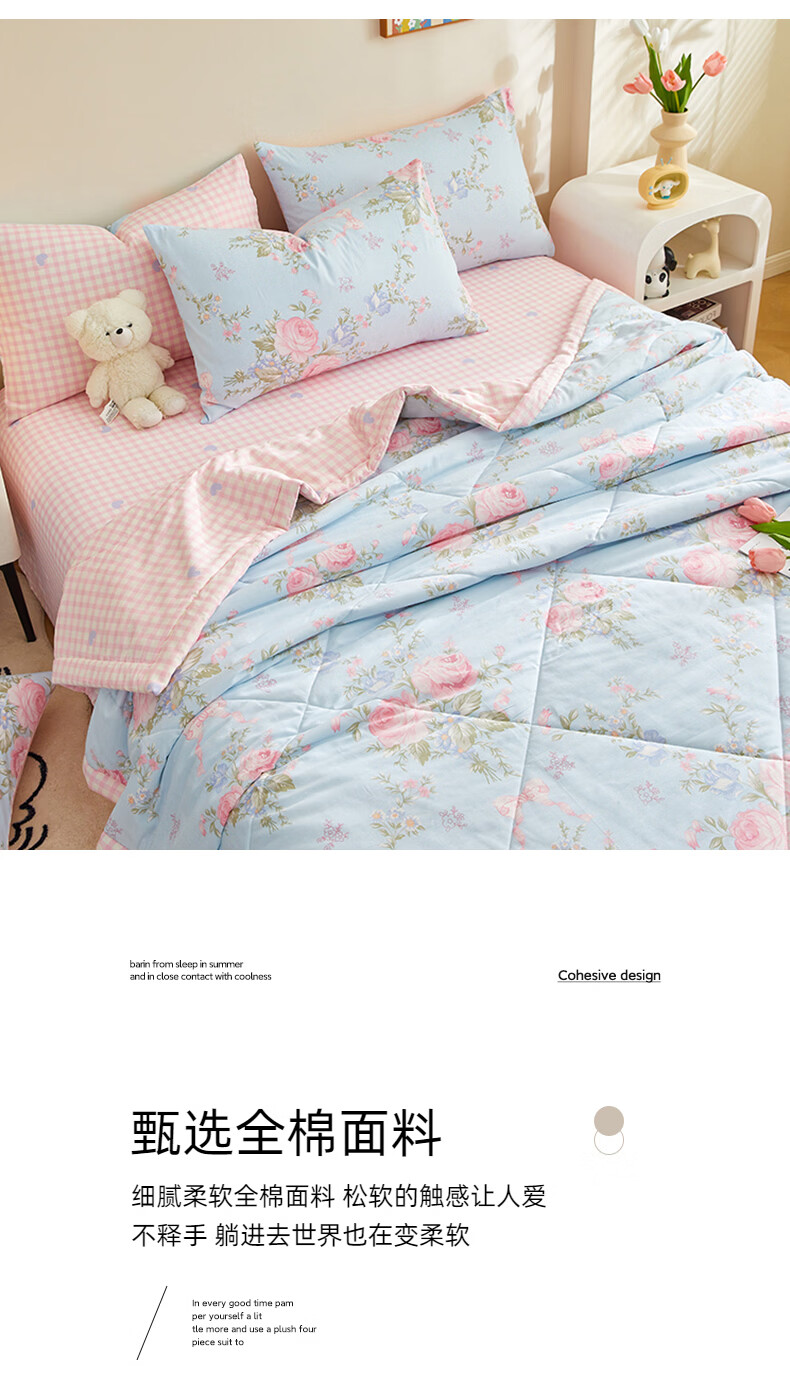 恒源祥 夏凉被 新款花卉全棉A类100%新疆棉空调被可机洗单人夏季薄被子 挪威花园【100%棉花】 150*200cm【夏被单件】