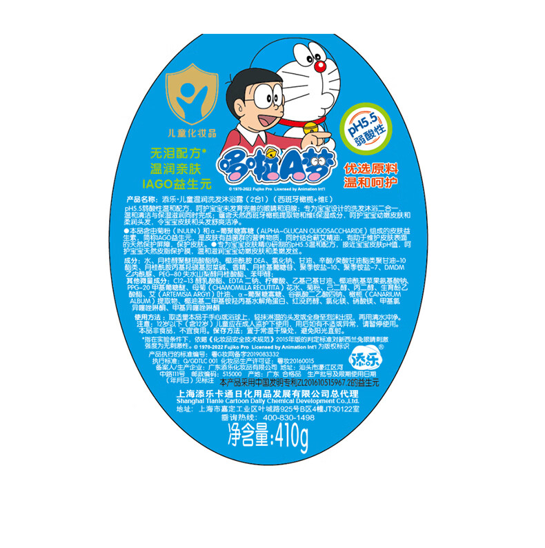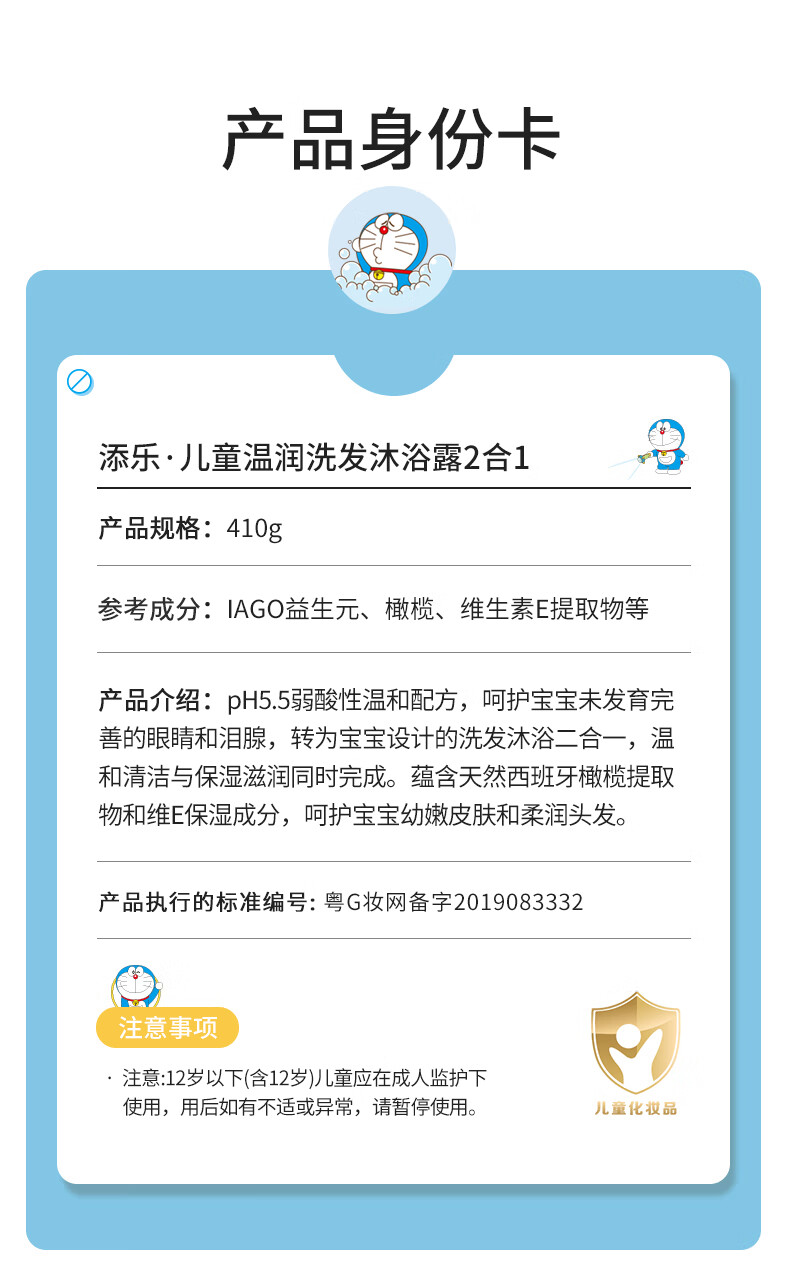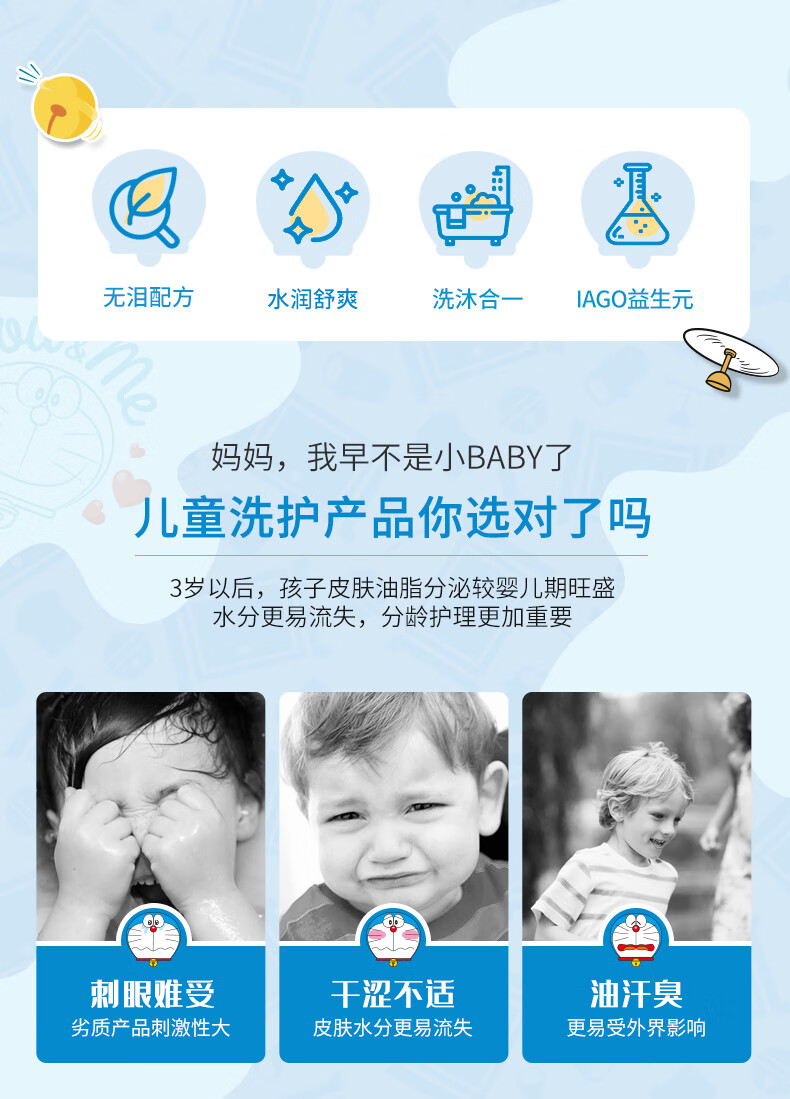 添乐哆啦A梦儿童洗发水沐浴露二合一 3-6-9-12岁洗发水 叮当猫沐浴露