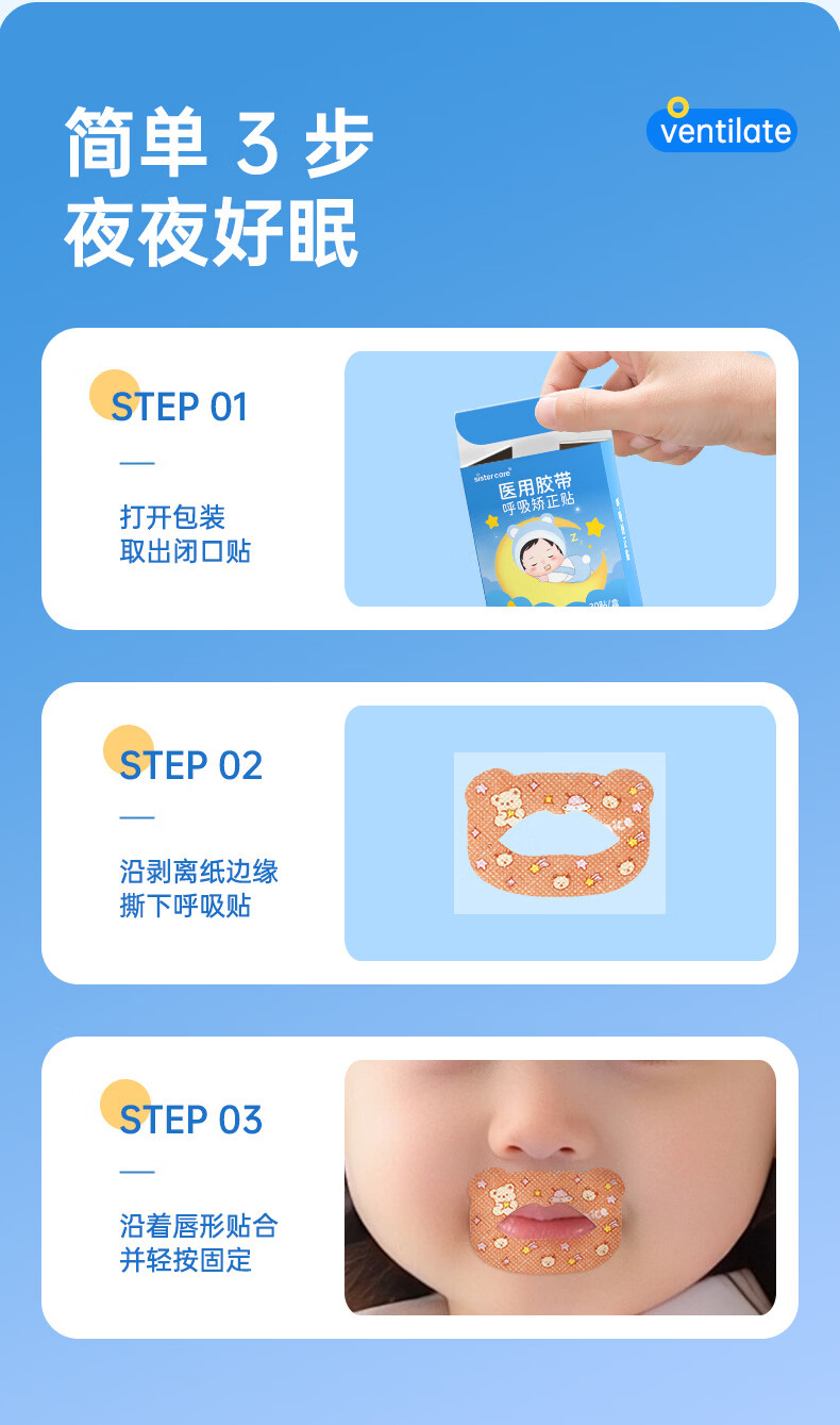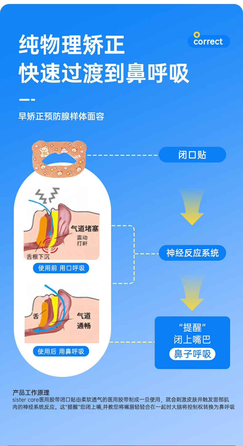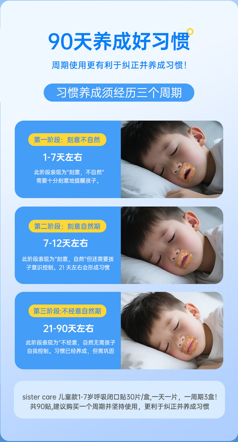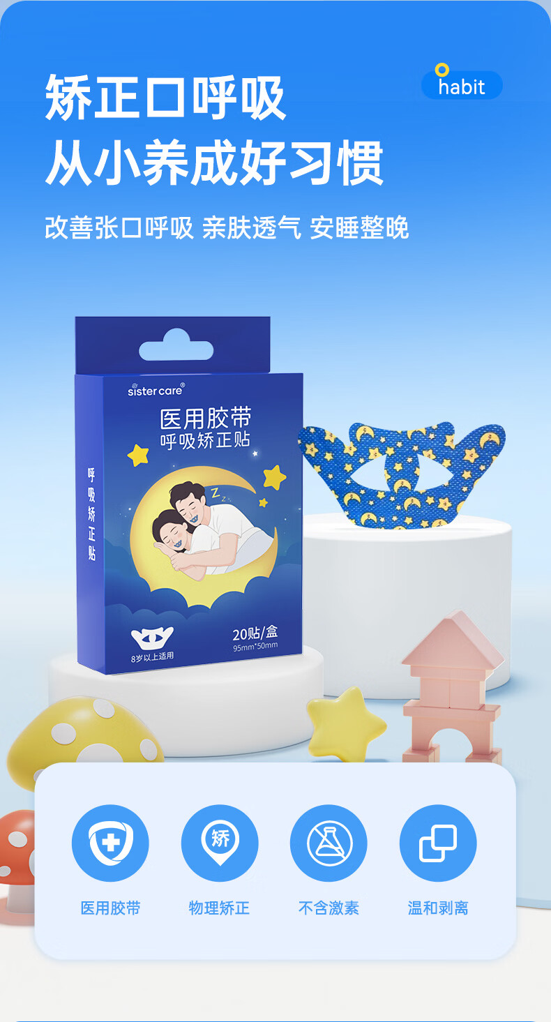 sister care成人口呼吸矫正贴闭口贴儿童青少年闭嘴贴张嘴巴打呼噜止鼾20贴