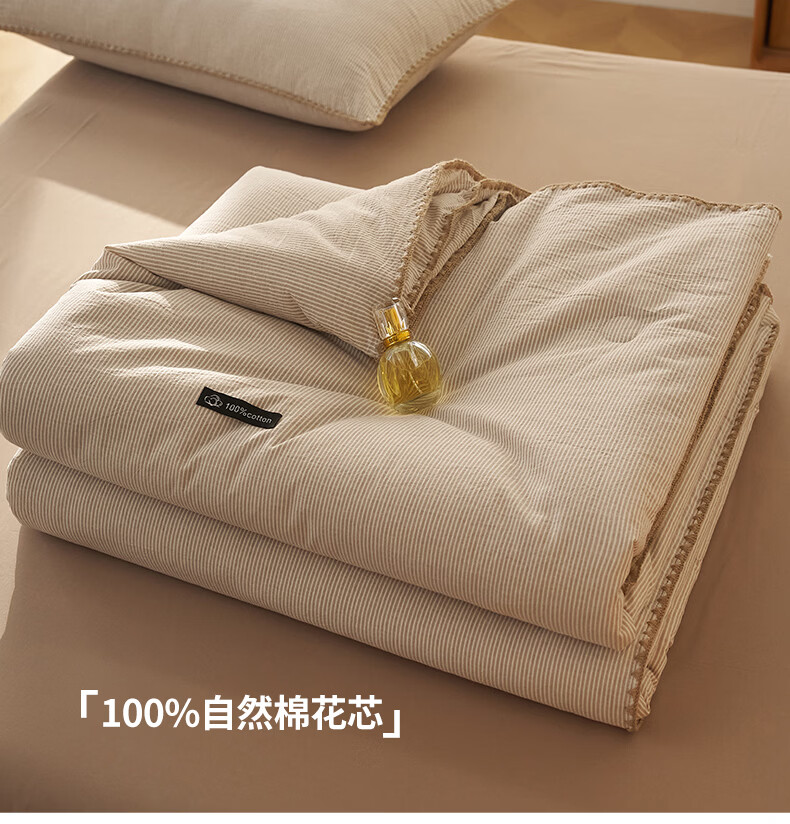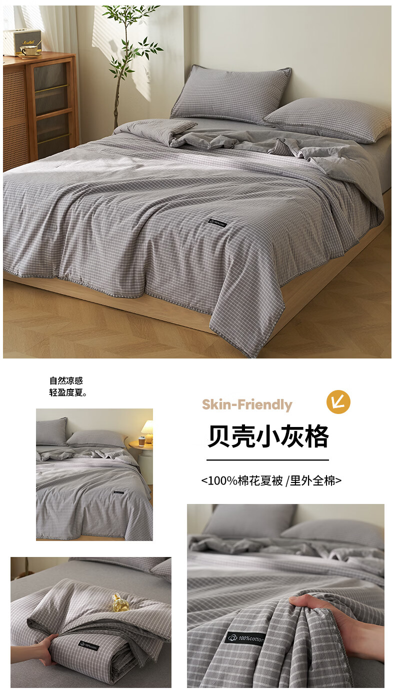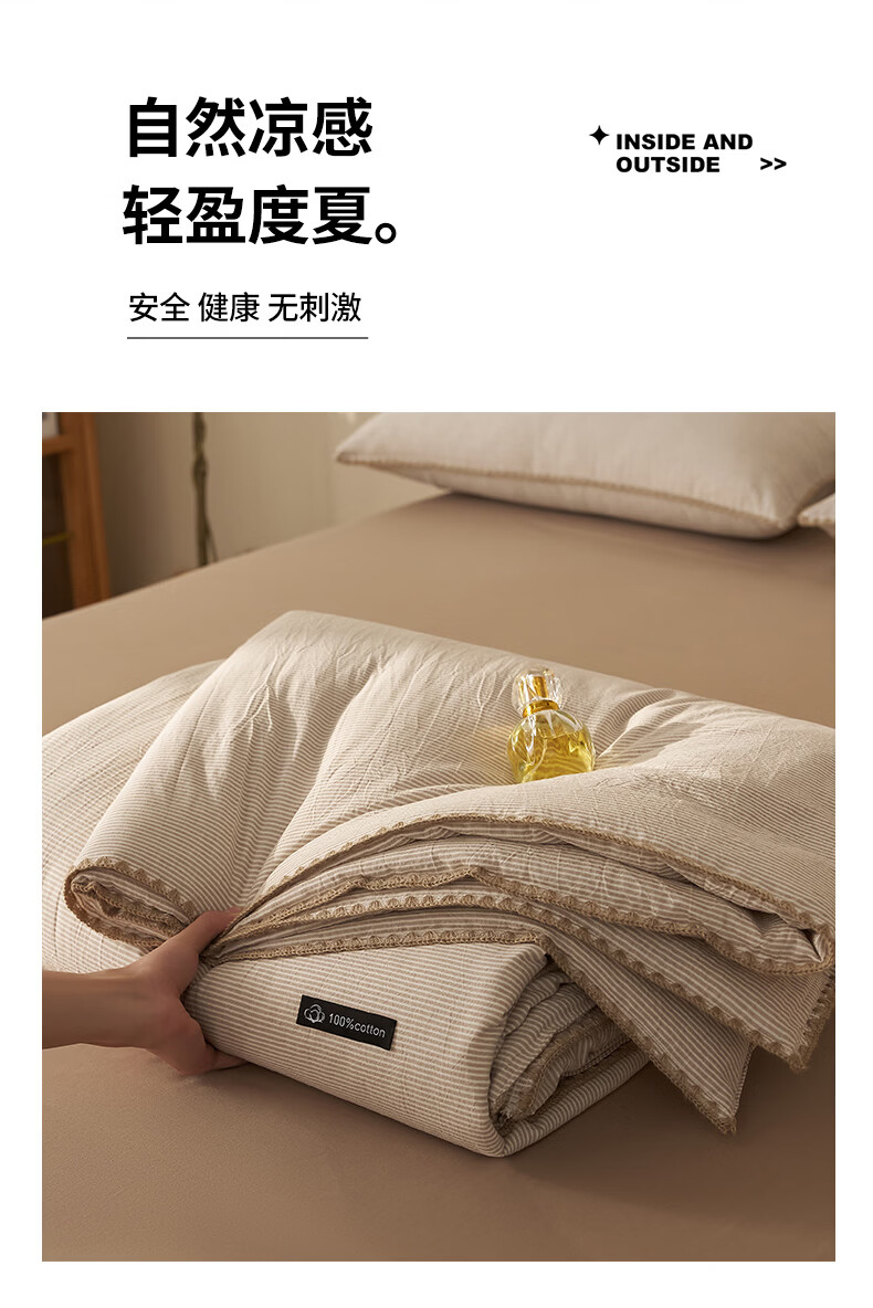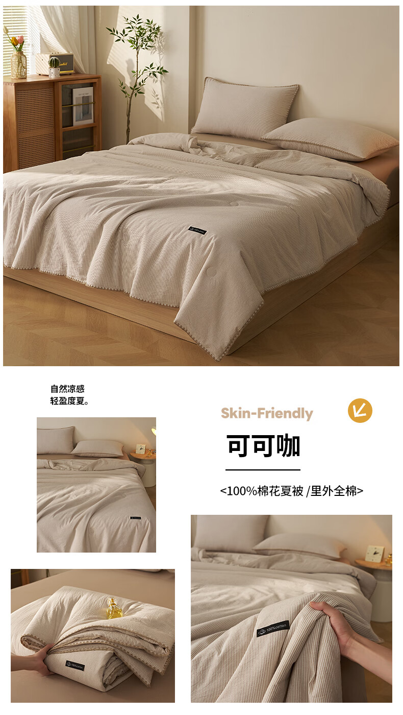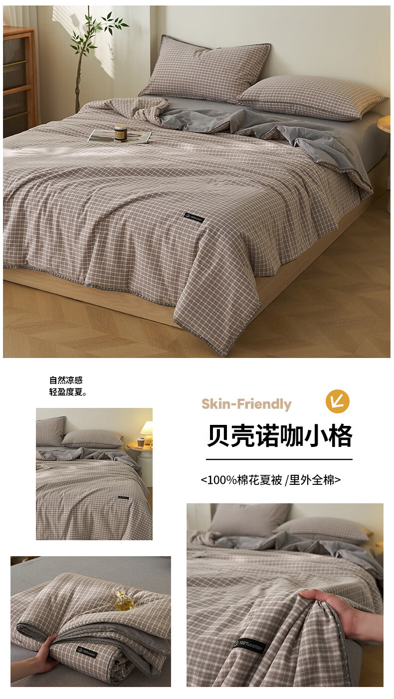 无印良品里外全棉夏凉被纯棉空调被夏天薄款被子夏季可机洗裸睡夏被四件套 贝壳可可咖【里外全棉 裸睡无忧】 150x200cm单夏被 夏被