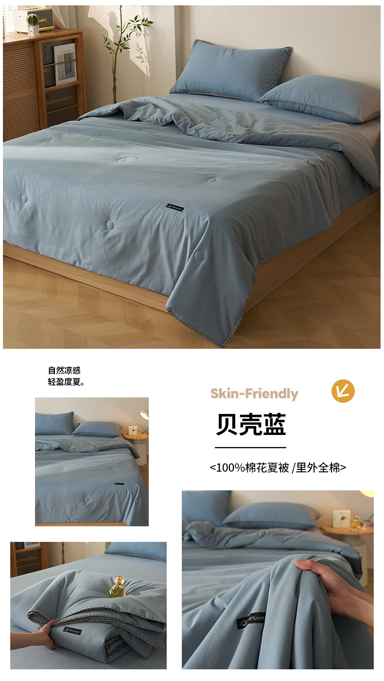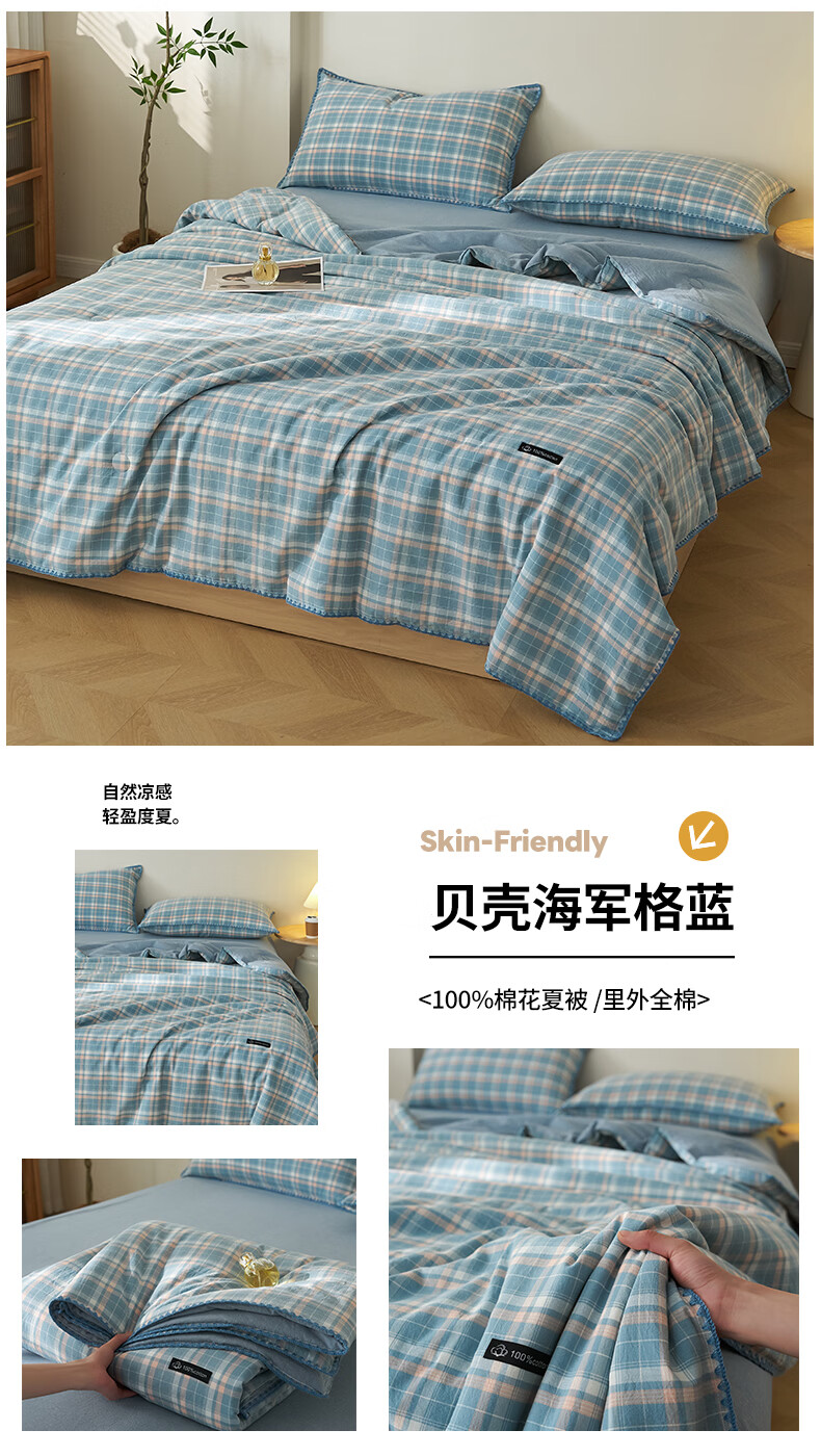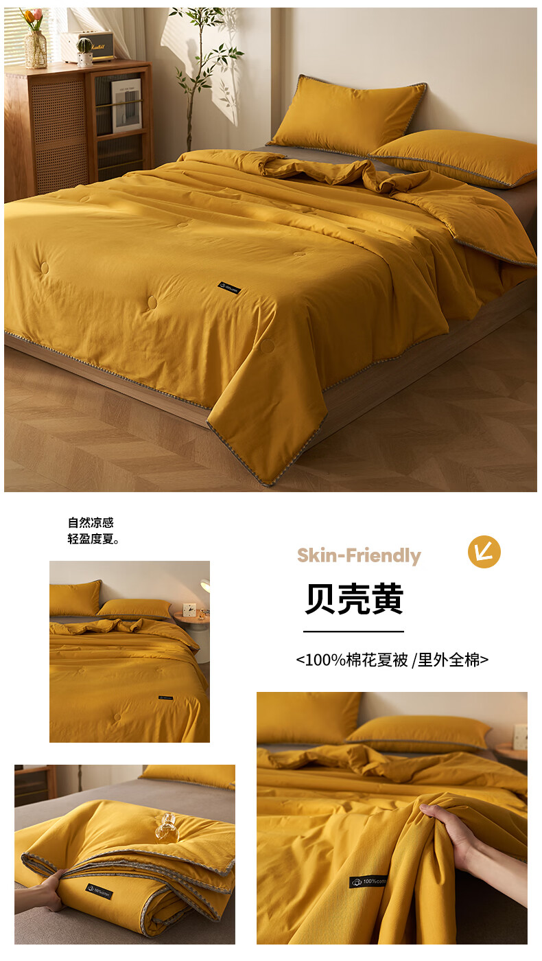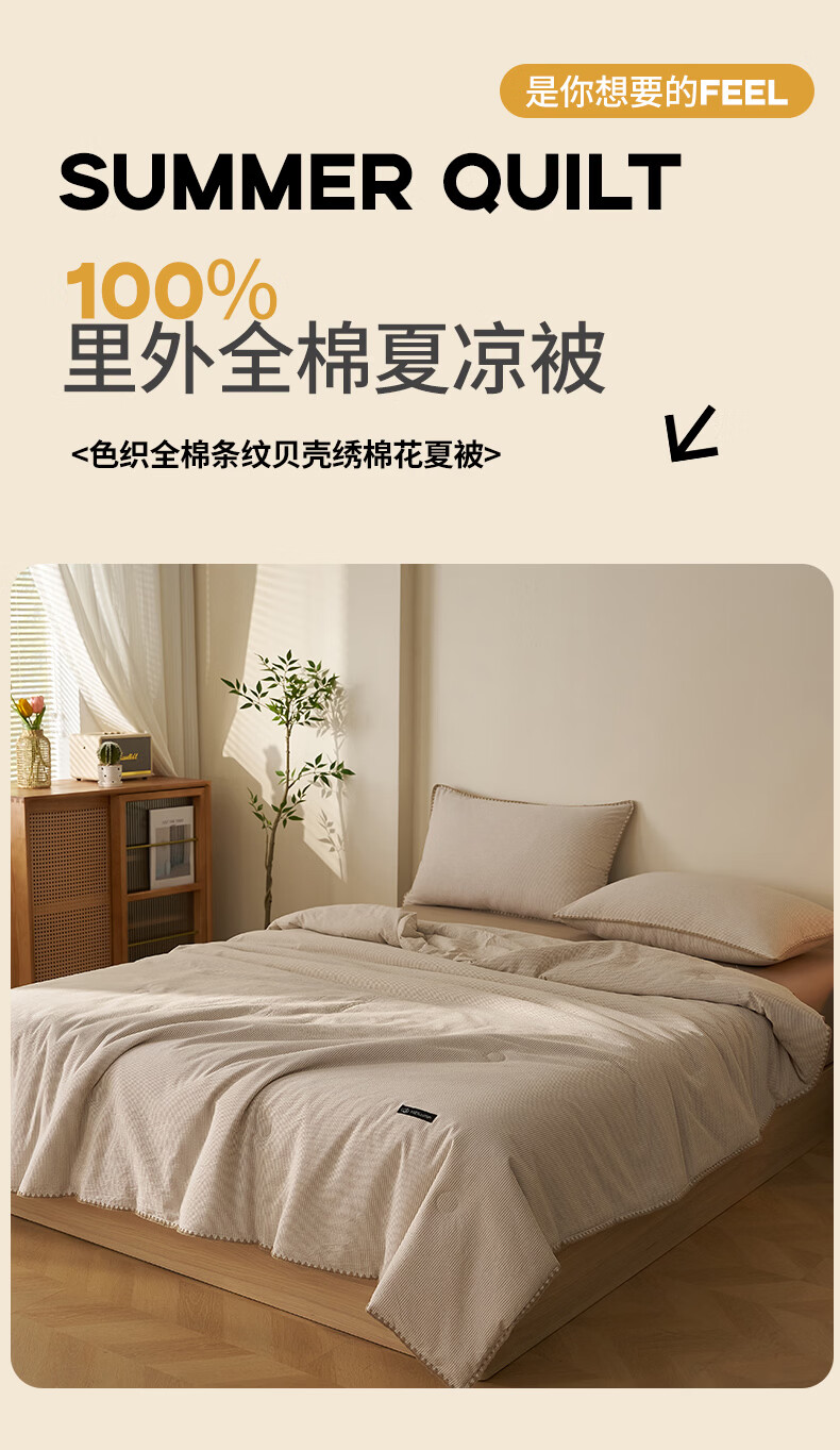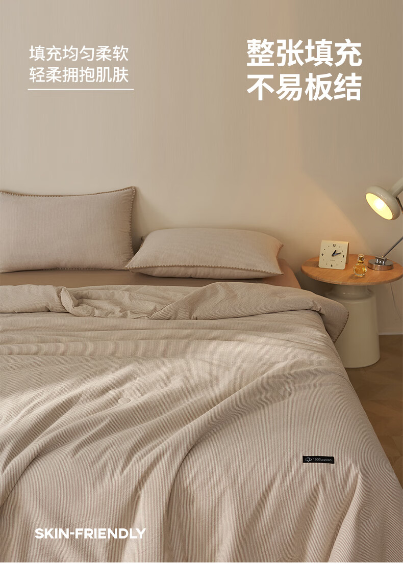 无印良品里外全棉夏凉被纯棉空调被夏天薄款被子夏季可机洗裸睡夏被四件套 贝壳可可咖【里外全棉 裸睡无忧】 150x200cm单夏被 夏被