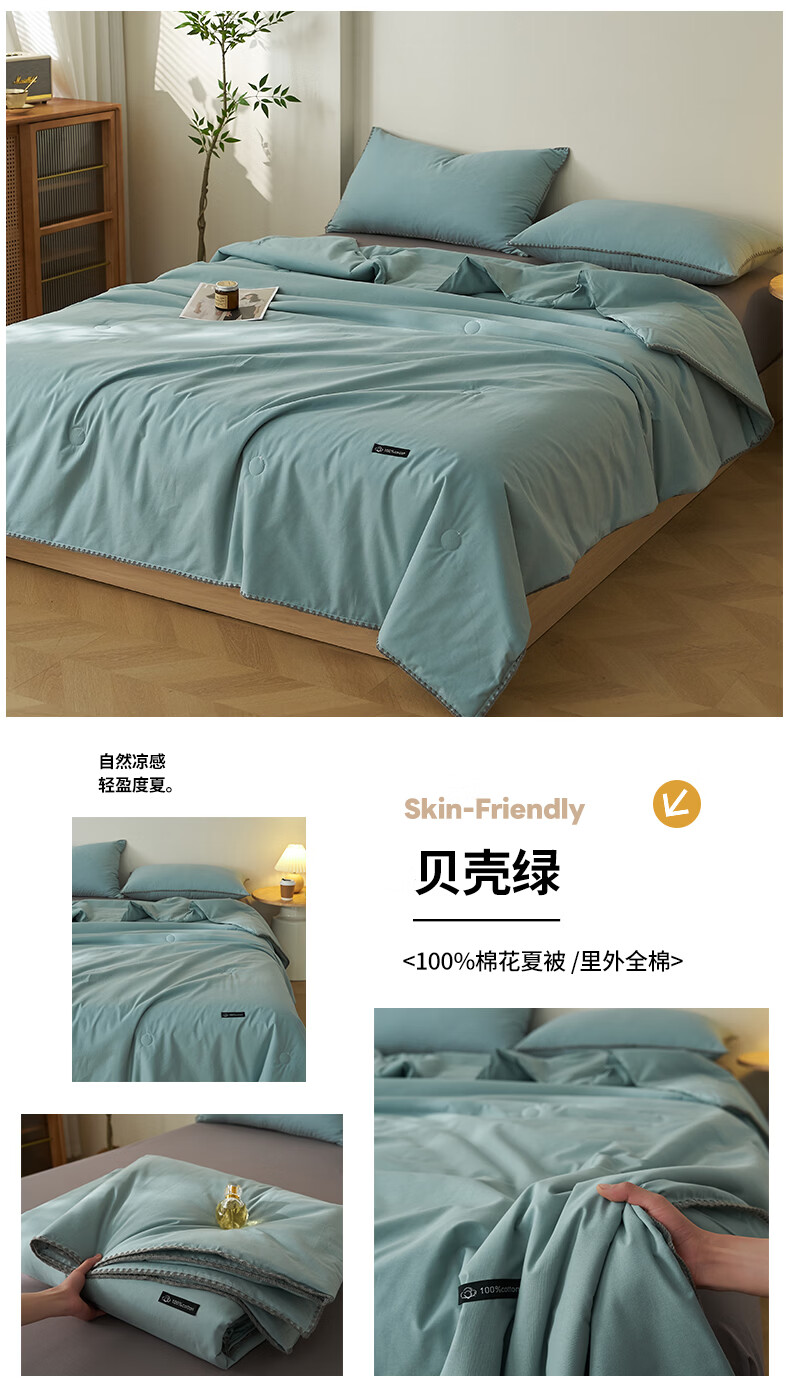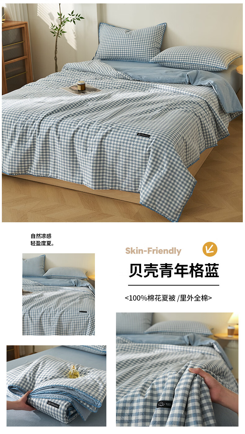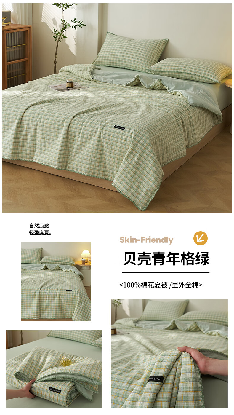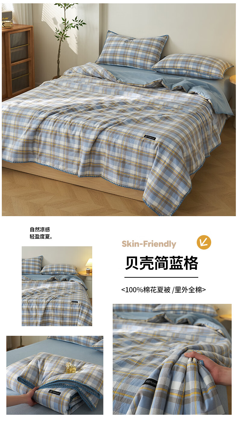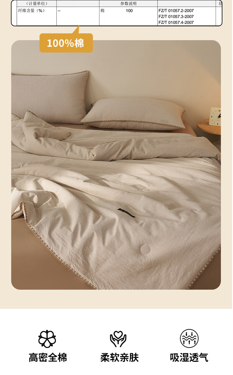 无印良品里外全棉夏凉被纯棉空调被夏天薄款被子夏季可机洗裸睡夏被四件套 贝壳可可咖【里外全棉 裸睡无忧】 150x200cm单夏被 夏被