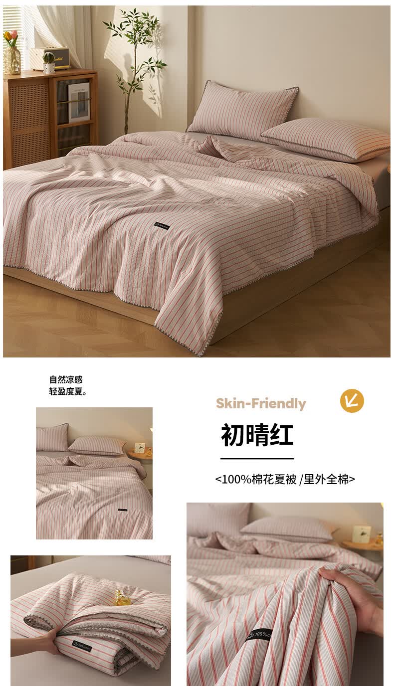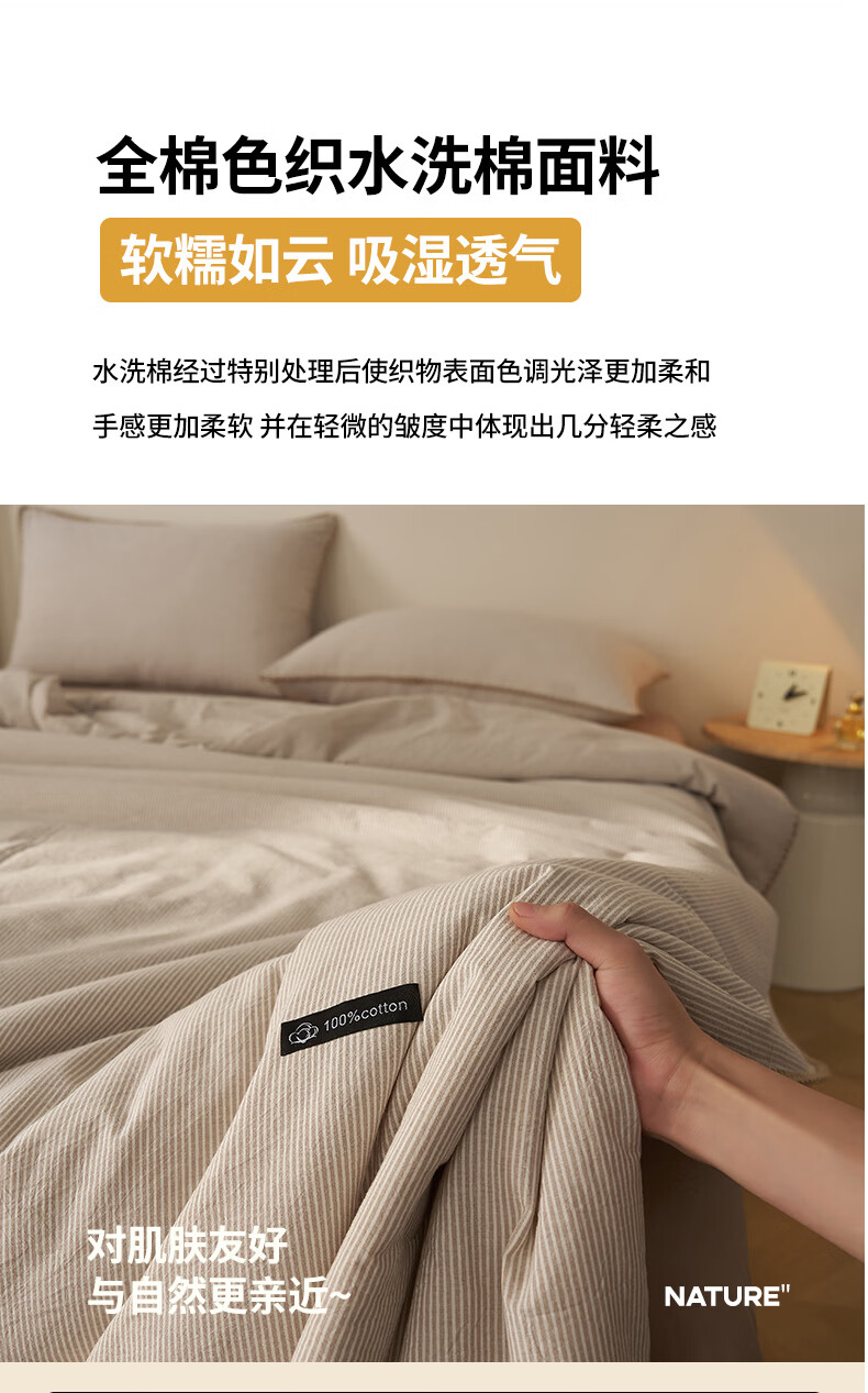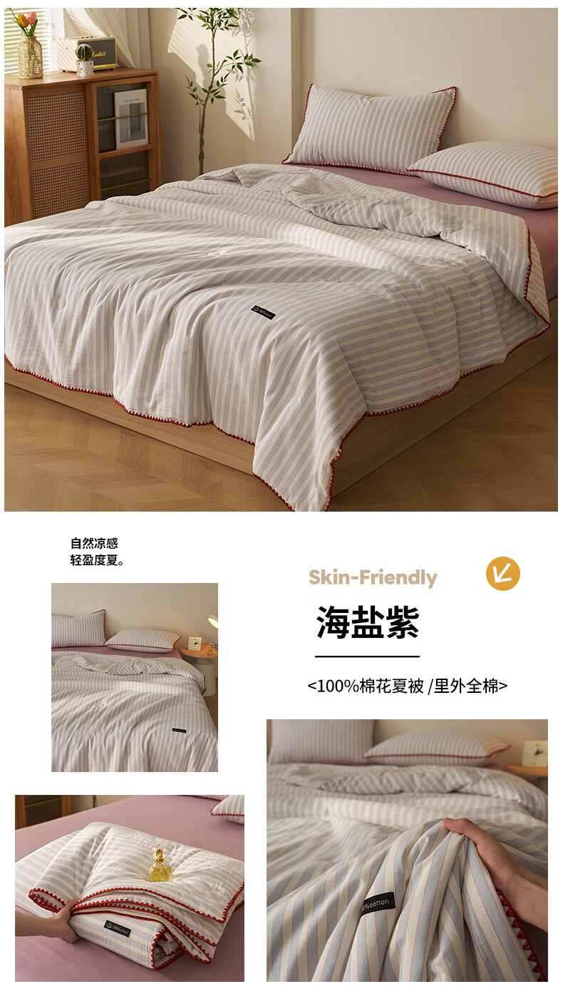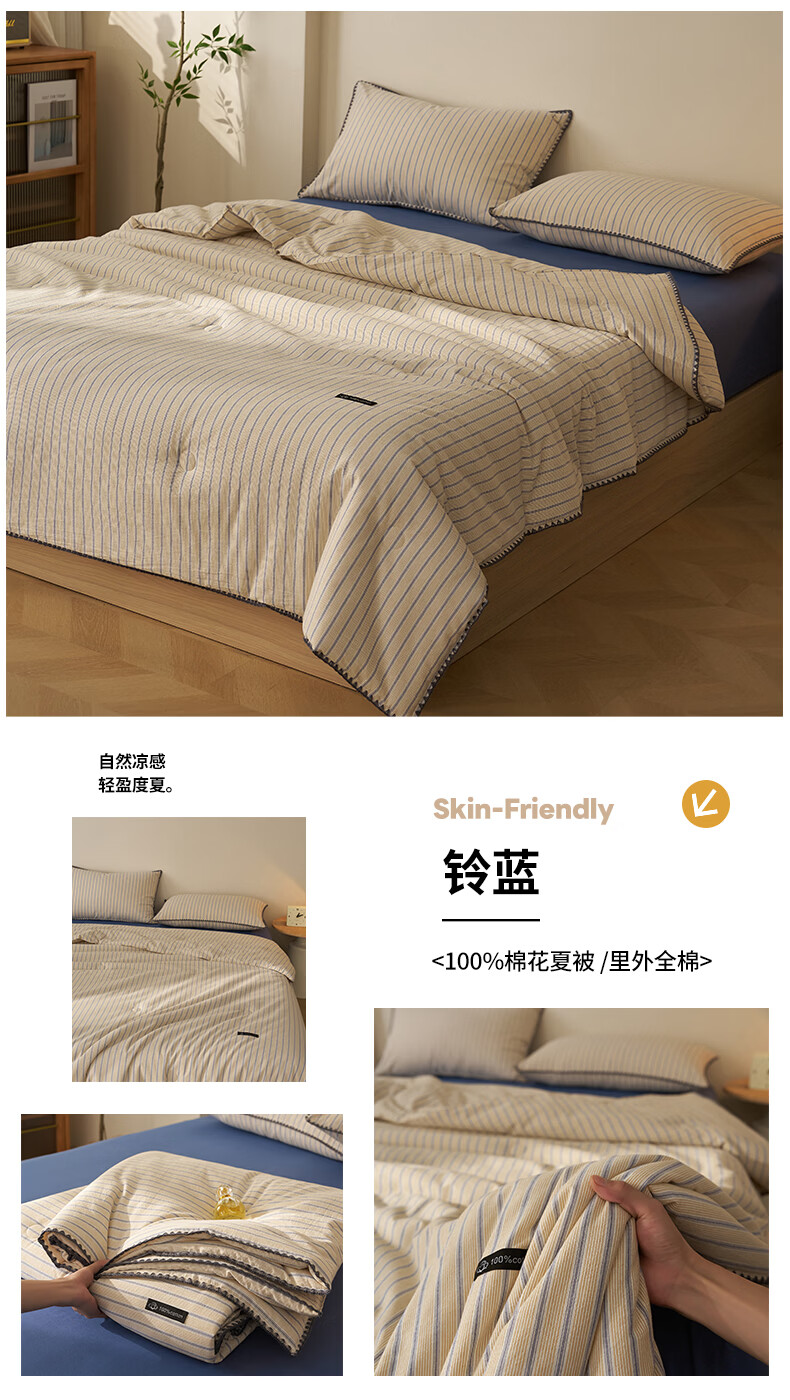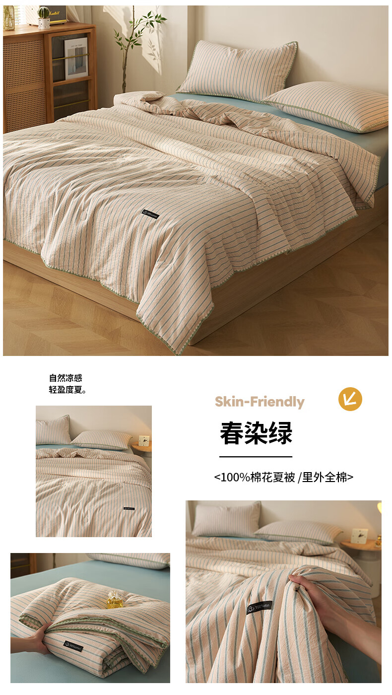 无印良品里外全棉夏凉被纯棉空调被夏天薄款被子夏季可机洗裸睡夏被四件套 贝壳可可咖【里外全棉 裸睡无忧】 150x200cm单夏被 夏被