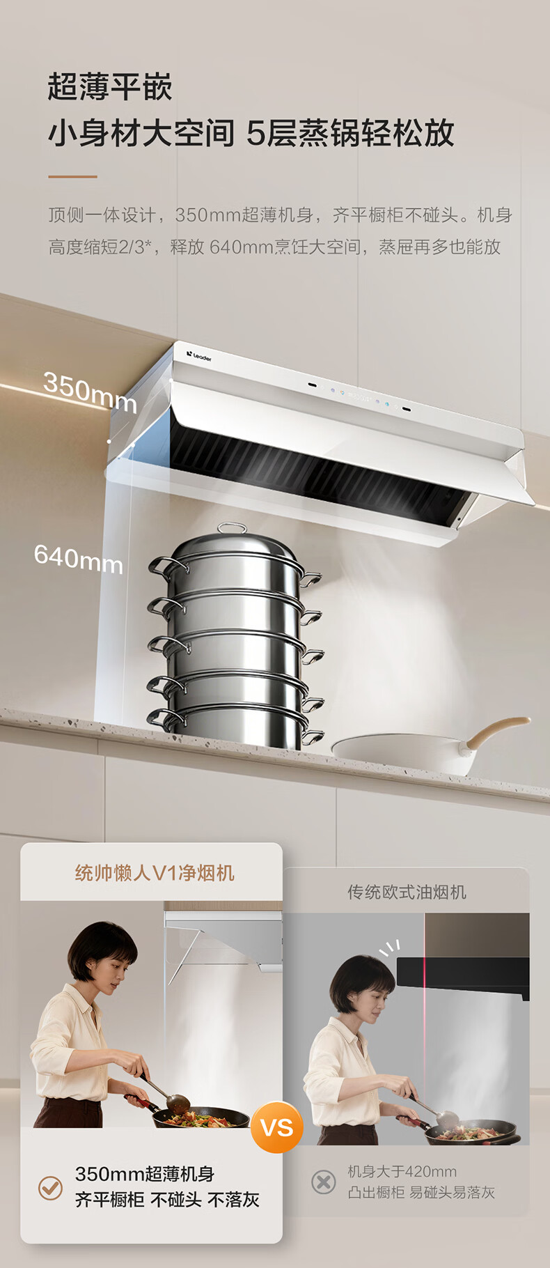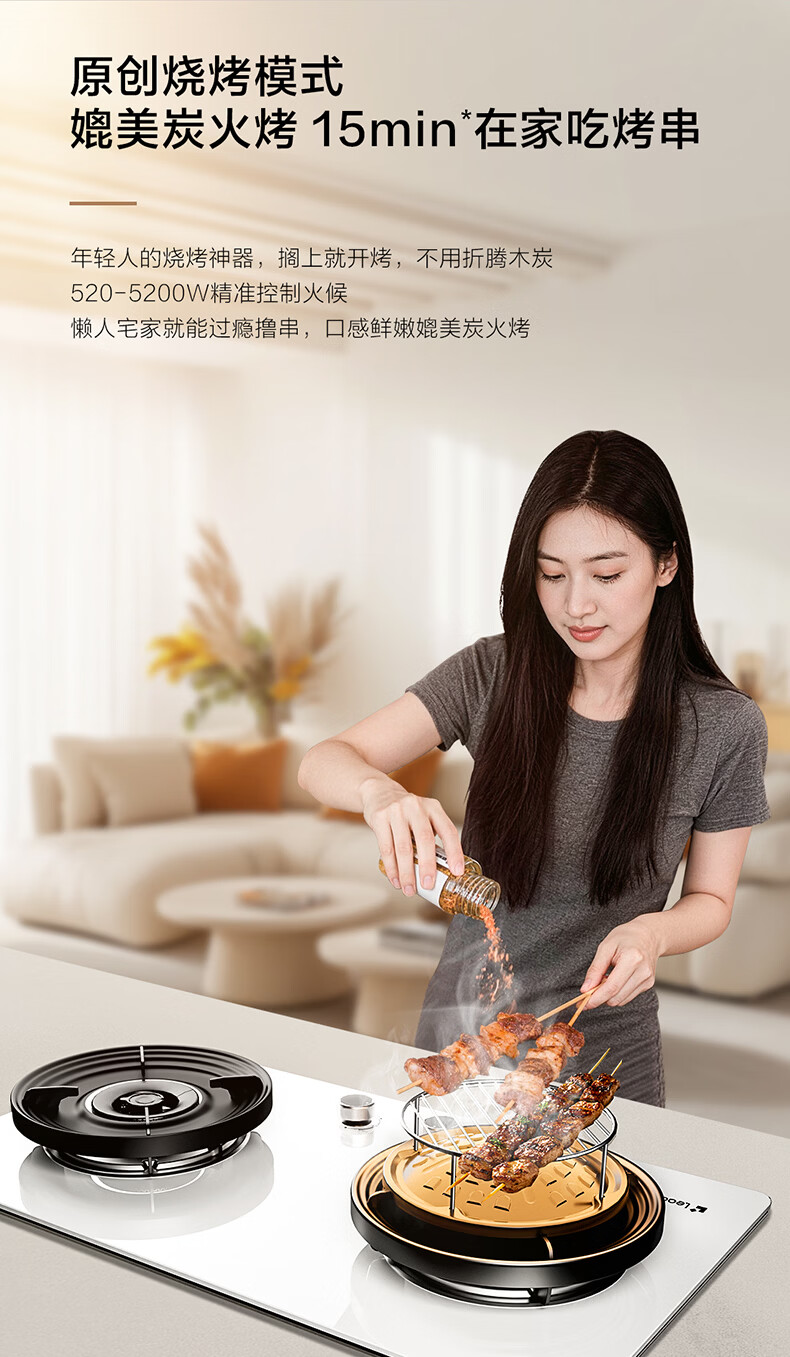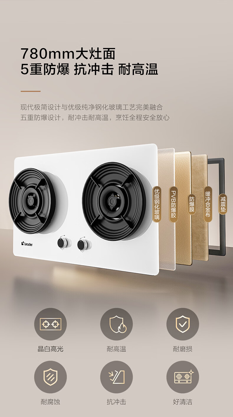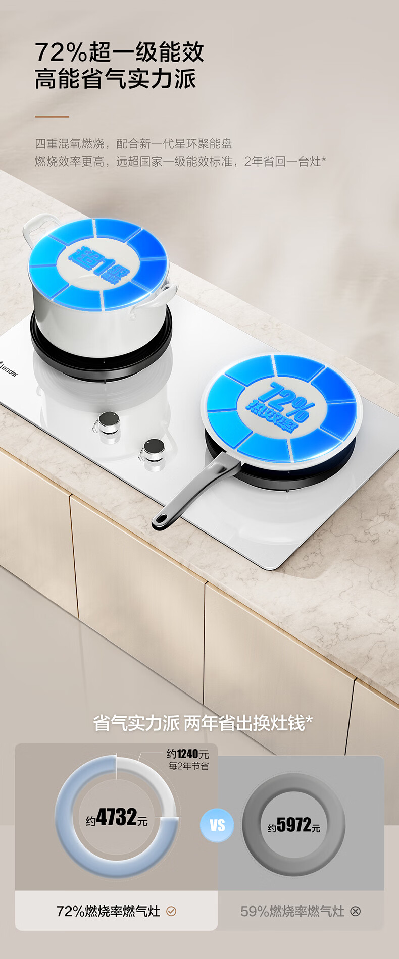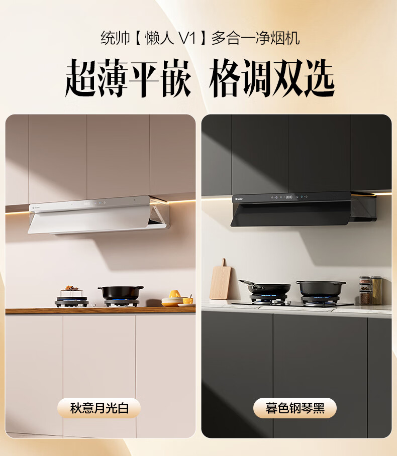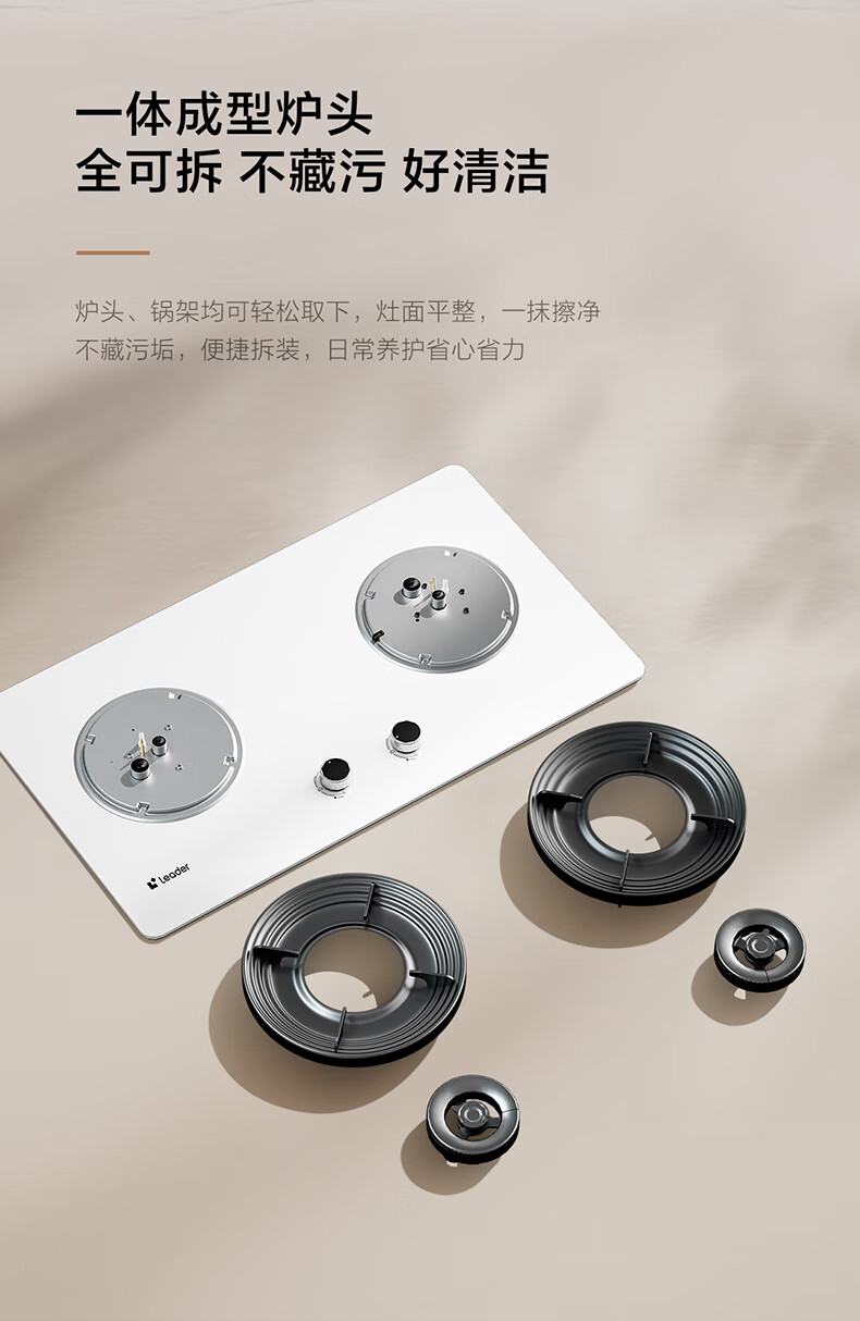 统帅(Leader)抽吸排油烟机懒人V1系列海尔 家用30风量以旧换新 白色顶侧一体烟灶套装联动 72%热效台嵌烧烤灶