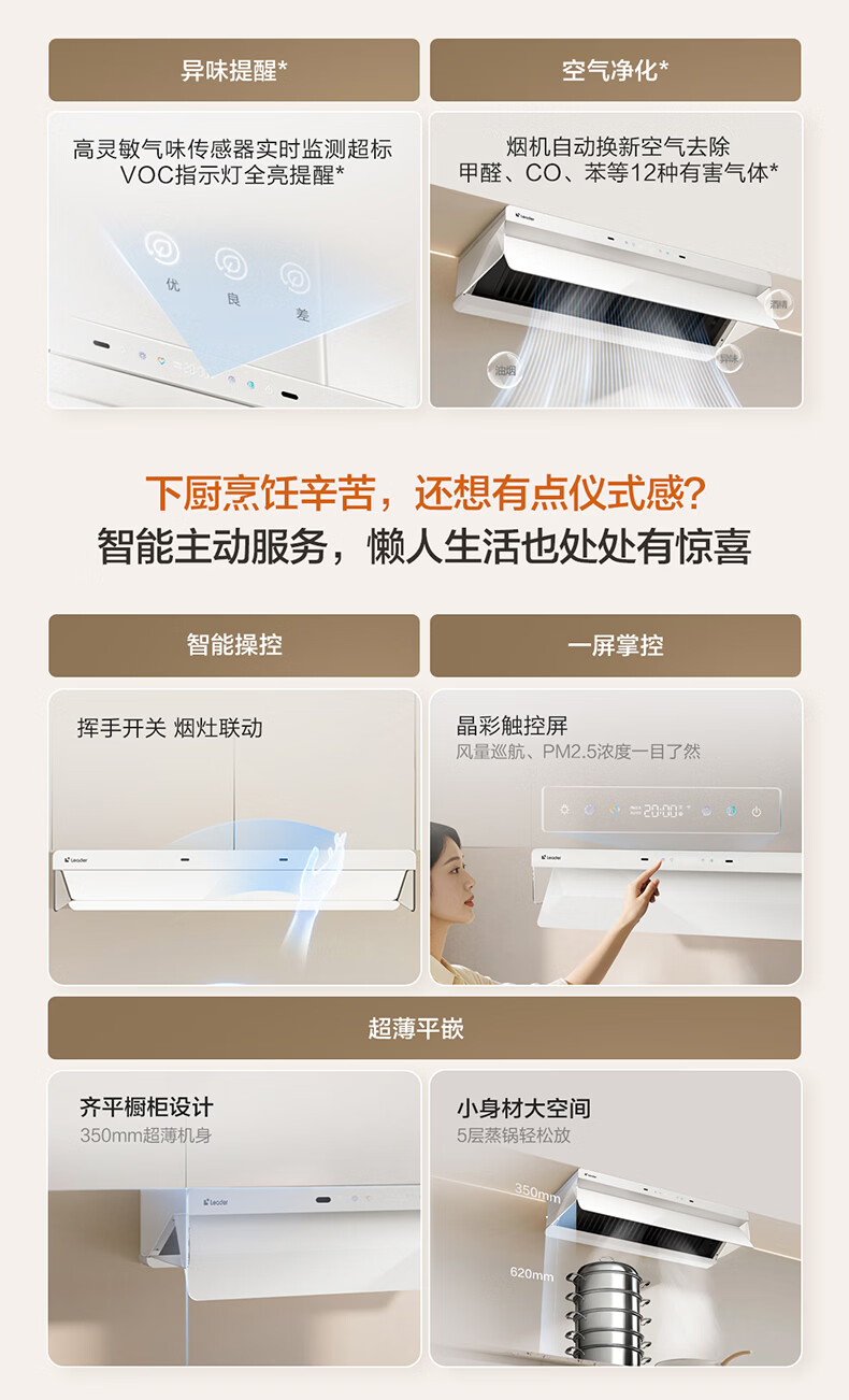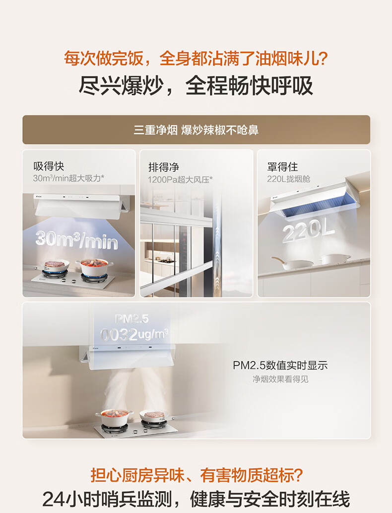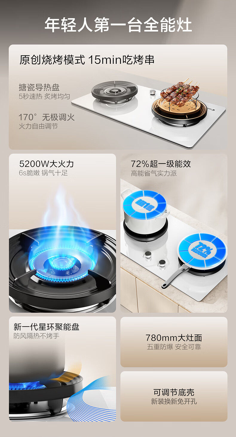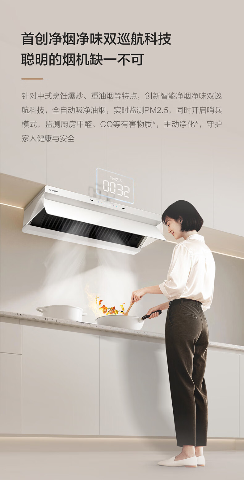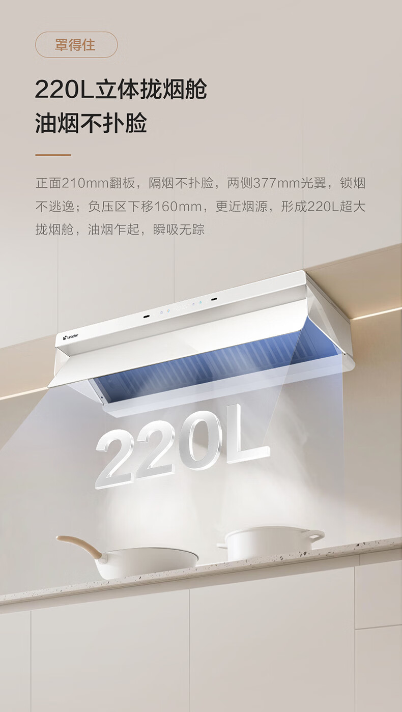统帅(Leader)抽吸排油烟机懒人V1系列海尔 家用30风量以旧换新 白色顶侧一体烟灶套装联动 72%热效台嵌烧烤灶